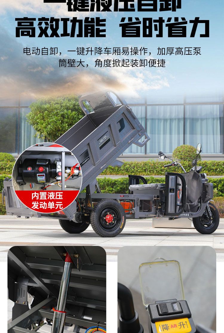 Феникс саморазгружающийся электрический трицикл с гидравлической подъемной системой для перевозки грузов в горных районах, трехколесный саморазгружающийся электрический самосвал.