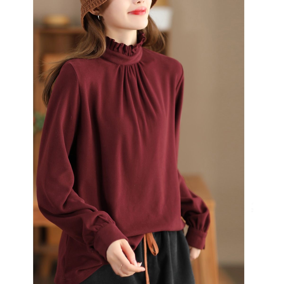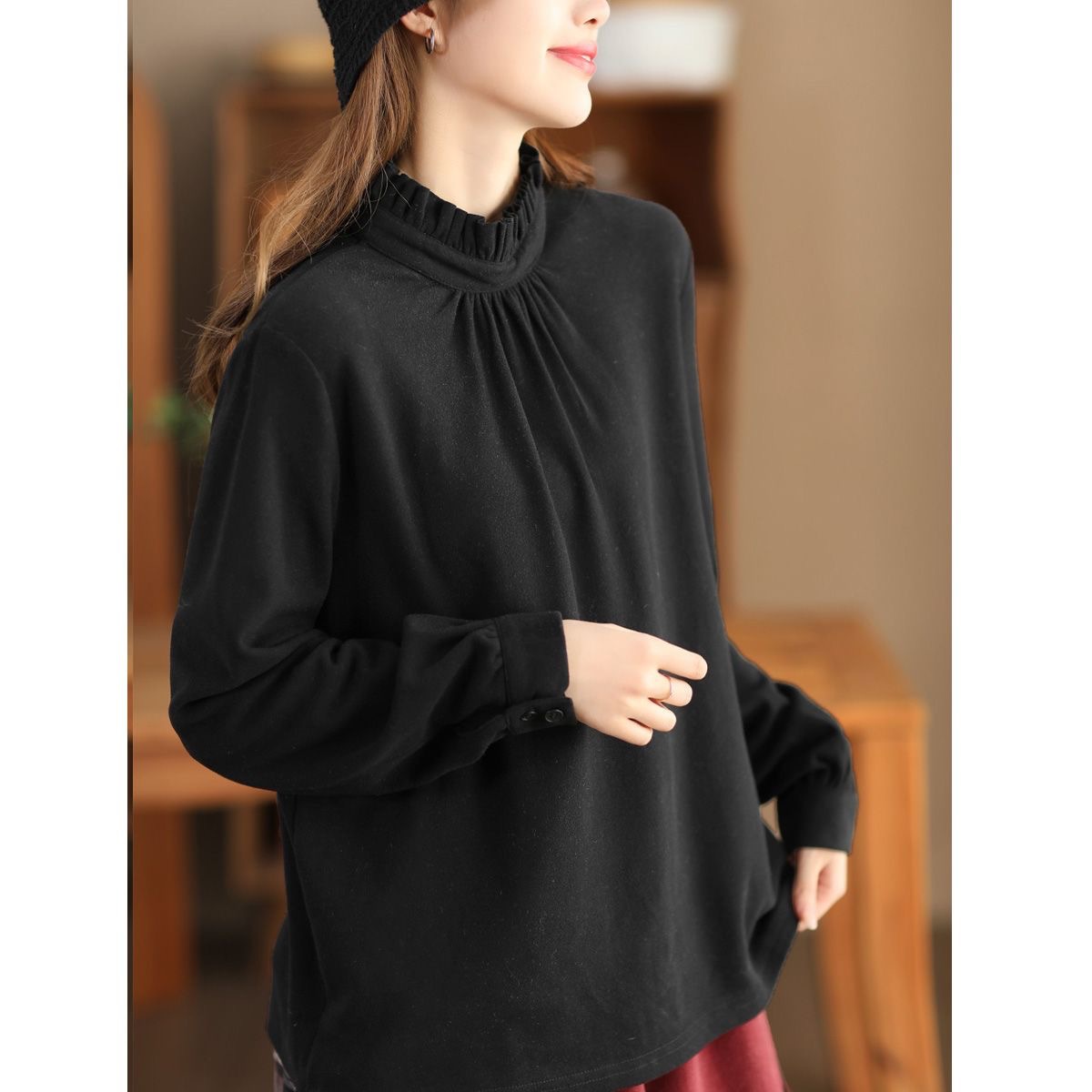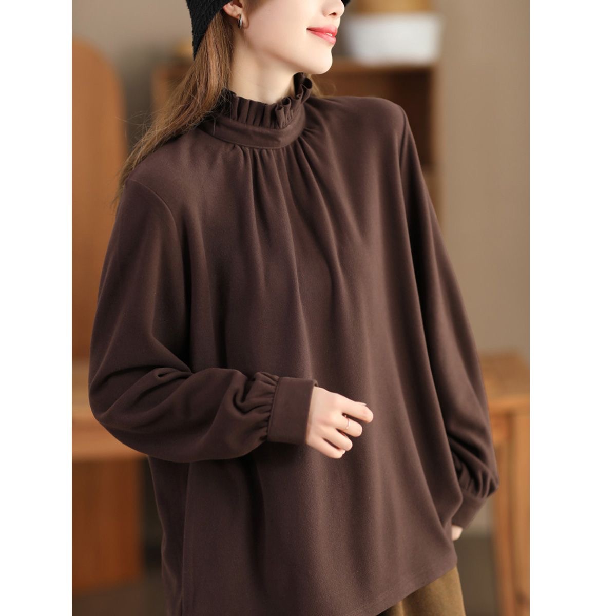 Зимний новый двухсторонний кашемировый пуловер деревянный ушной воротник топ модный темперамент дикий теплая рубашка с длинными рукавами