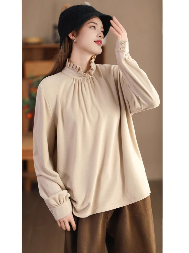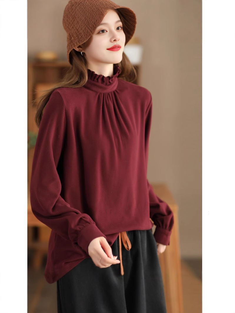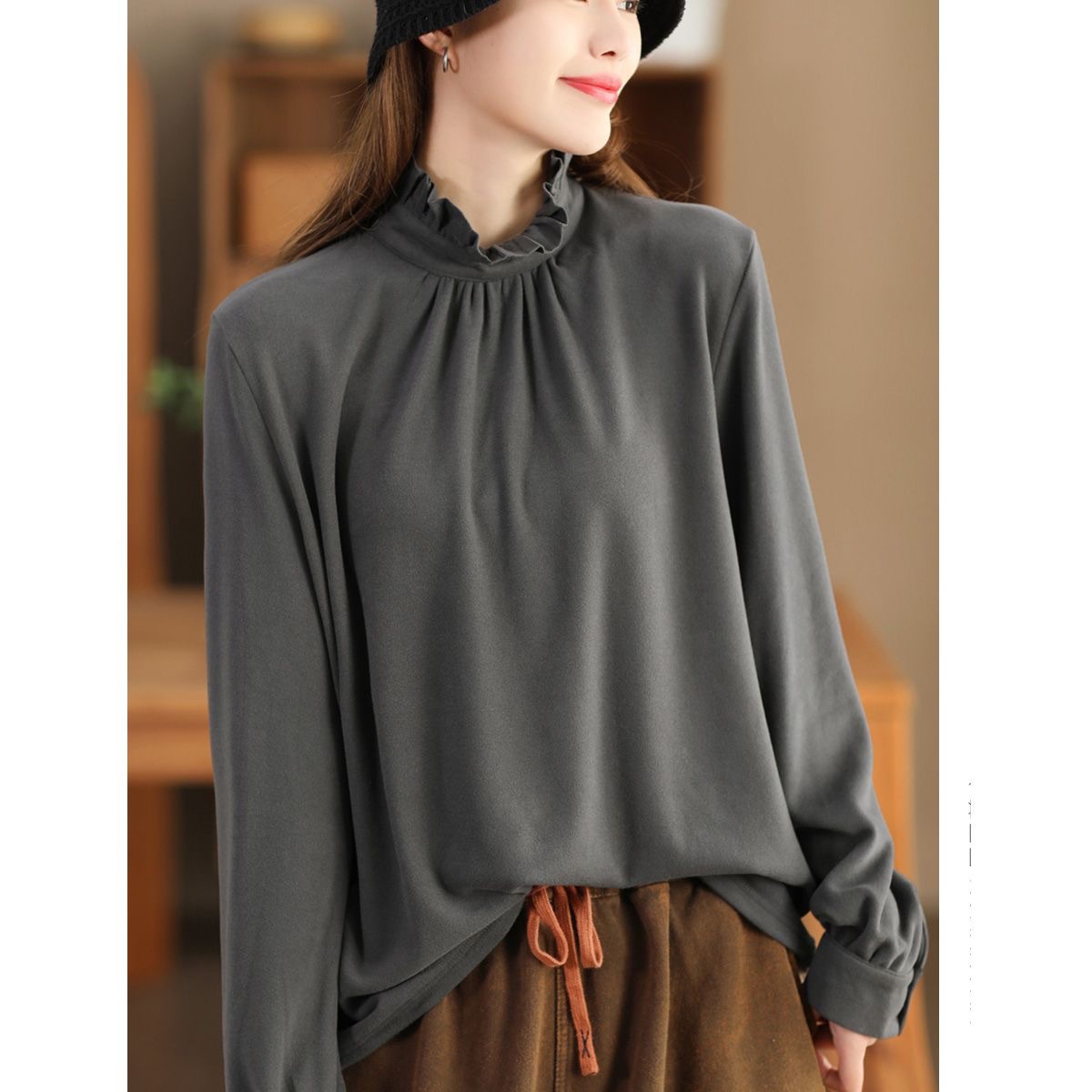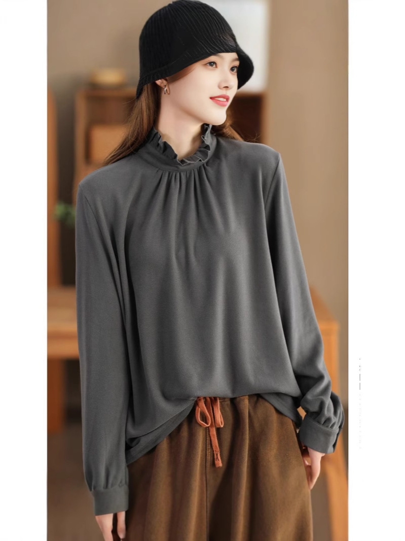 Зимний новый двухсторонний кашемировый пуловер деревянный ушной воротник топ модный темперамент дикий теплая рубашка с длинными рукавами