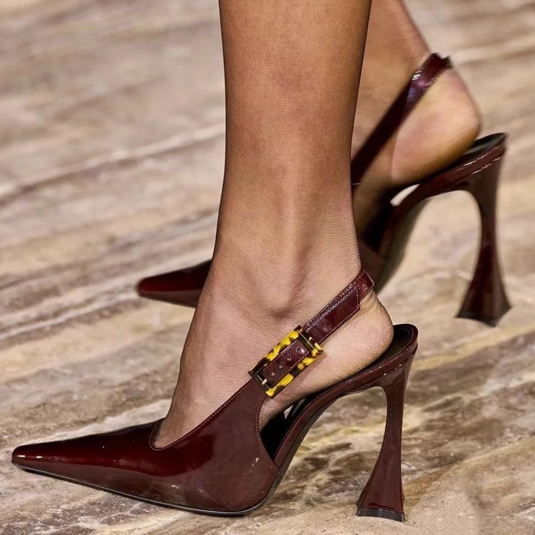 Иностранные туфли на высоком каблуке с пряжкой 2024 Французский темперамент на каблуках увеличен