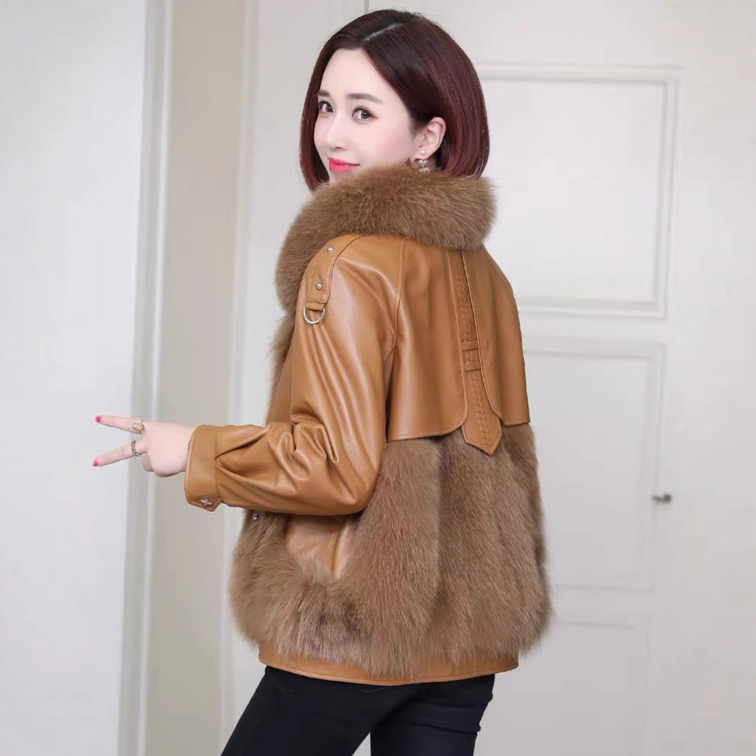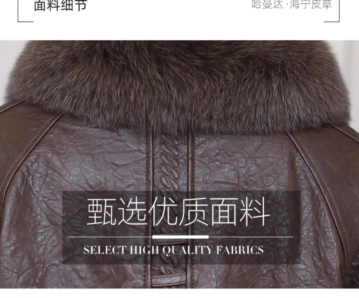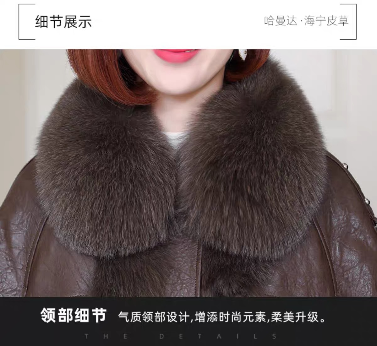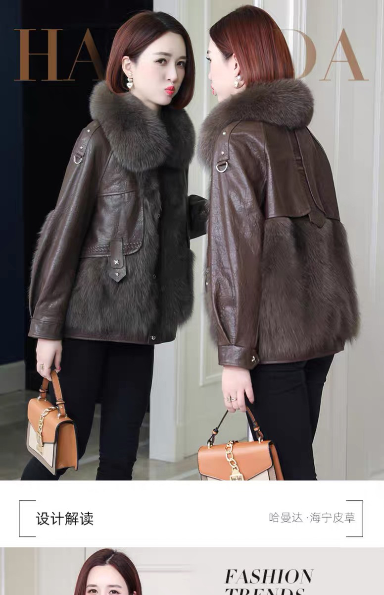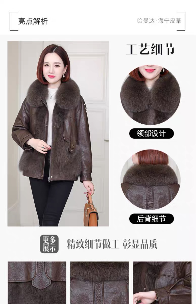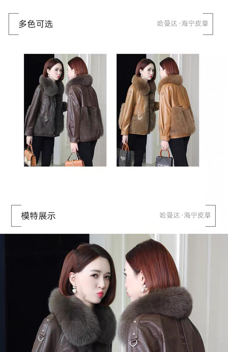 2024 зима Haining мех лисы шерстяной воротник кожаный модный тонкий и толстый теплый женский пальто новый