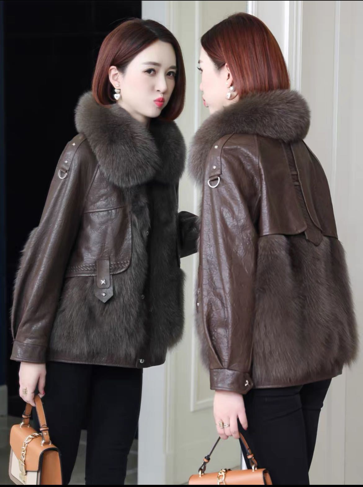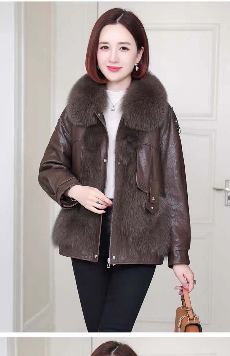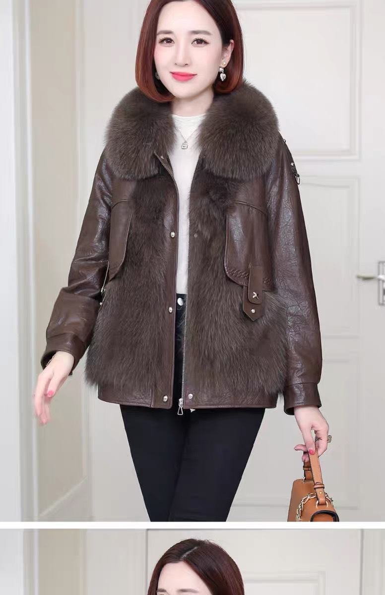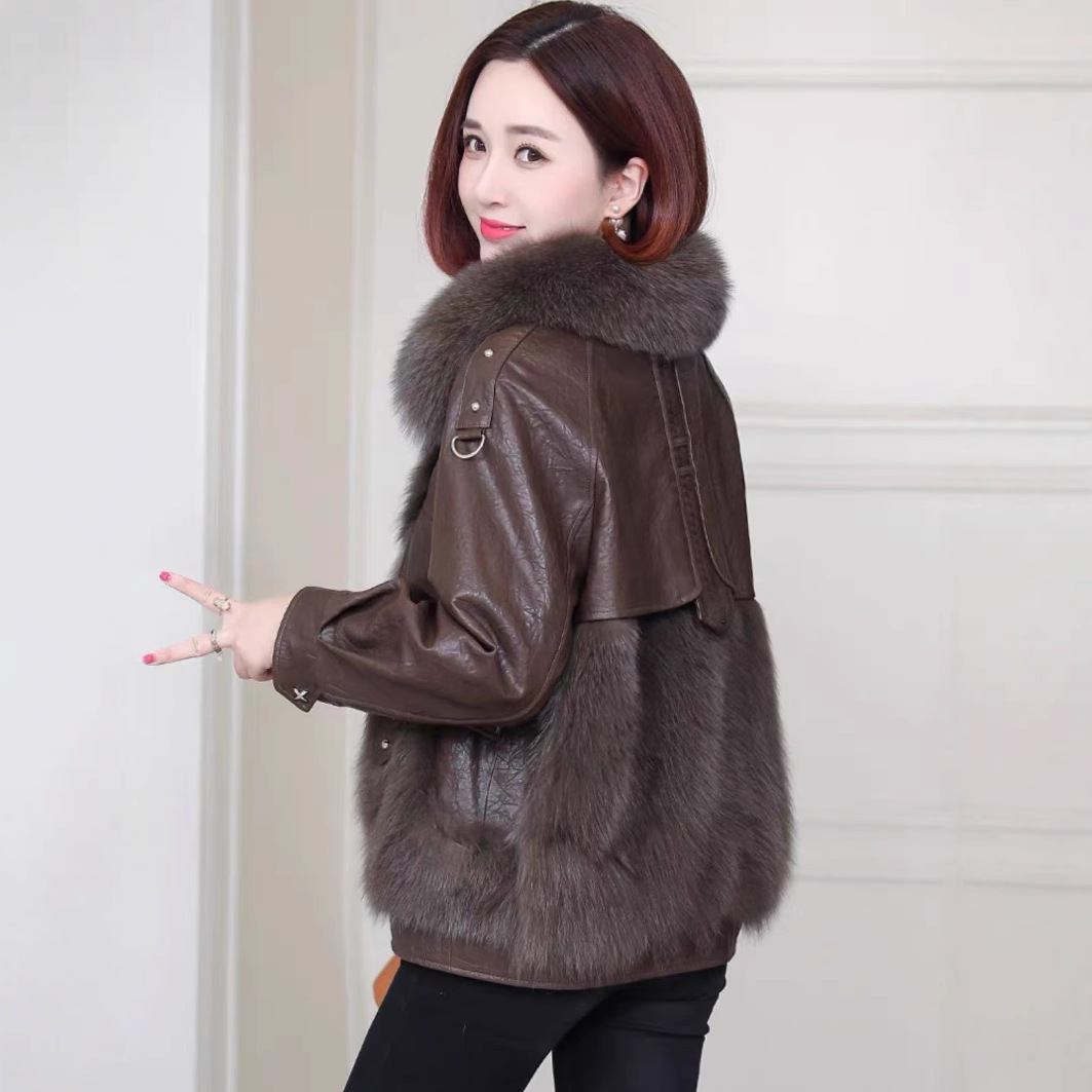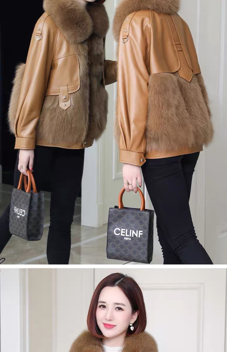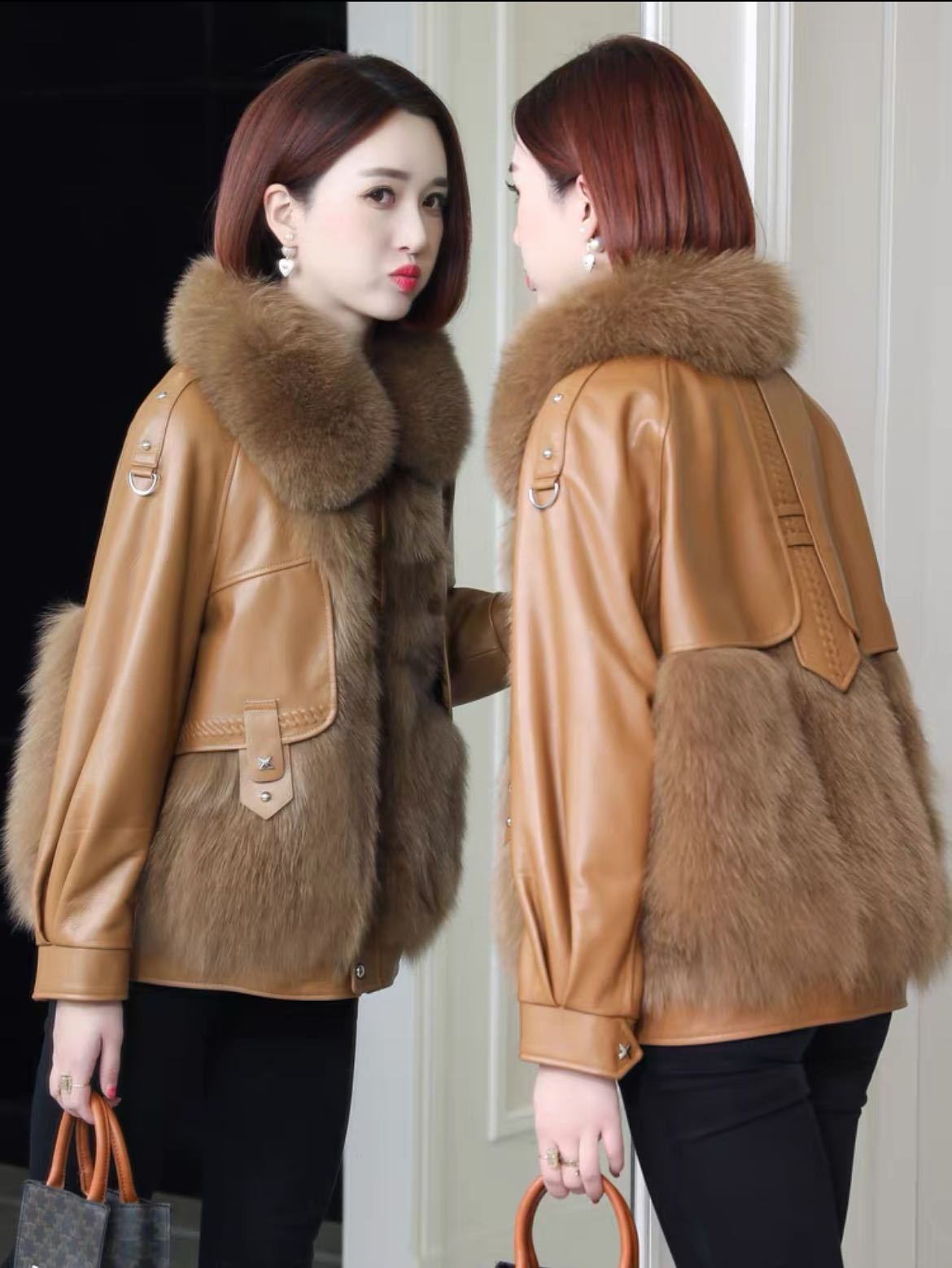 2024 зима Haining мех лисы шерстяной воротник кожаный модный тонкий и толстый теплый женский пальто новый