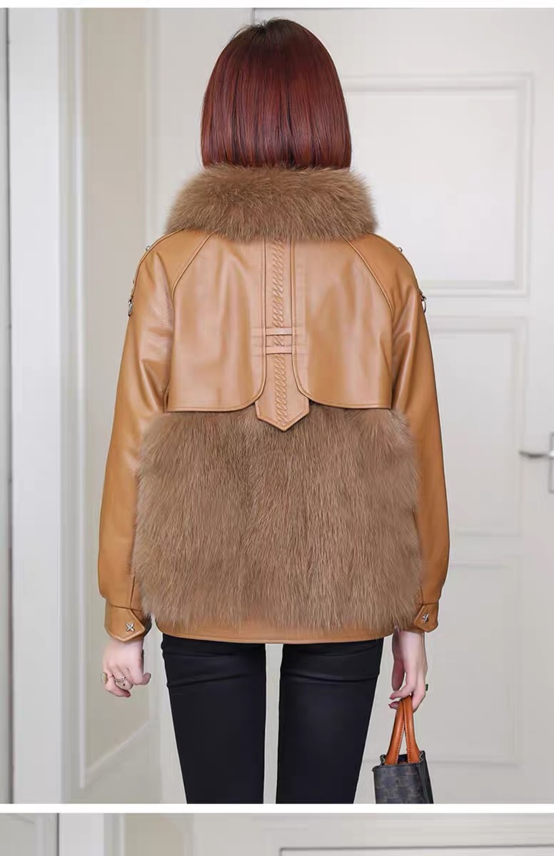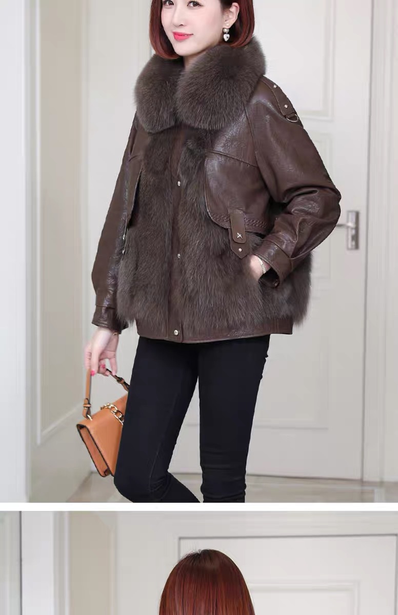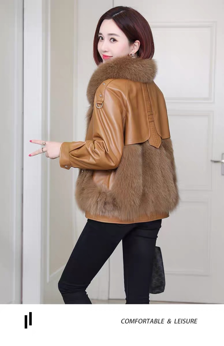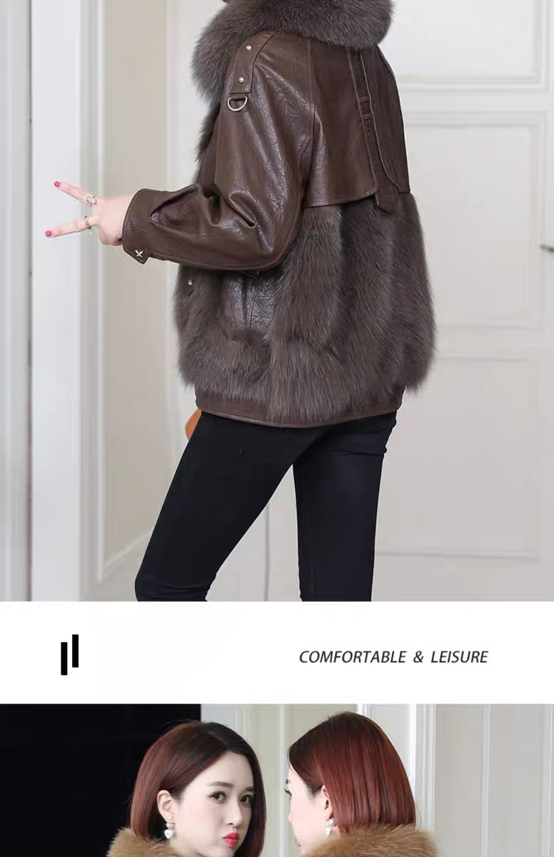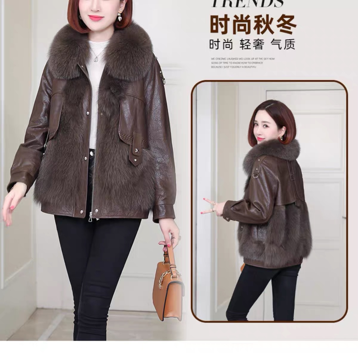 2024 зима Haining мех лисы шерстяной воротник кожаный модный тонкий и толстый теплый женский пальто новый
