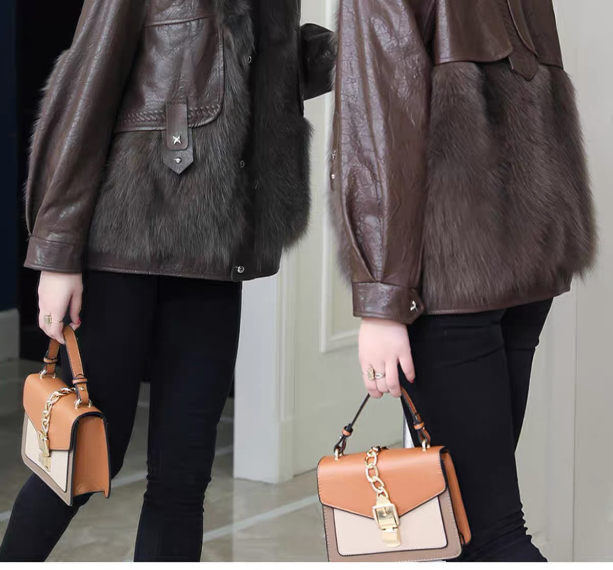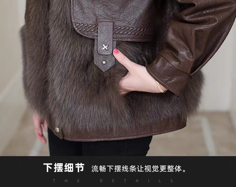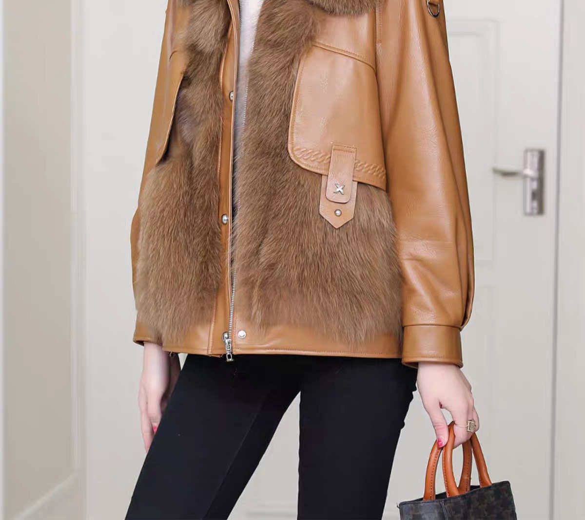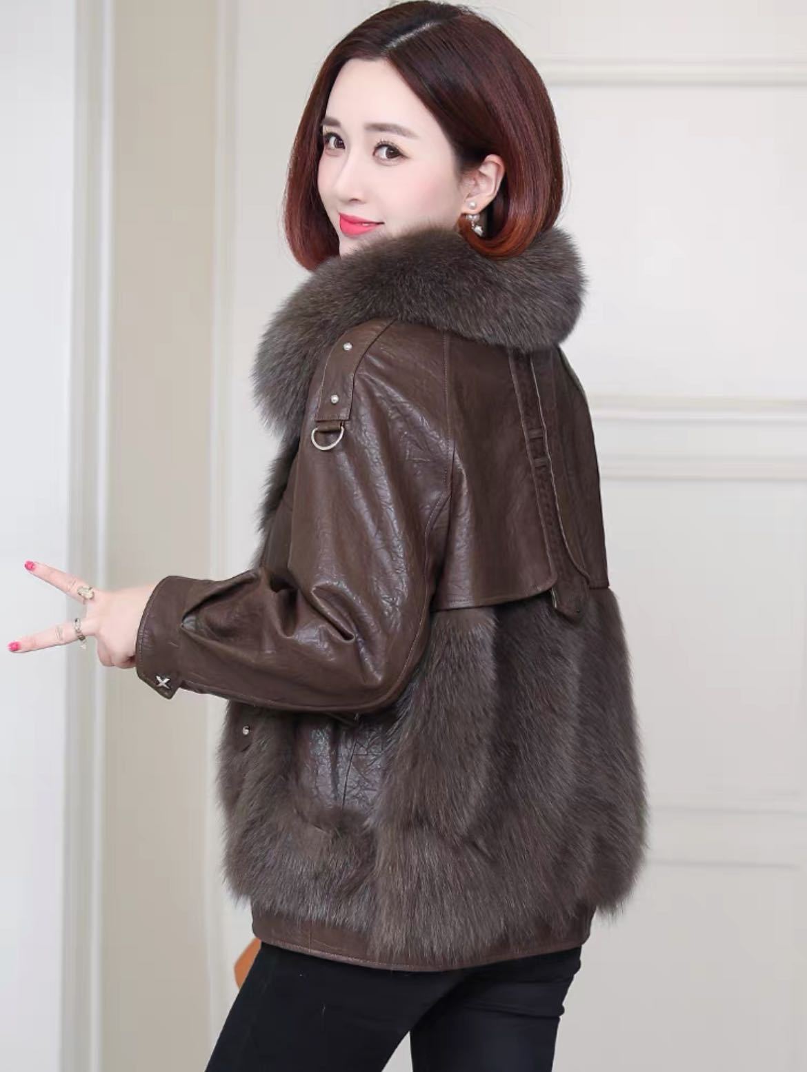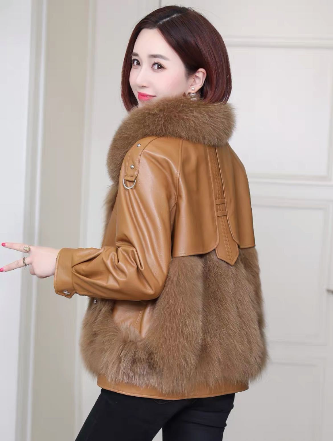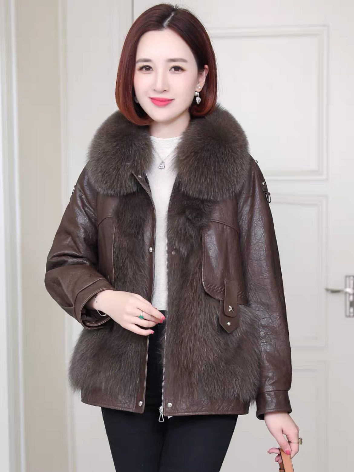 2024 зима Haining мех лисы шерстяной воротник кожаный модный тонкий и толстый теплый женский пальто новый