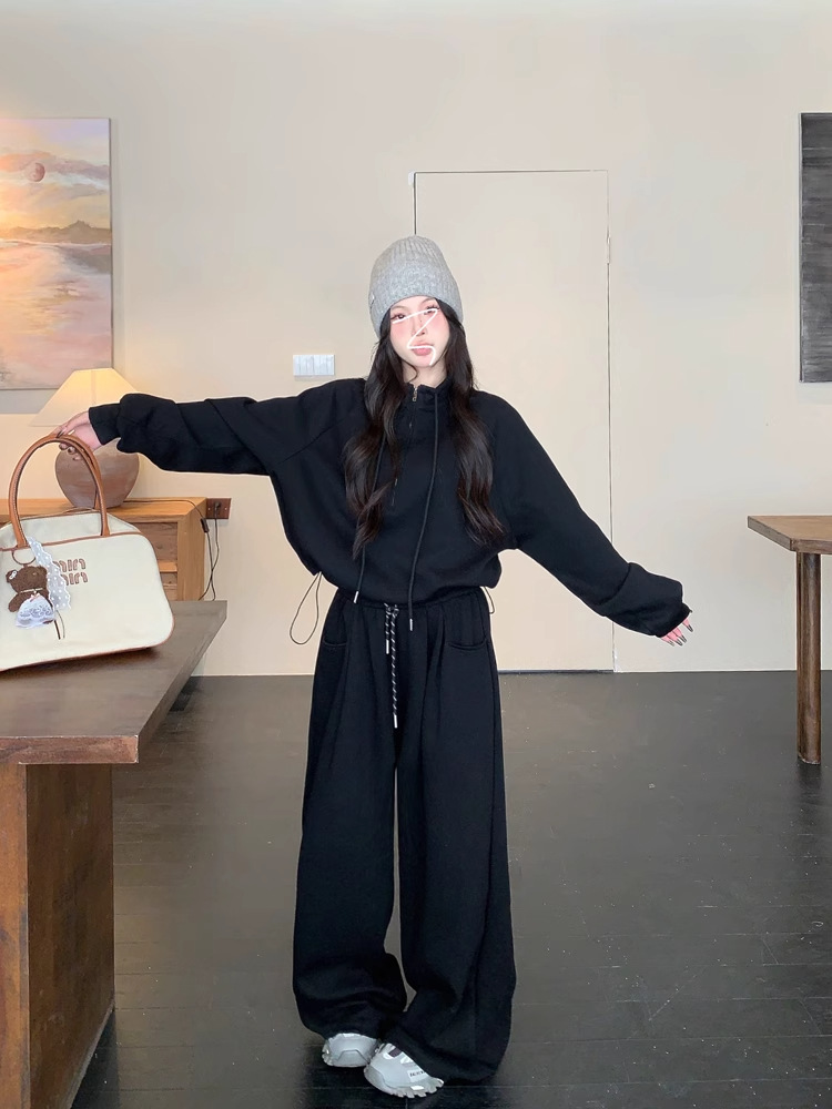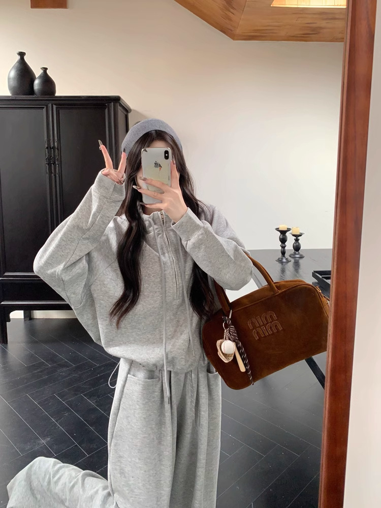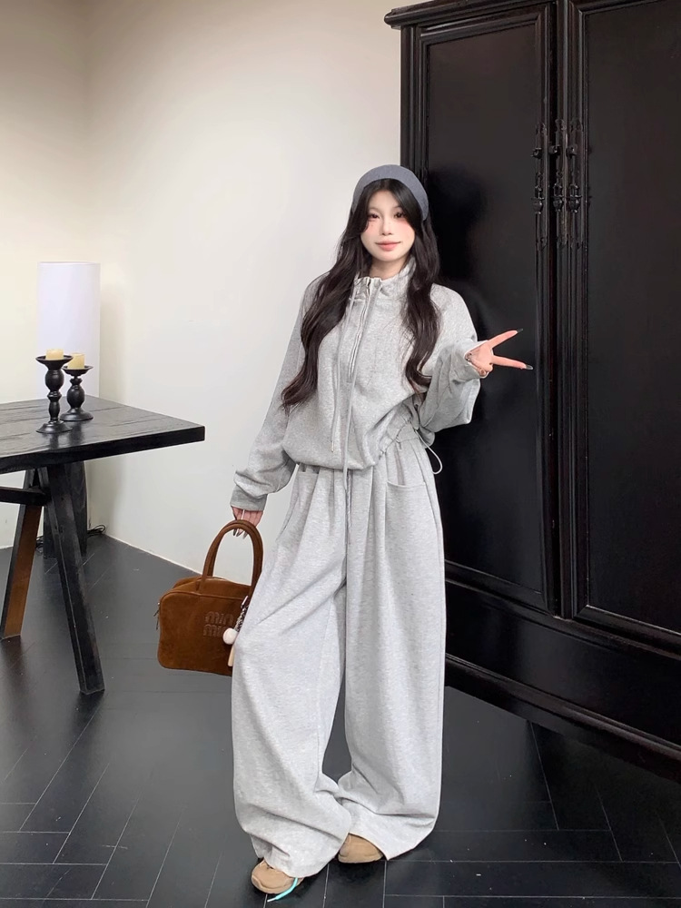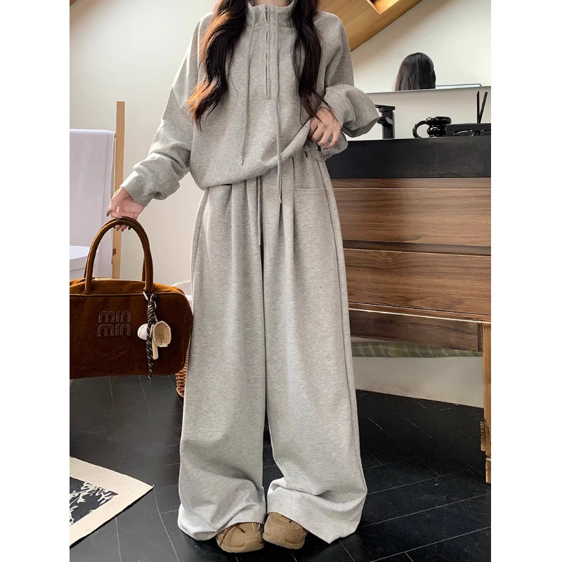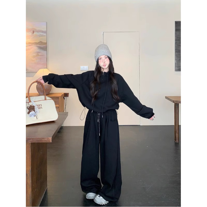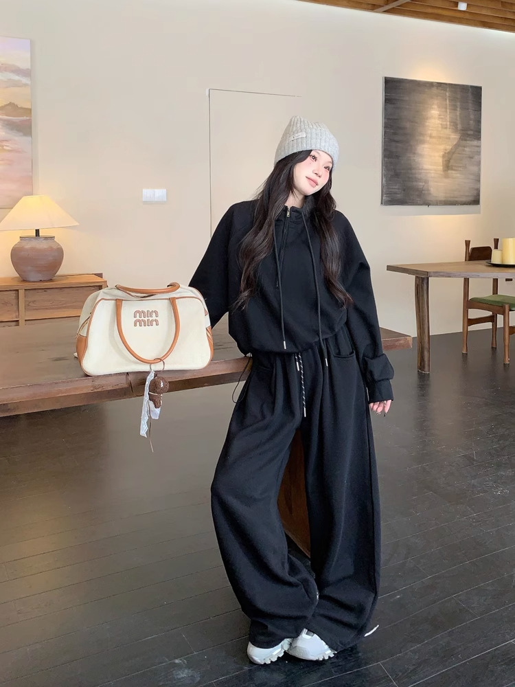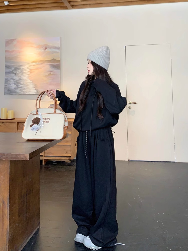 Большой размер ленивый ветреный костюм женский осенний и зимний повседневный свитер толстый MM тонкий с высокой талией и подвеской штанов из двух частей
