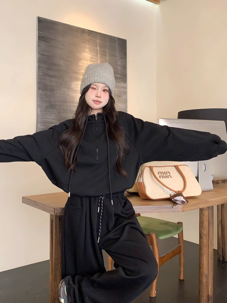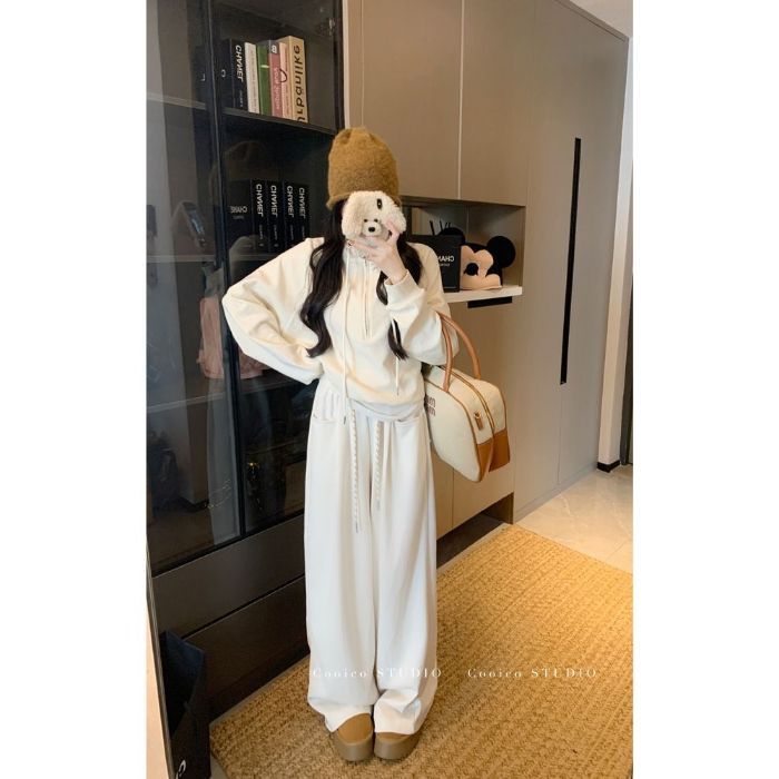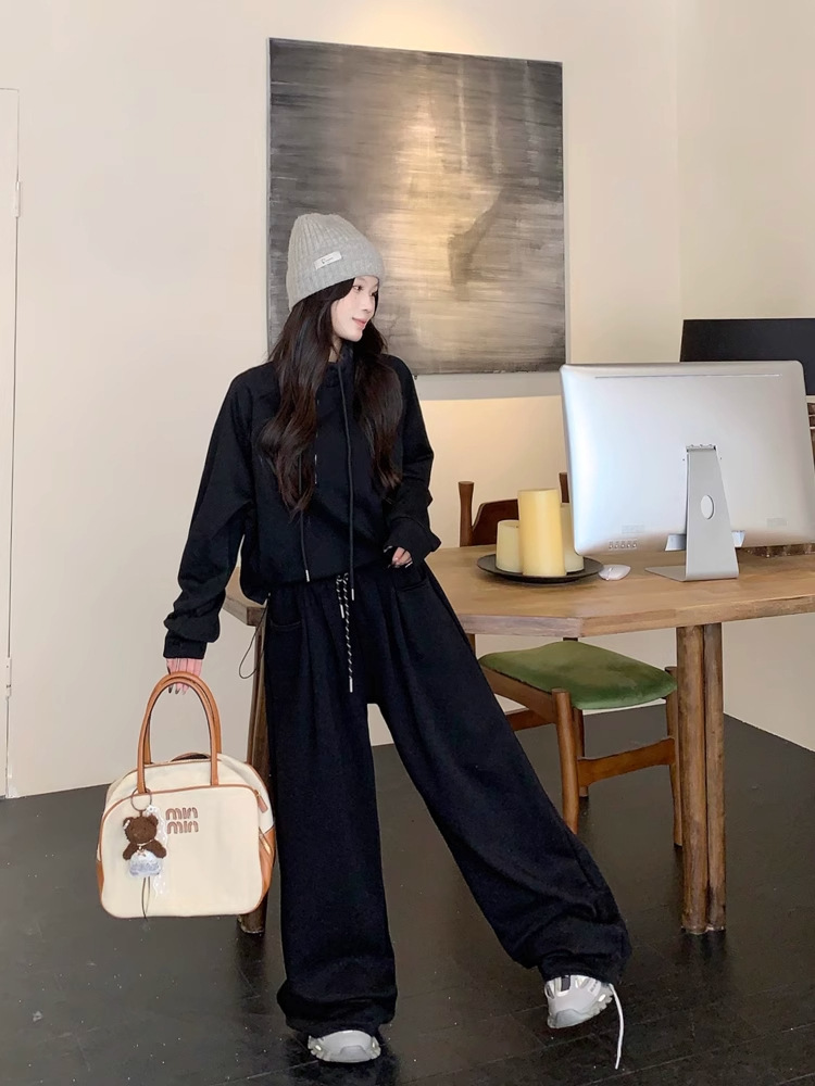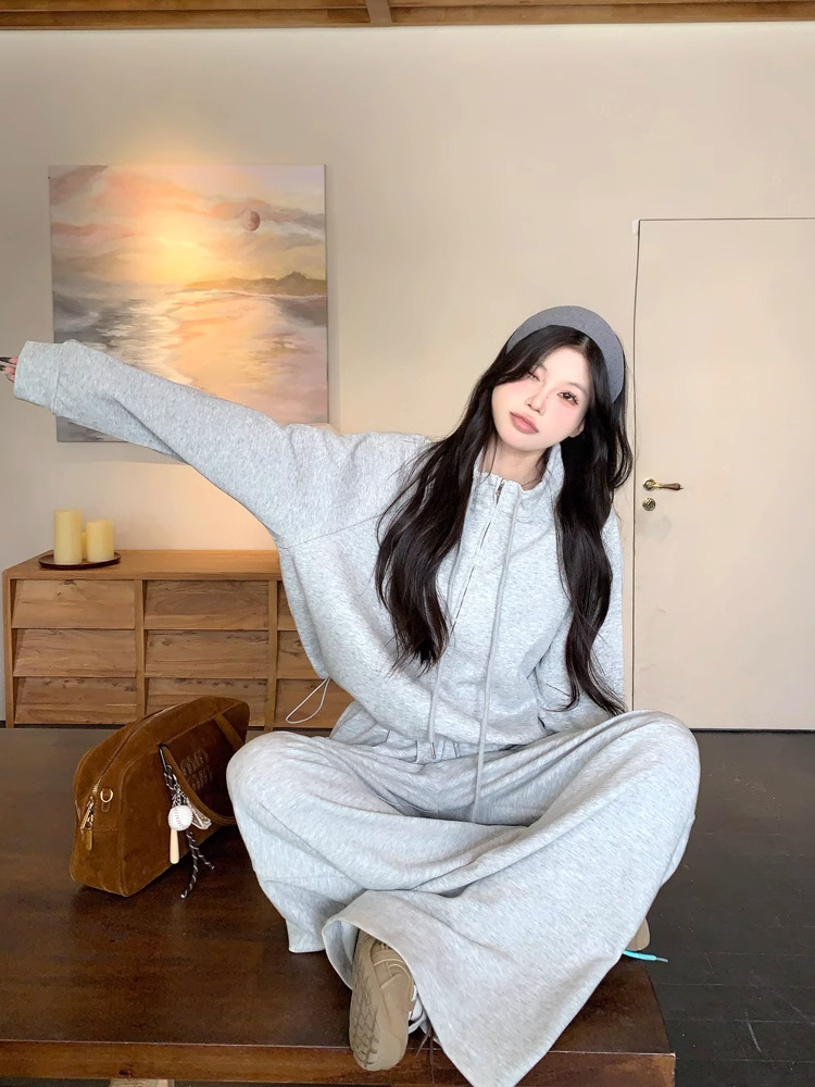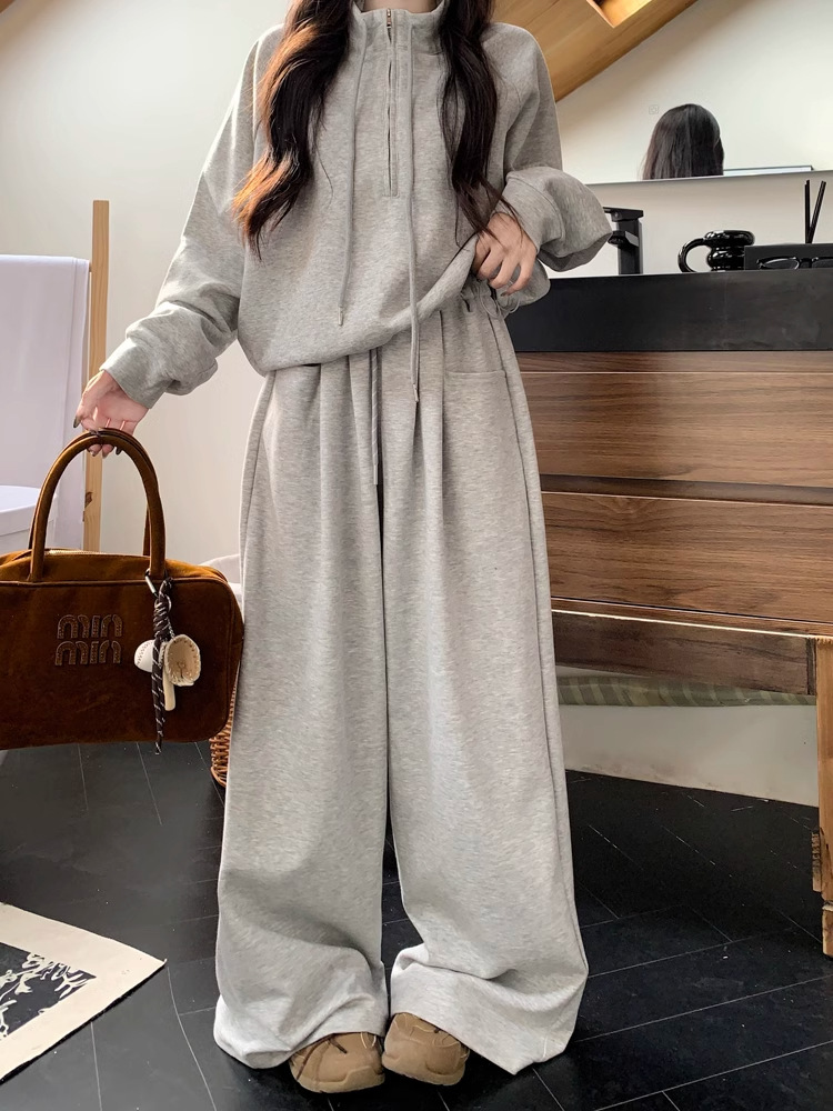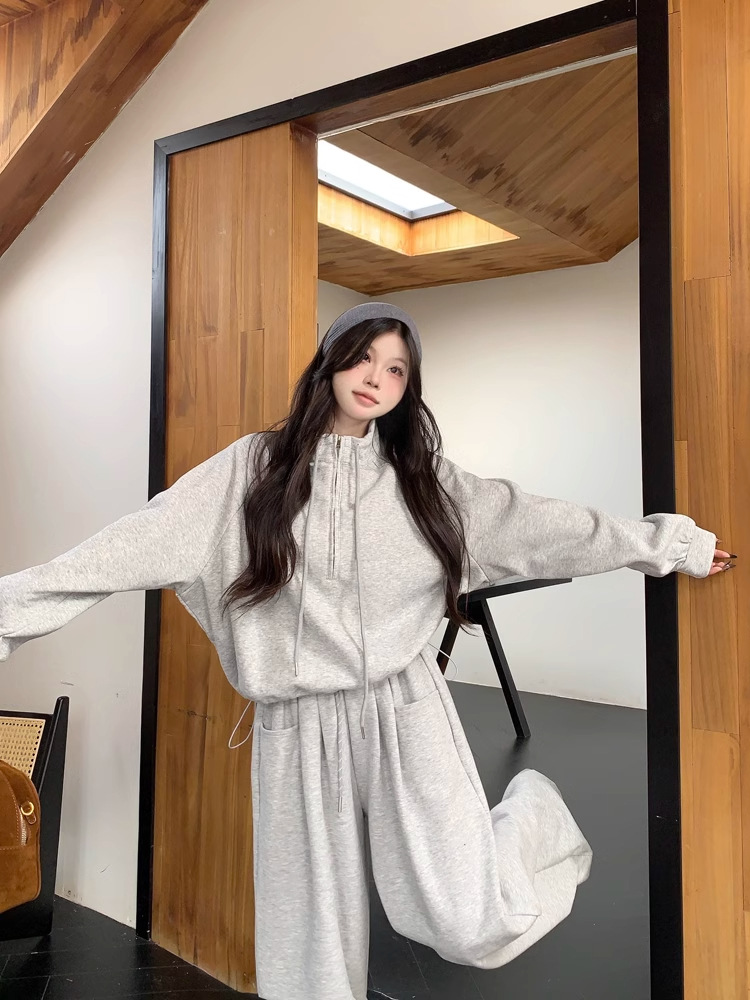 Большой размер ленивый ветреный костюм женский осенний и зимний повседневный свитер толстый MM тонкий с высокой талией и подвеской штанов из двух частей
