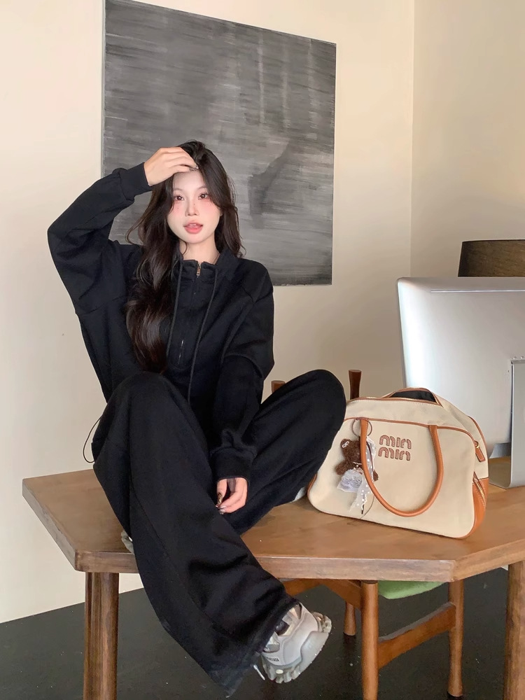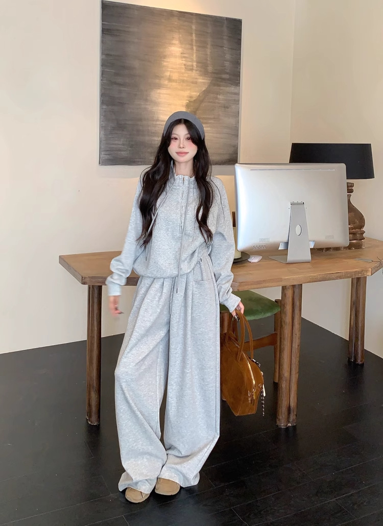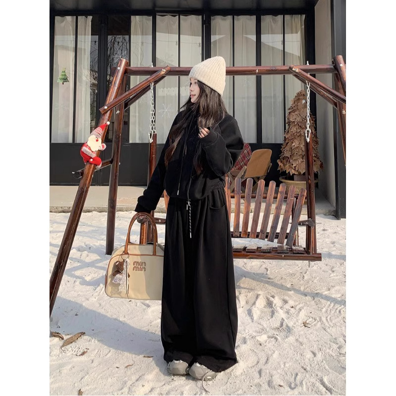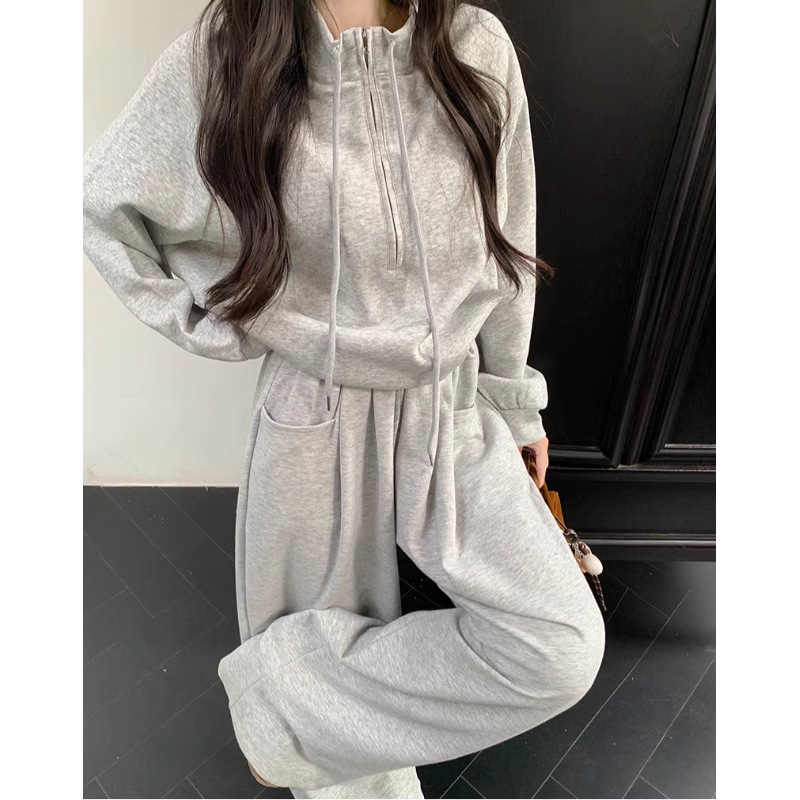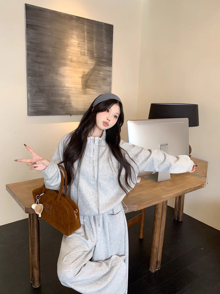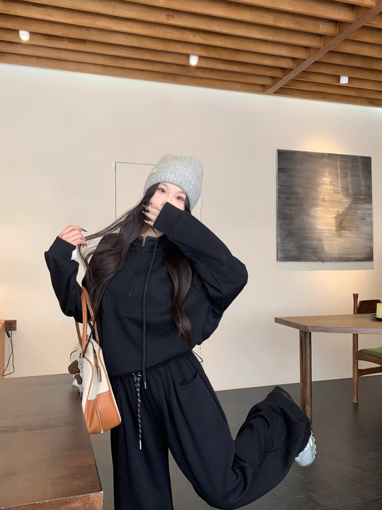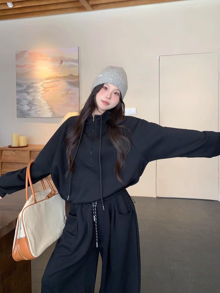 Большой размер ленивый ветреный костюм женский осенний и зимний повседневный свитер толстый MM тонкий с высокой талией и подвеской штанов из двух частей