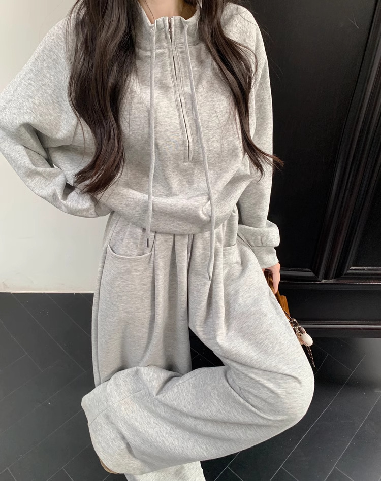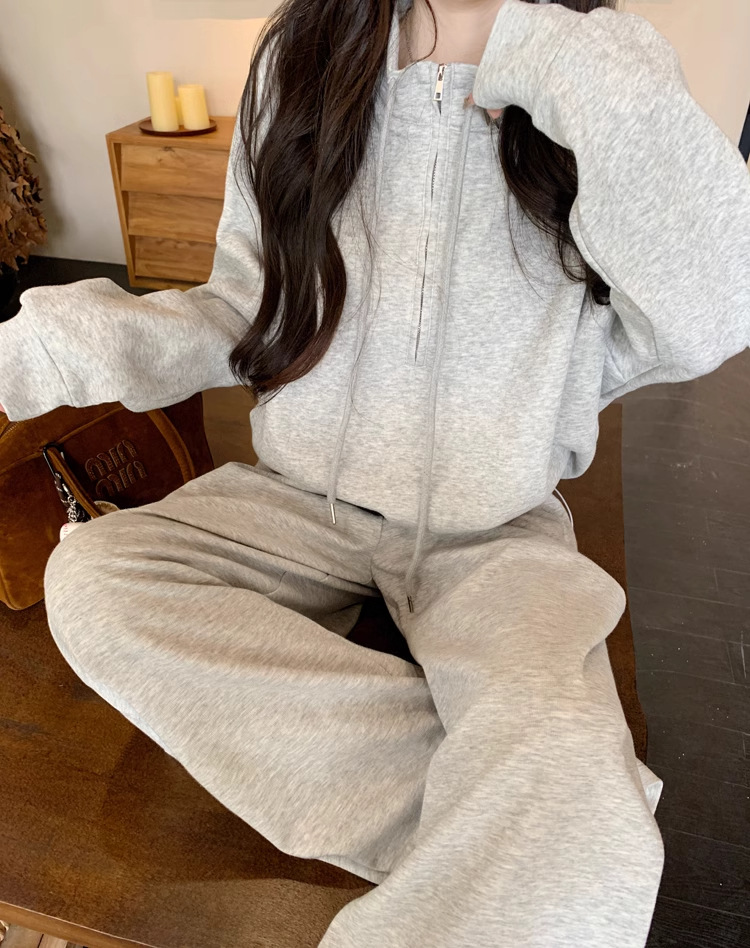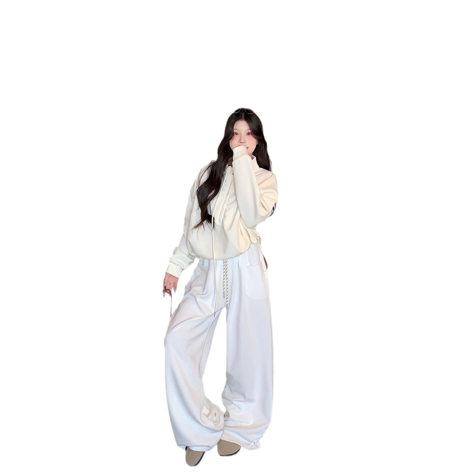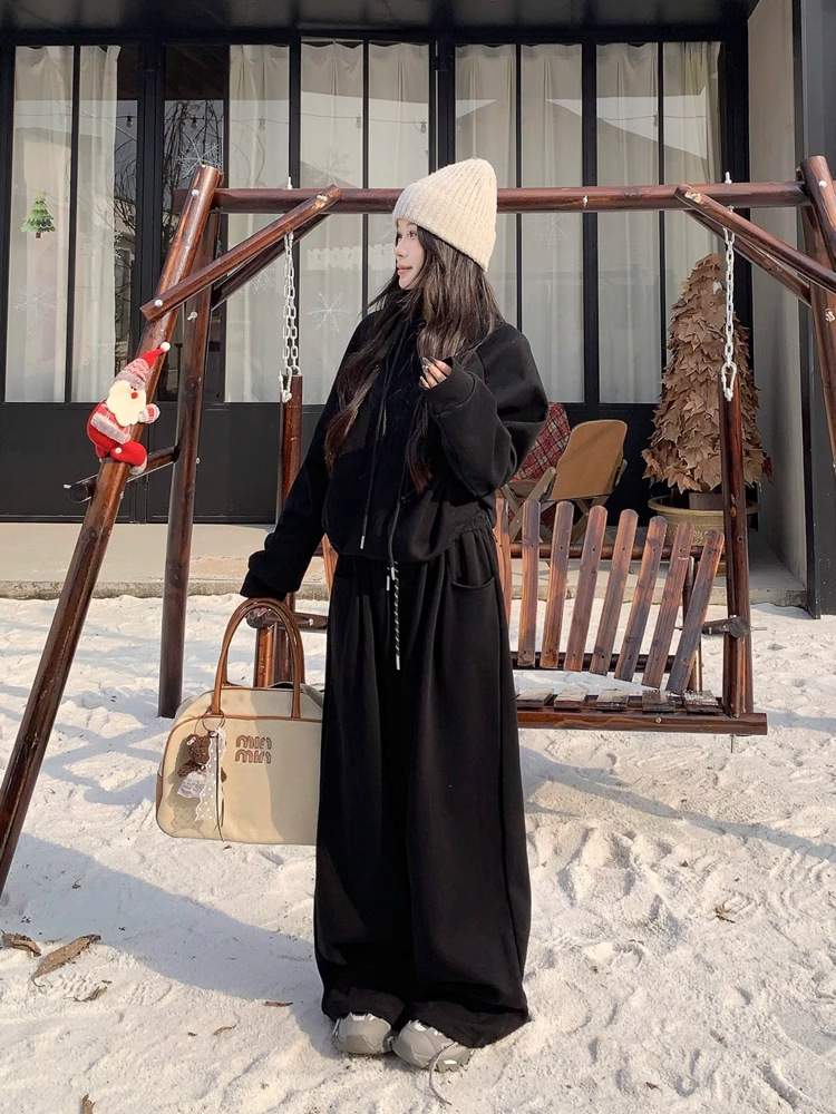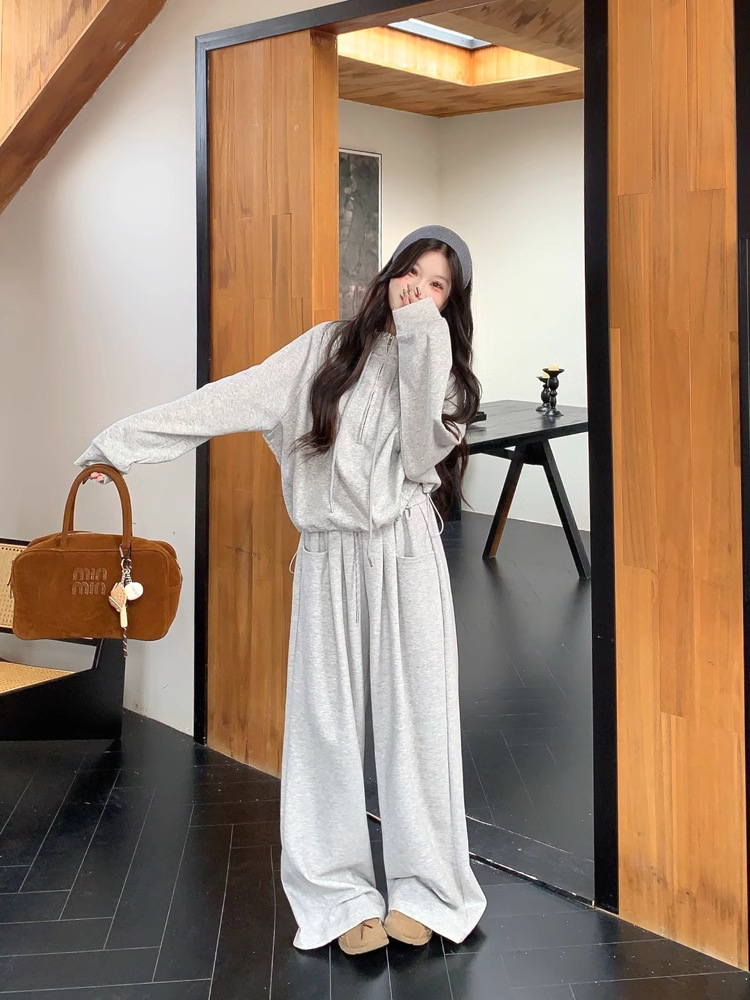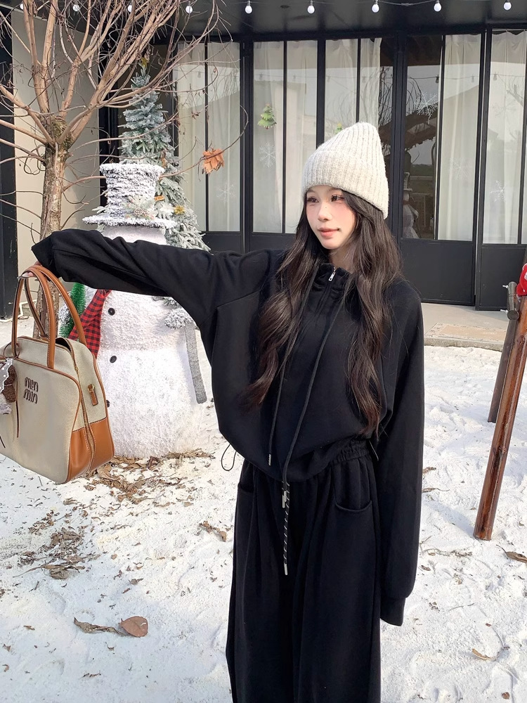 Большой размер ленивый ветреный костюм женский осенний и зимний повседневный свитер толстый MM тонкий с высокой талией и подвеской штанов из двух частей
