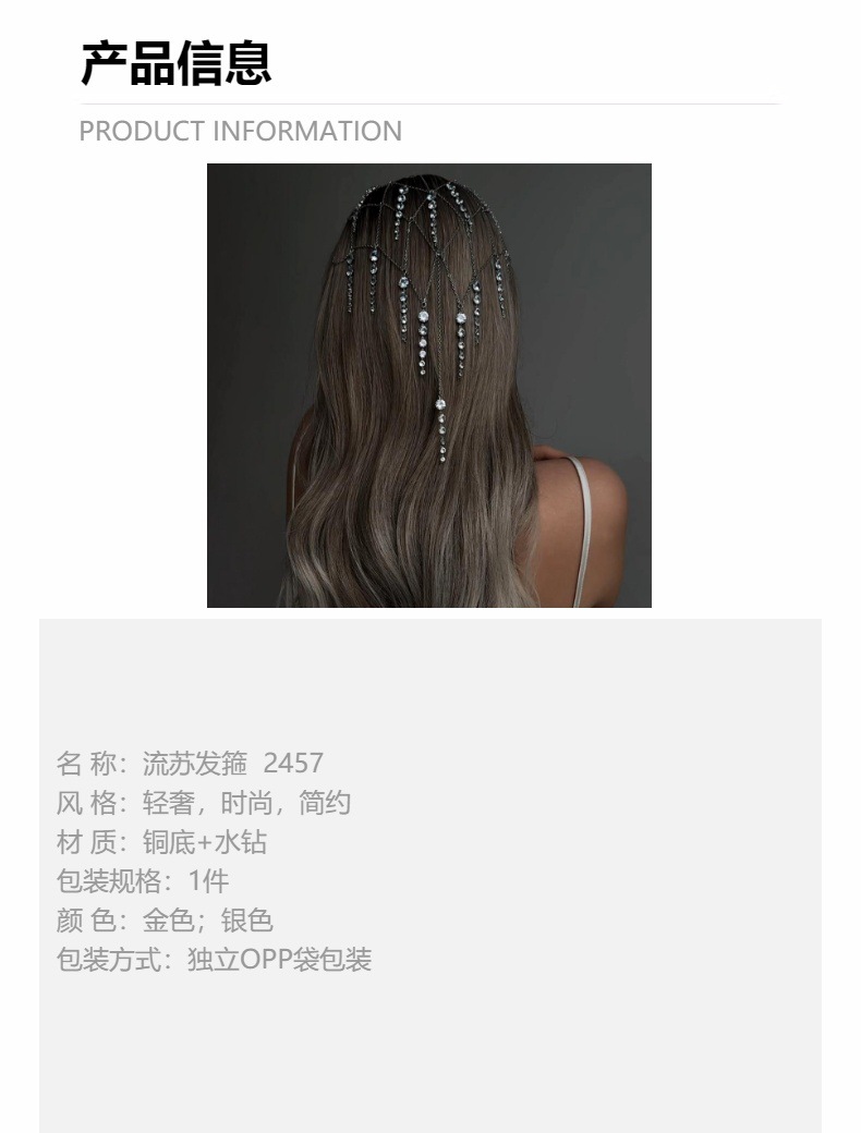 Трансграничный новый обруч для волос с кисточками для волос для женщин высокого уровня света и роскоши стразы цепи головные уборы для европейских и американских темпераментов элегантные свадебные аксессуары для волос
