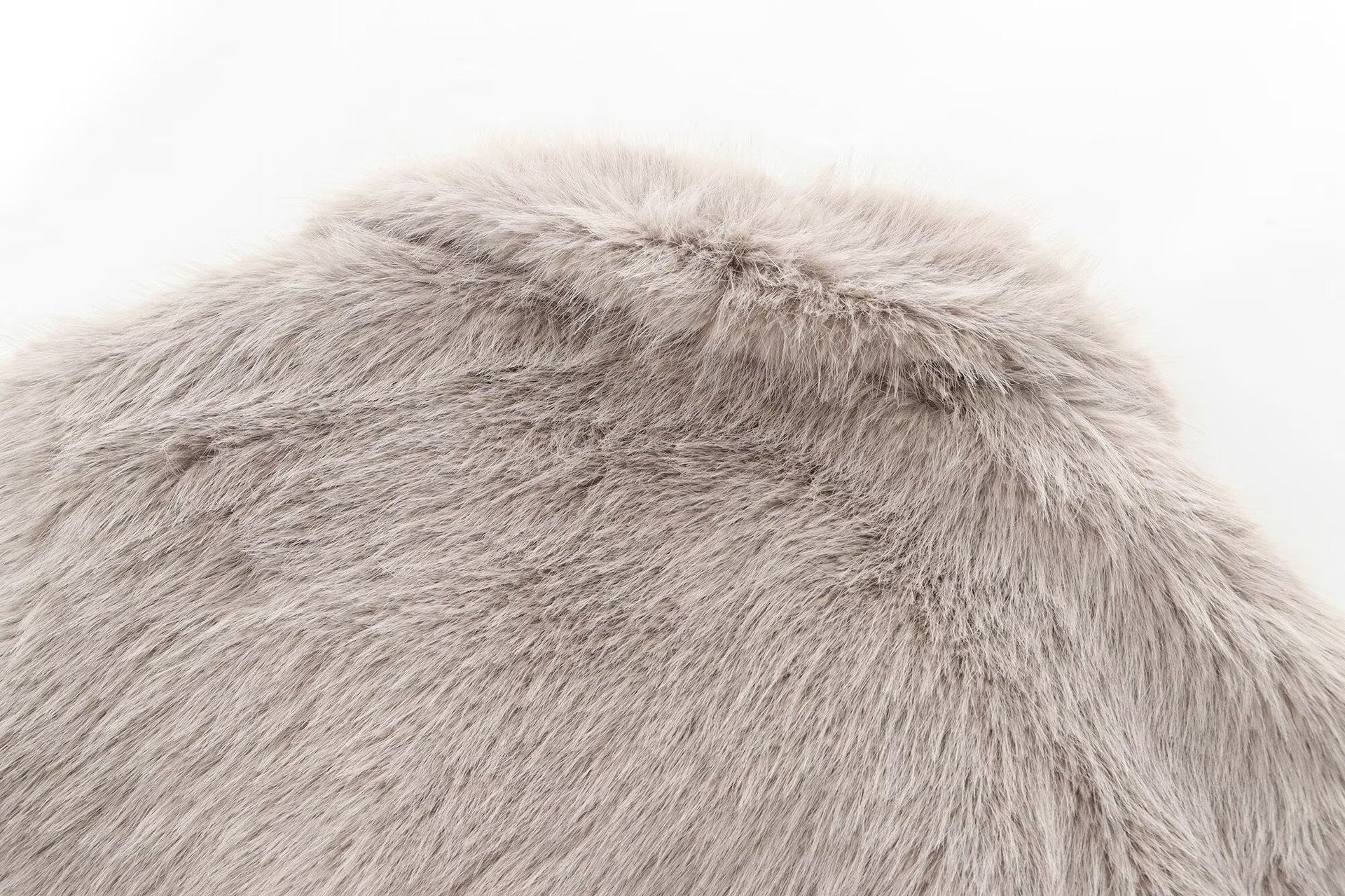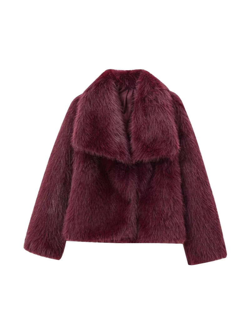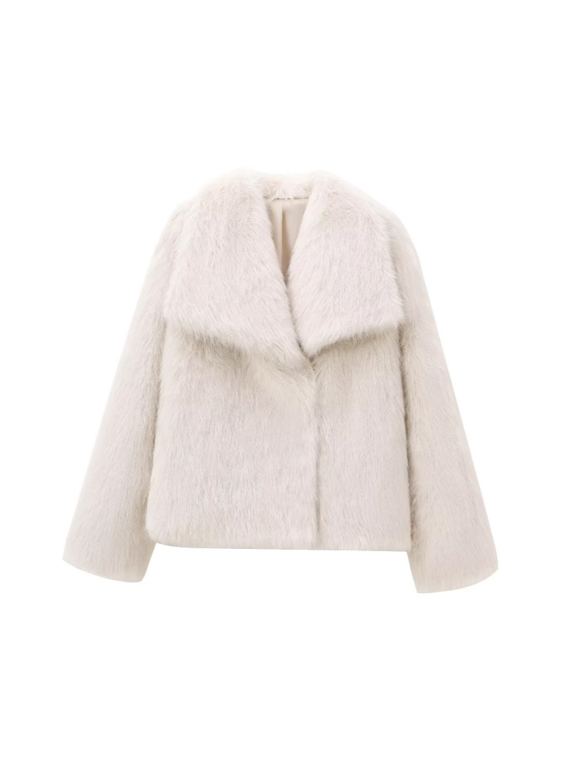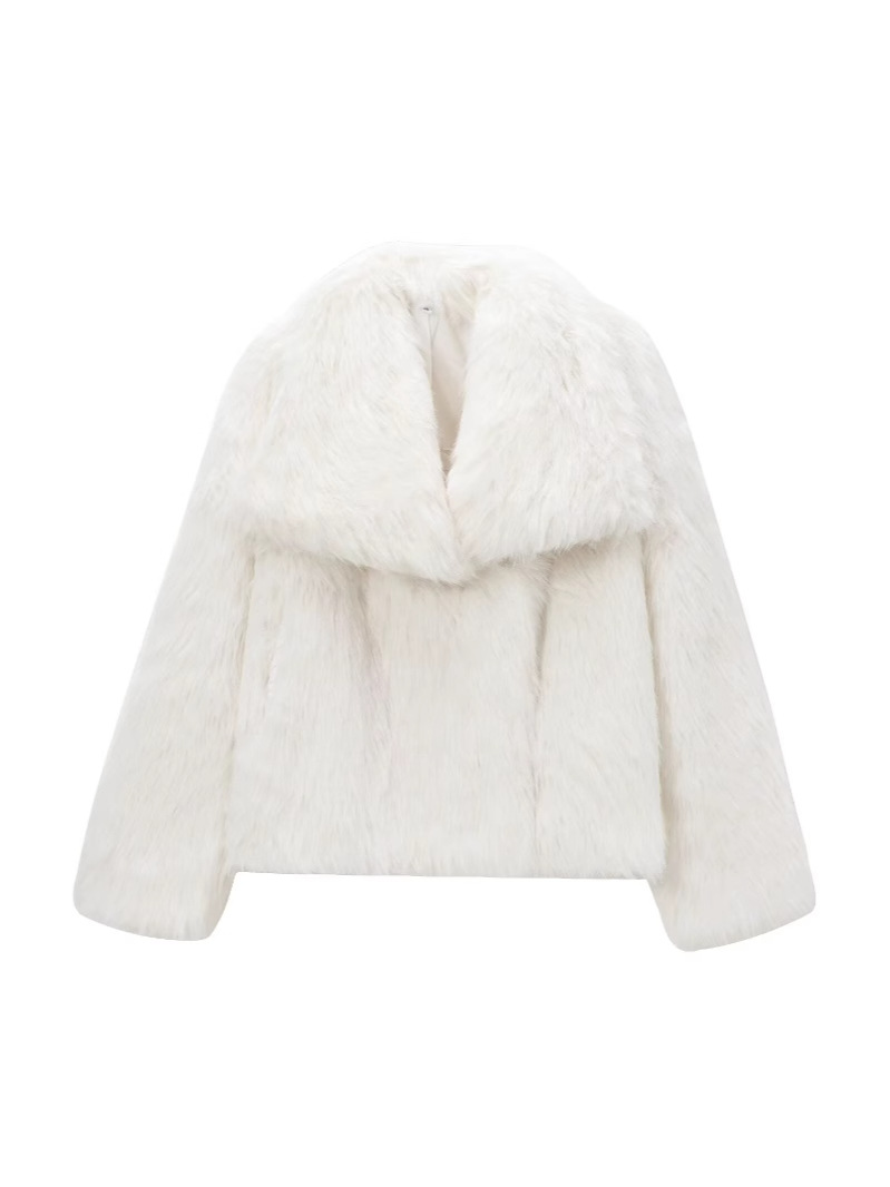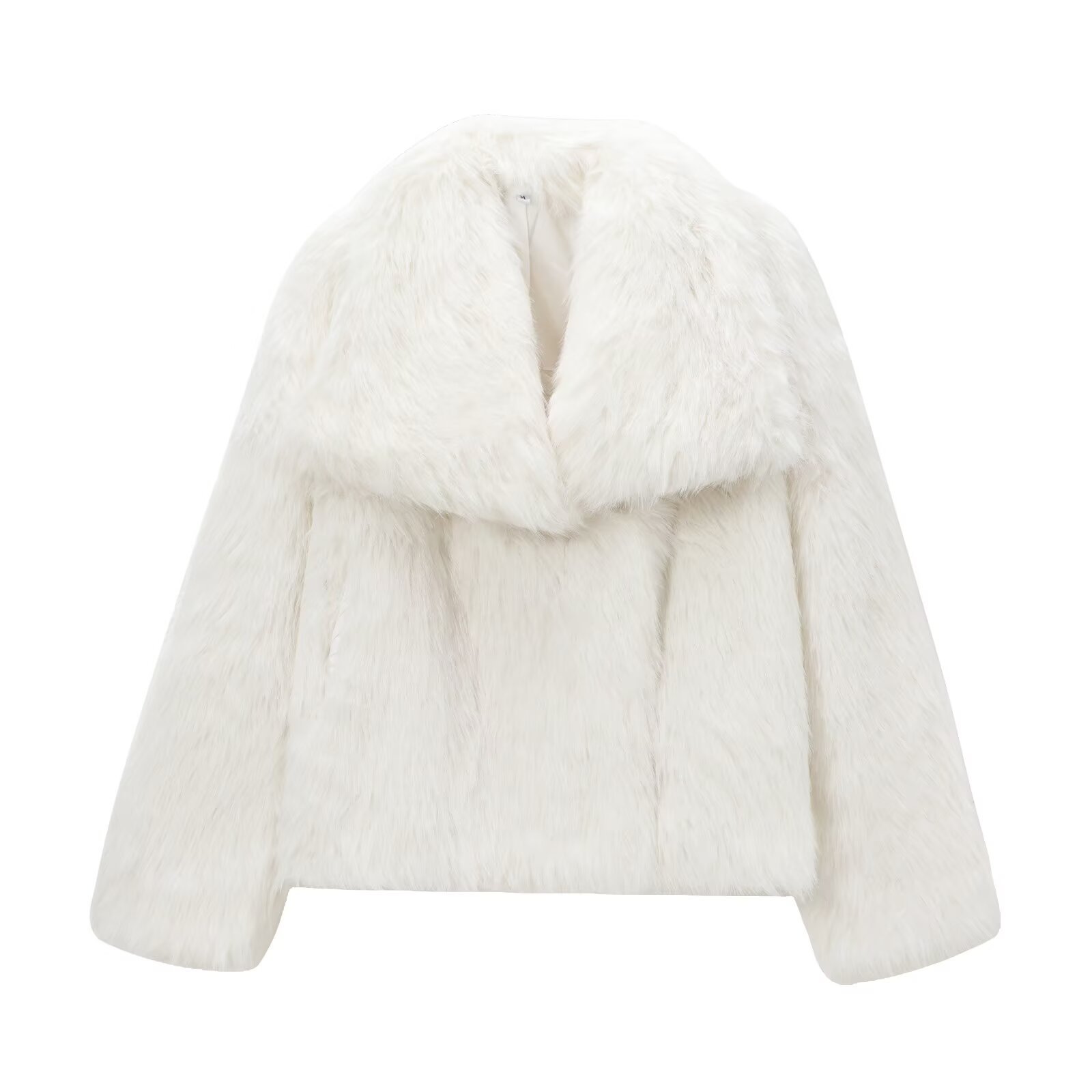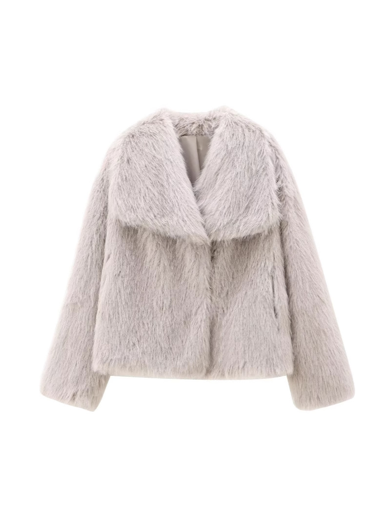 Трансграничная европейская и американская женская одежда 2024 осень и зима новый лацканный воротник с длинными рукавами искусственный мех эффект короткий куртка 4360240