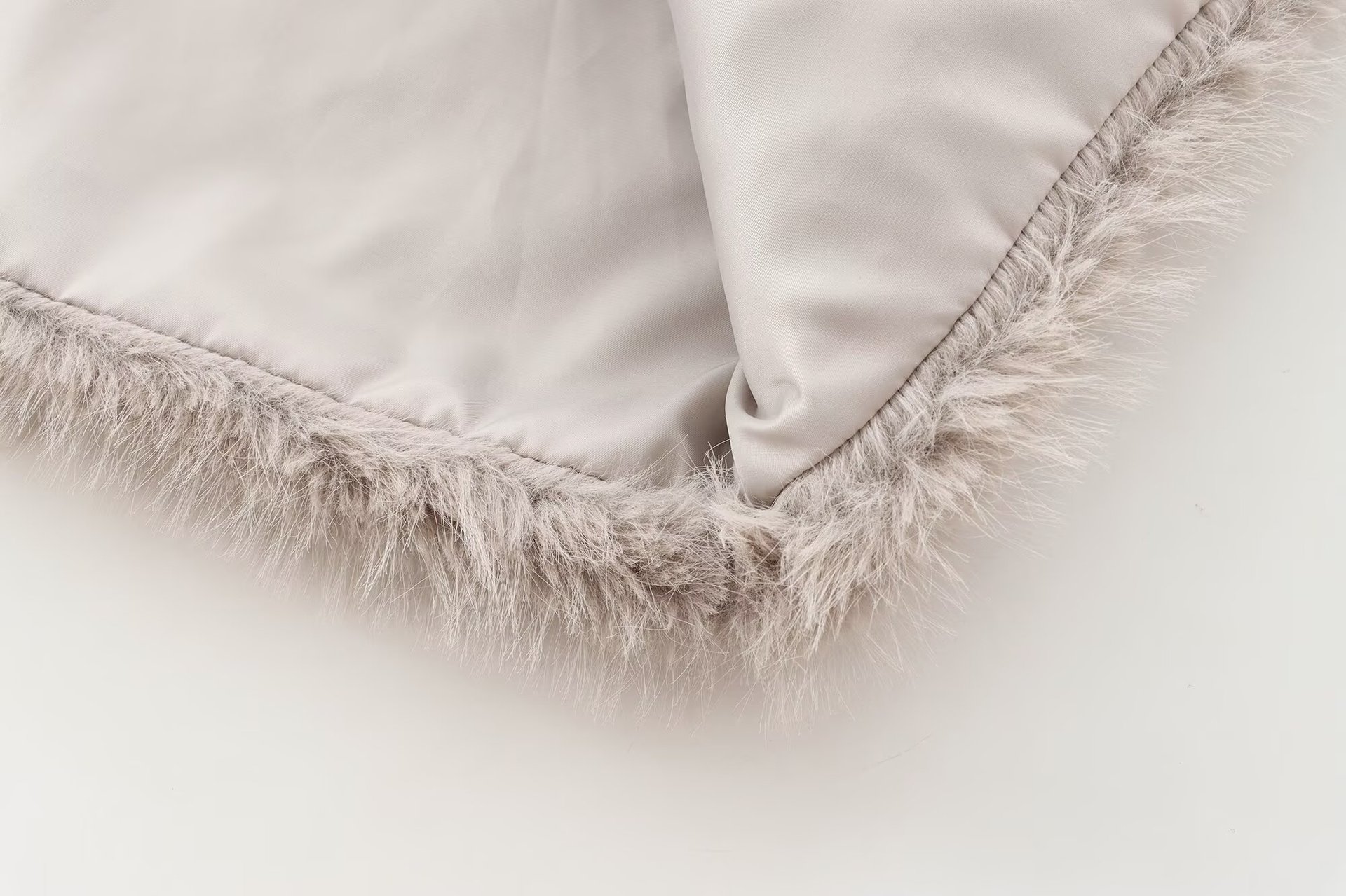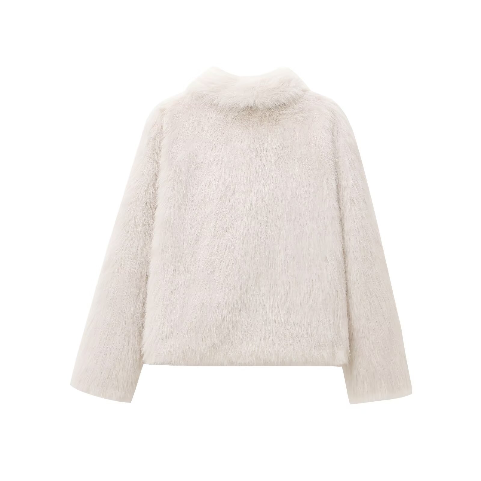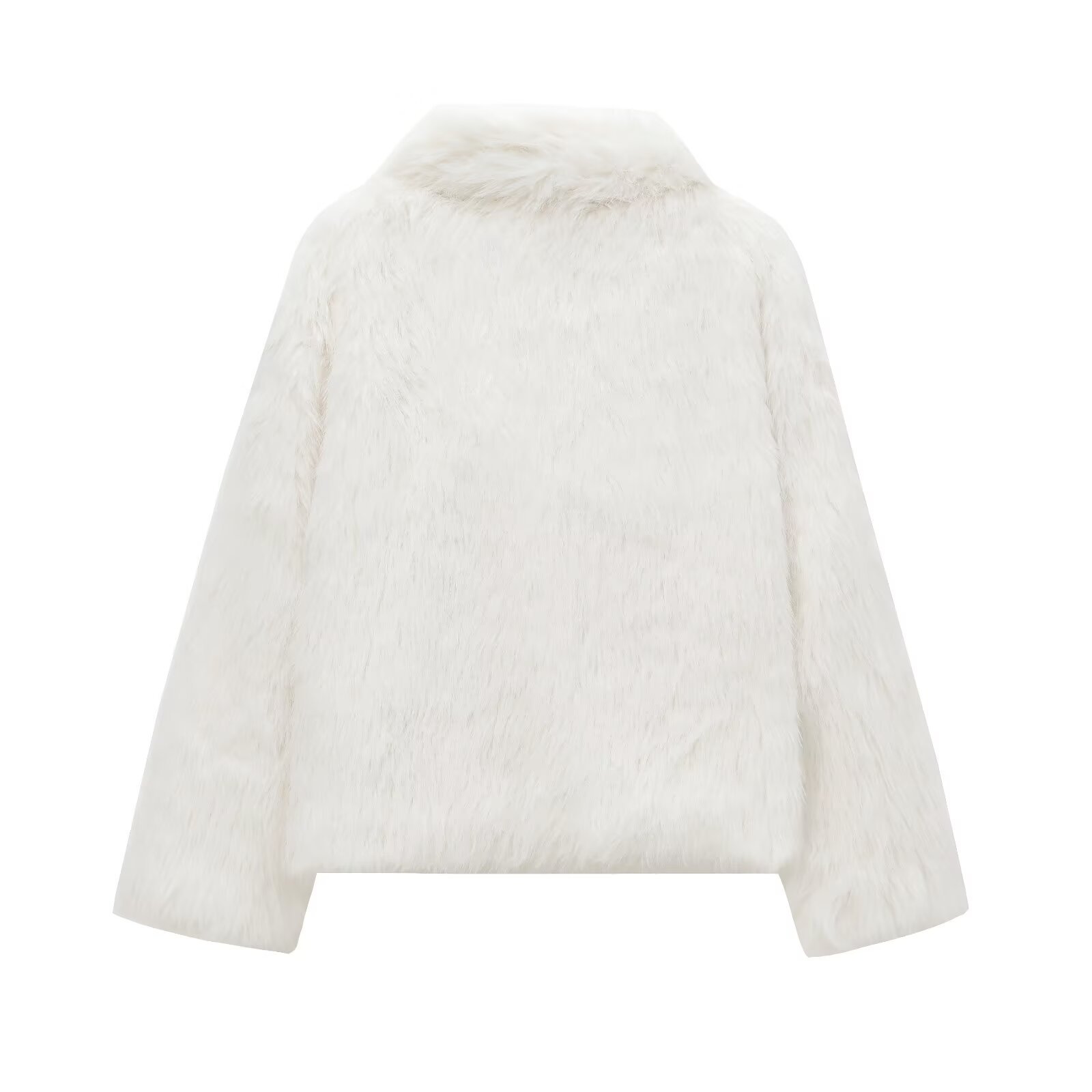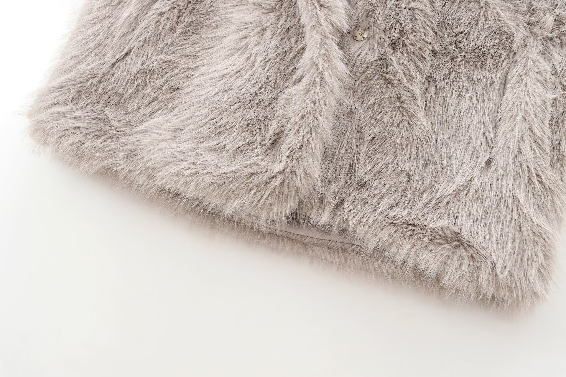 Трансграничная европейская и американская женская одежда 2024 осень и зима новый лацканный воротник с длинными рукавами искусственный мех эффект короткий куртка 4360240