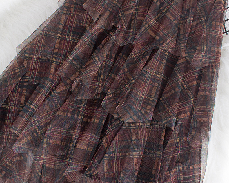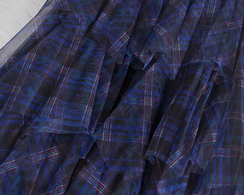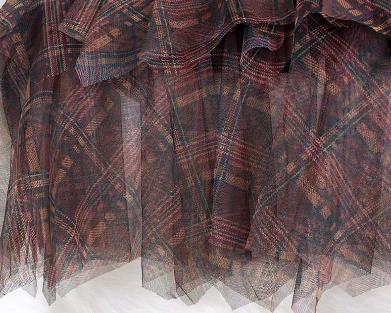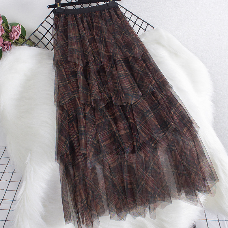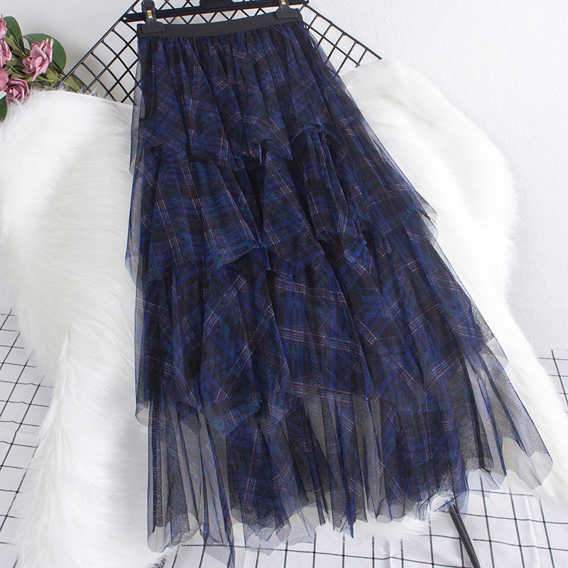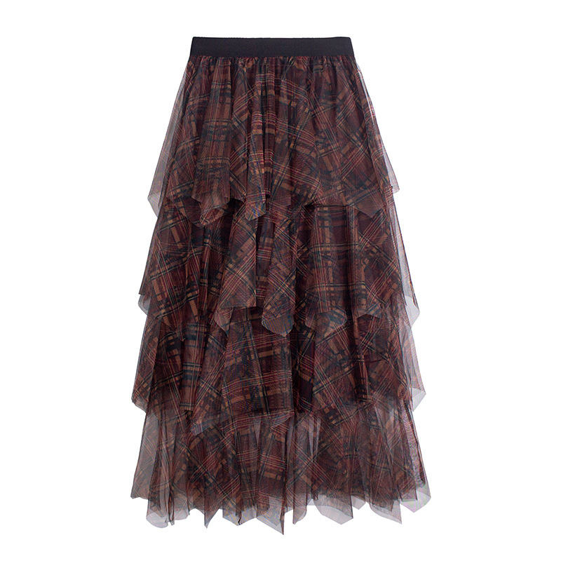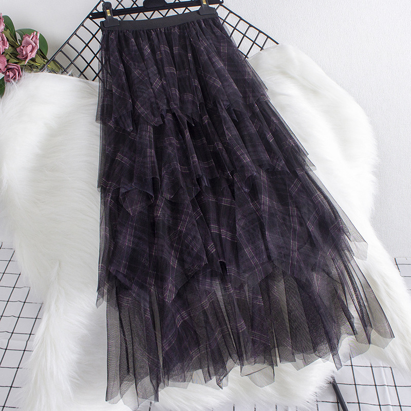 Юбка из сетки в клетку, новинка весны 2025, юбка А-силуэта средней длины, женская юбка-сетка с асимметричным подолом, модель 0857
