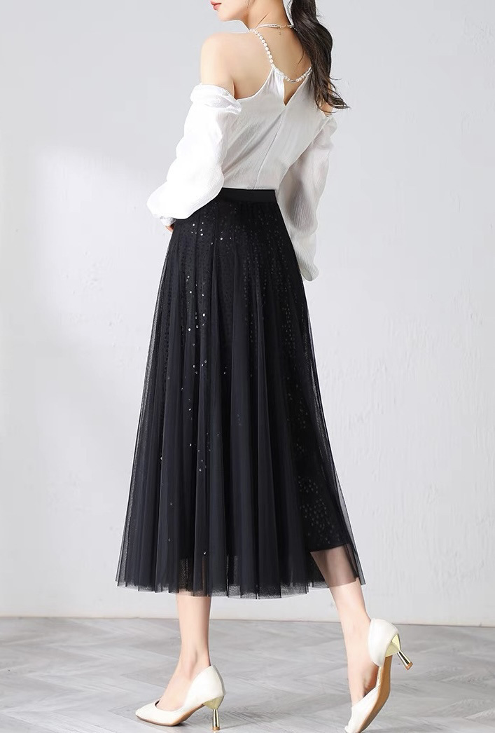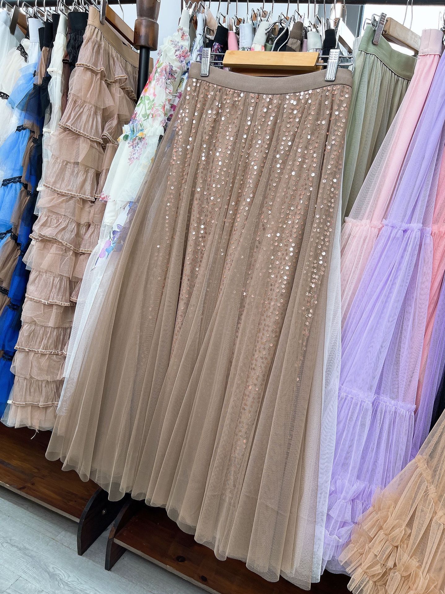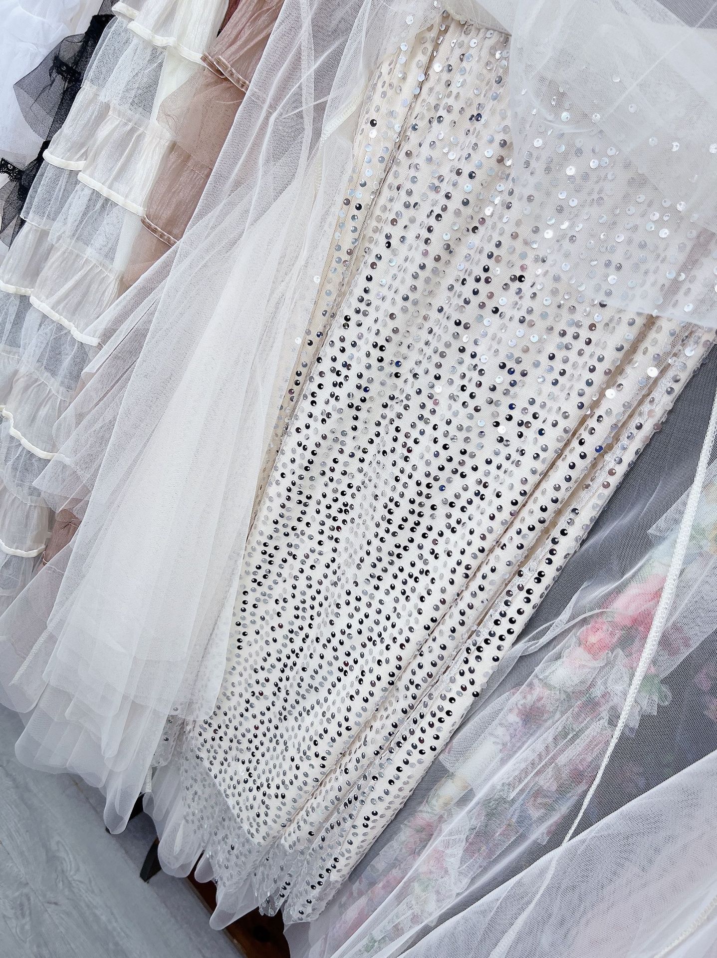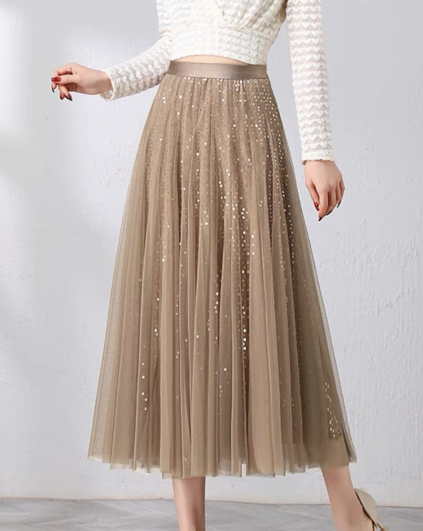 Фэнтезийная французская сетчатая юбка с пайетками для женщин, новый стиль 2022, драпировка с высокой талией, утягивающий вид, трапециевидная юбка-зонтик с большим подолом, бусы