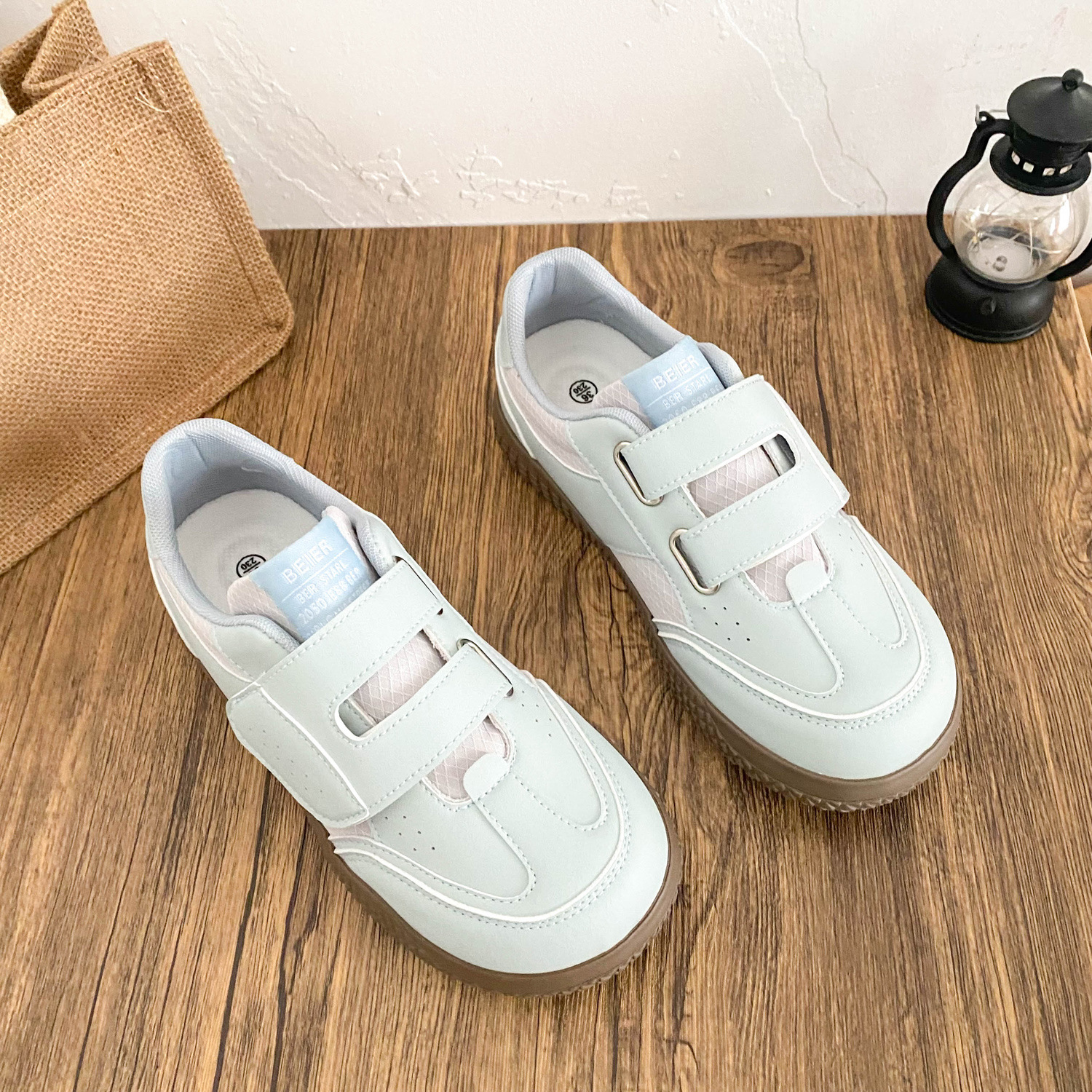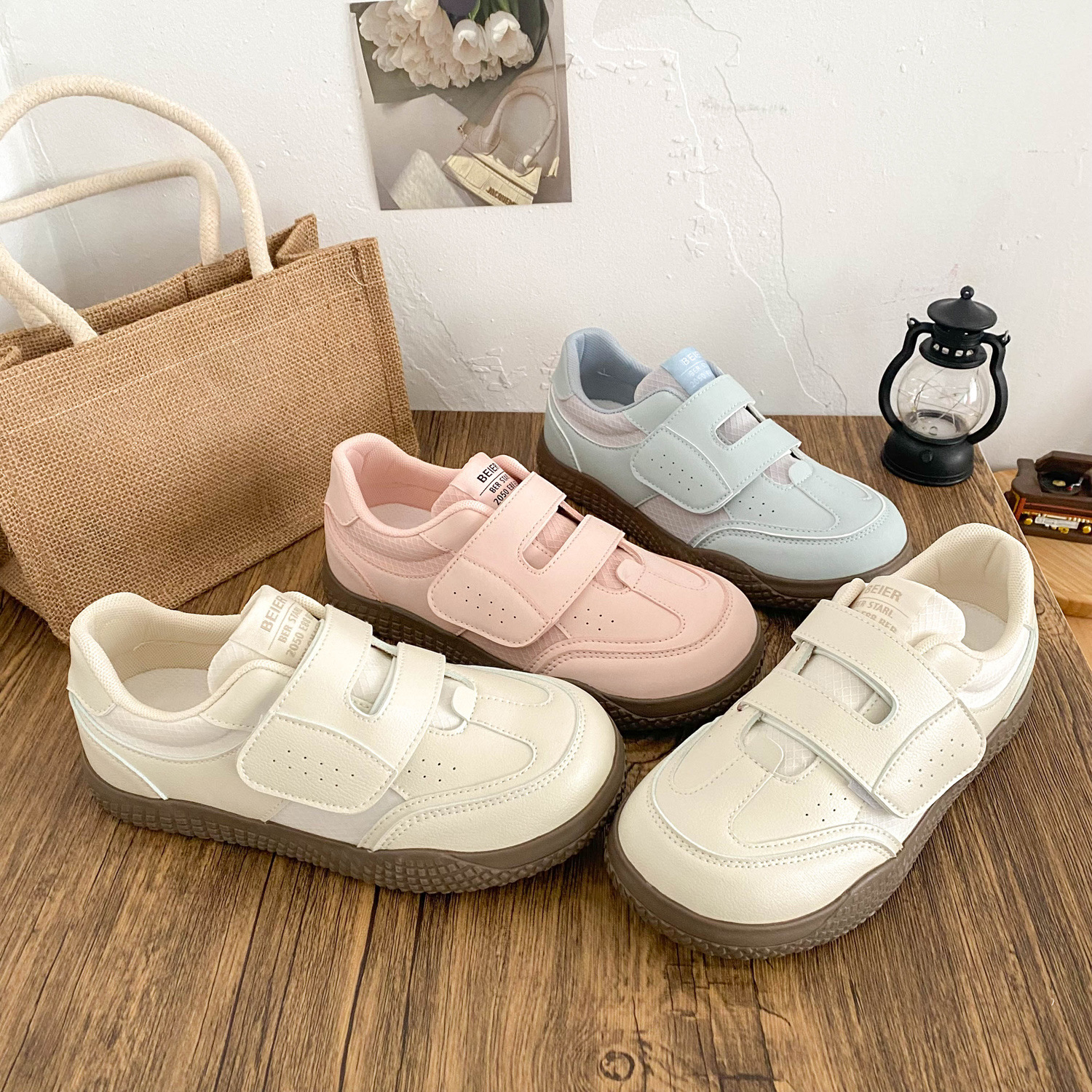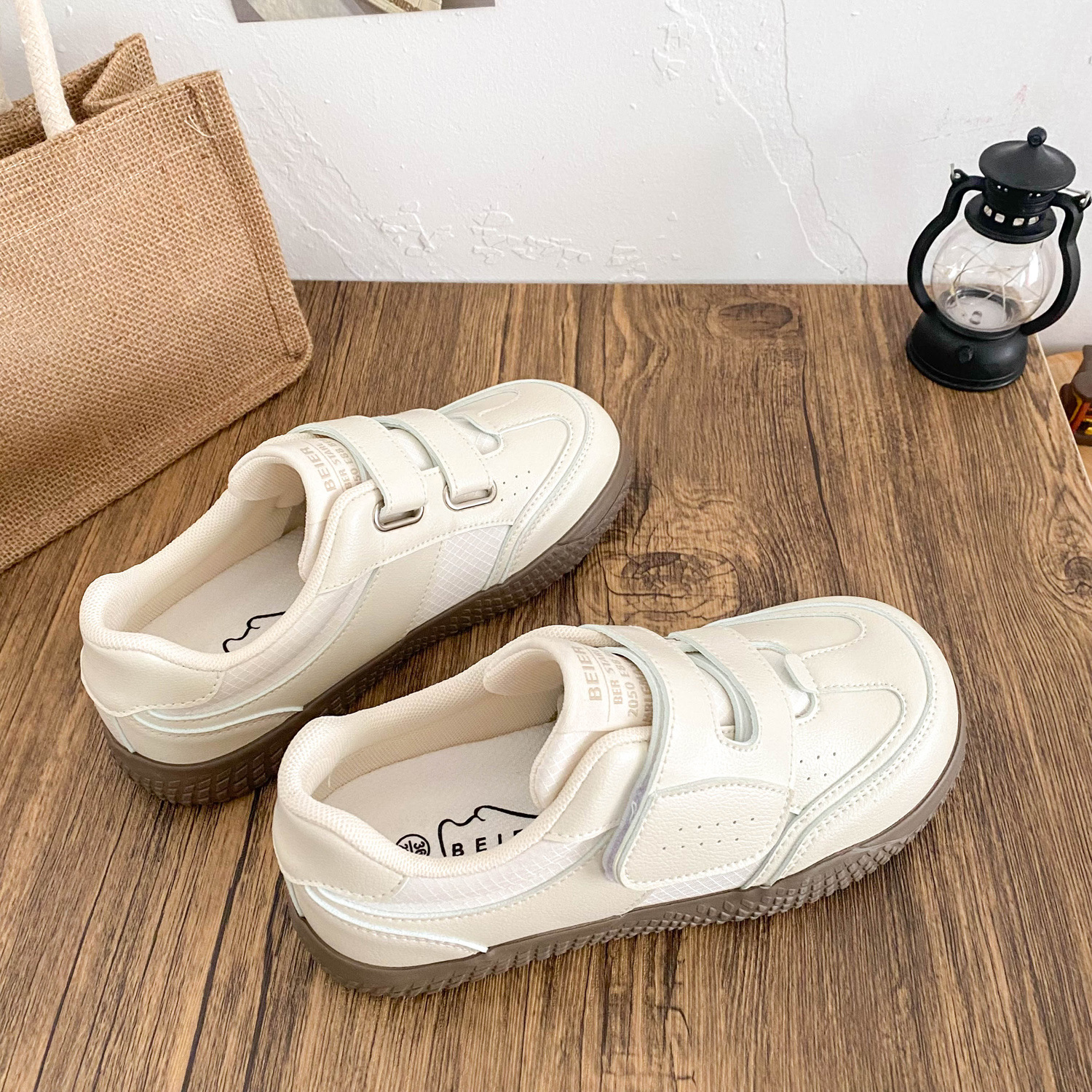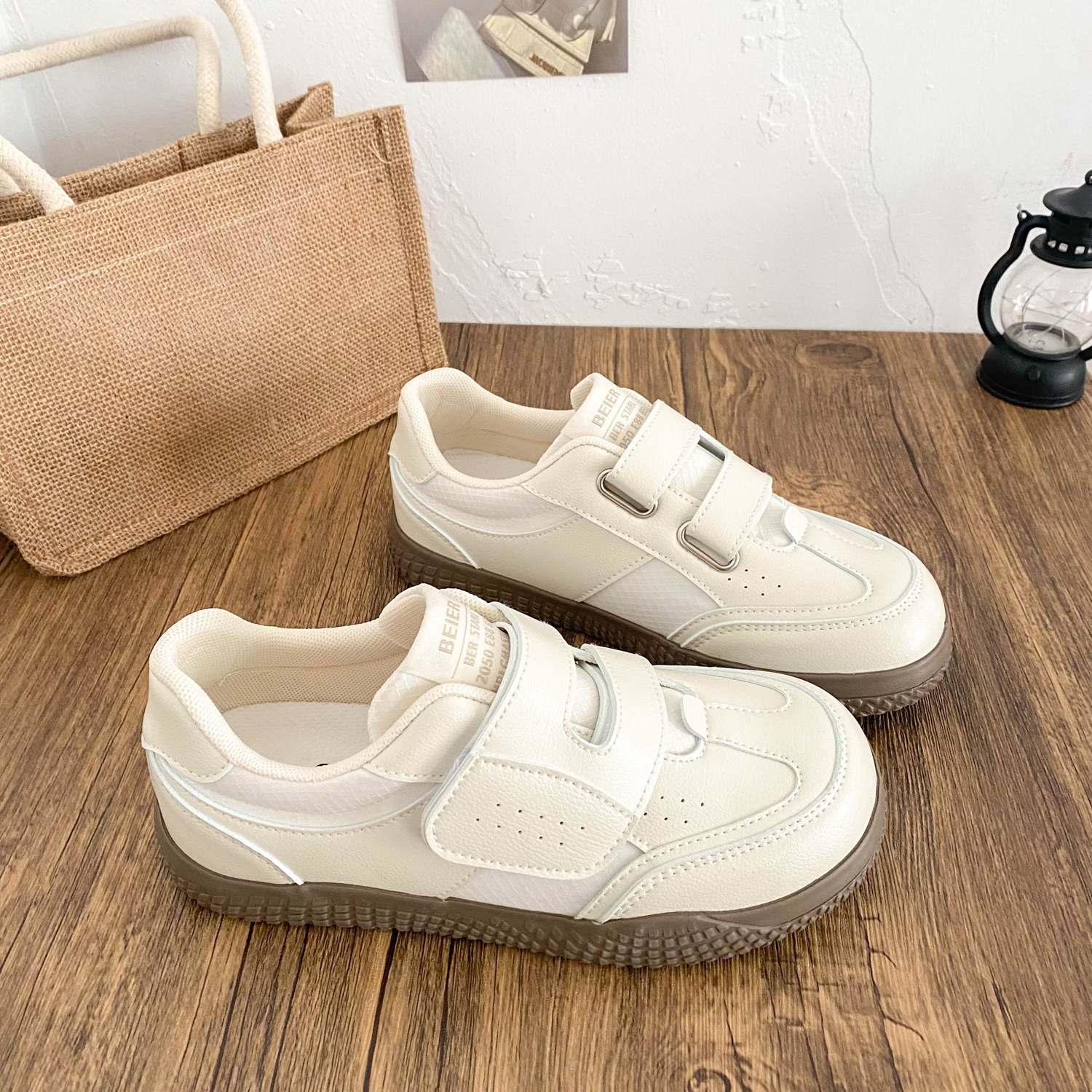 BE-6829 латексная стелька/cro, белые туфли на толстой подошве на липучке, женская обувь, новинка весны 2021, кожаные повседневные кроссовки