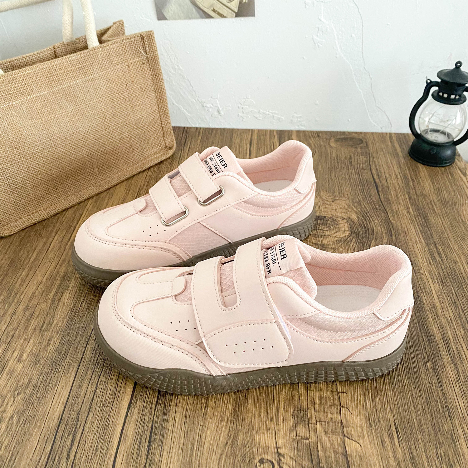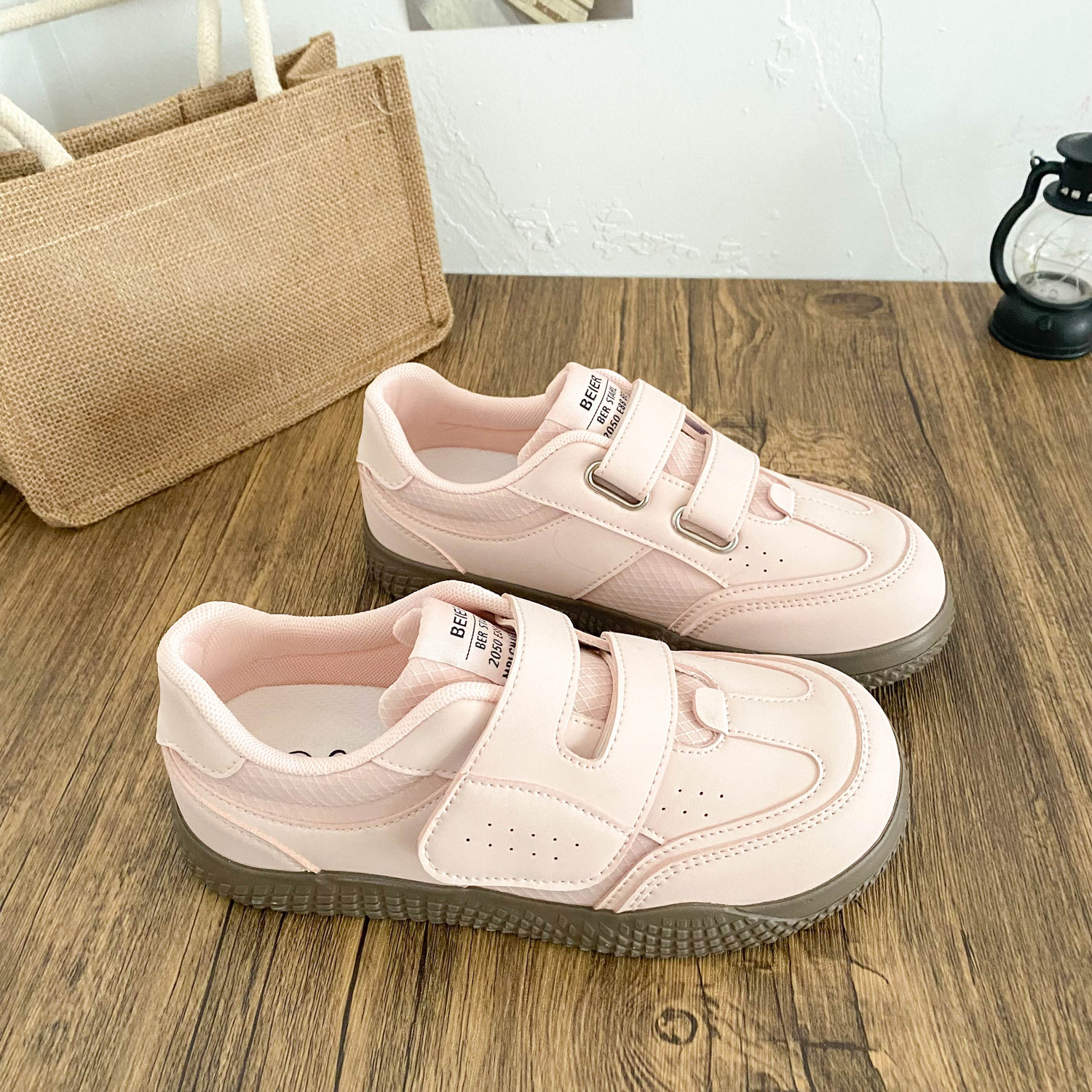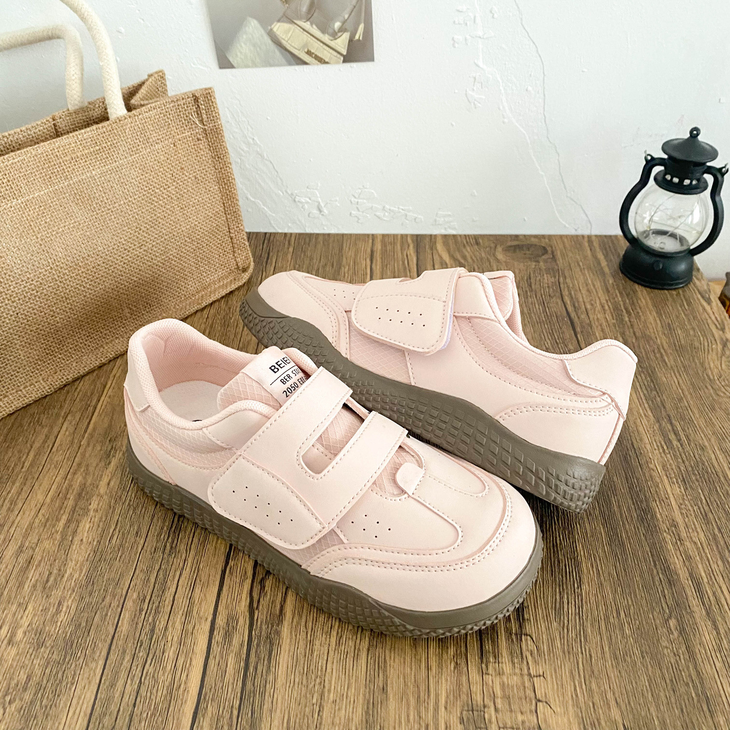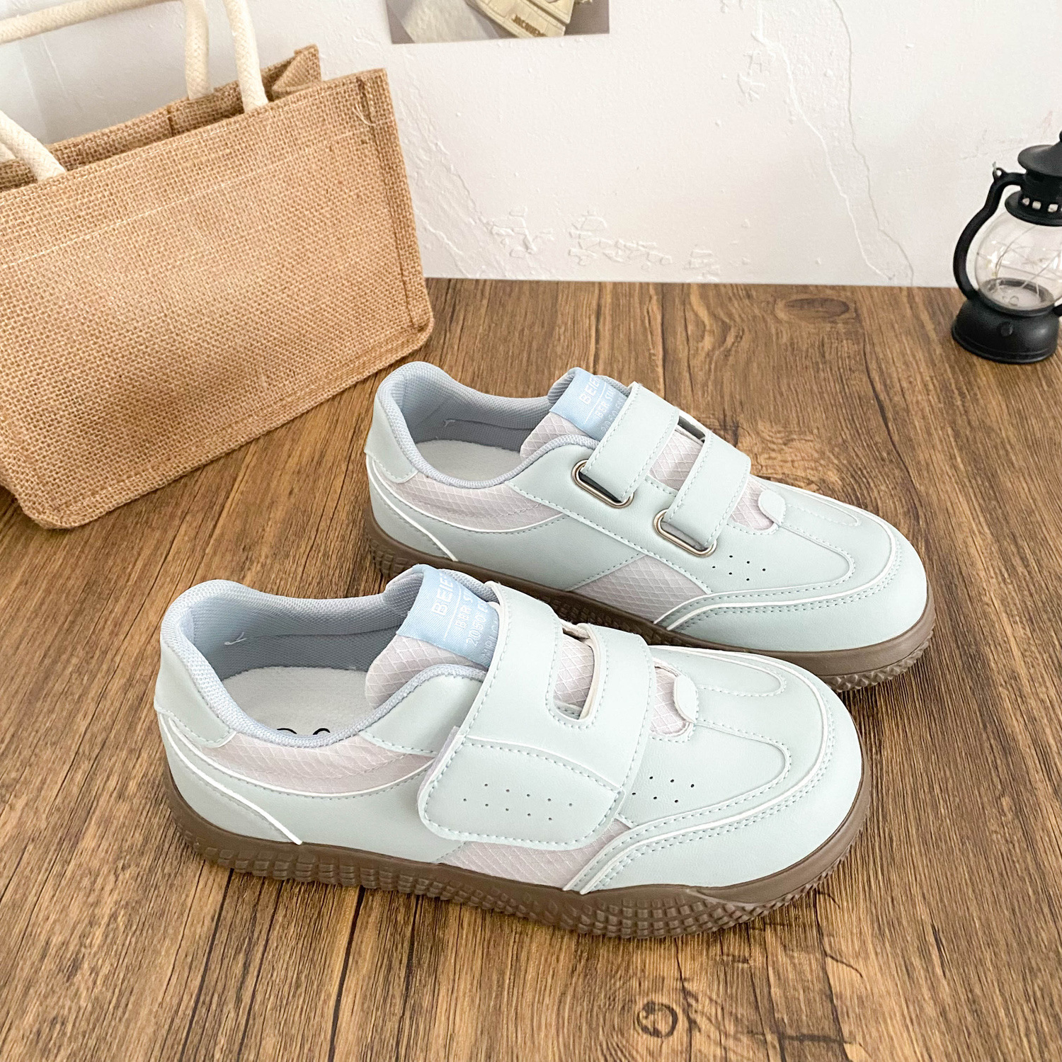 BE-6829 латексная стелька/cro, белые туфли на толстой подошве на липучке, женская обувь, новинка весны 2021, кожаные повседневные кроссовки