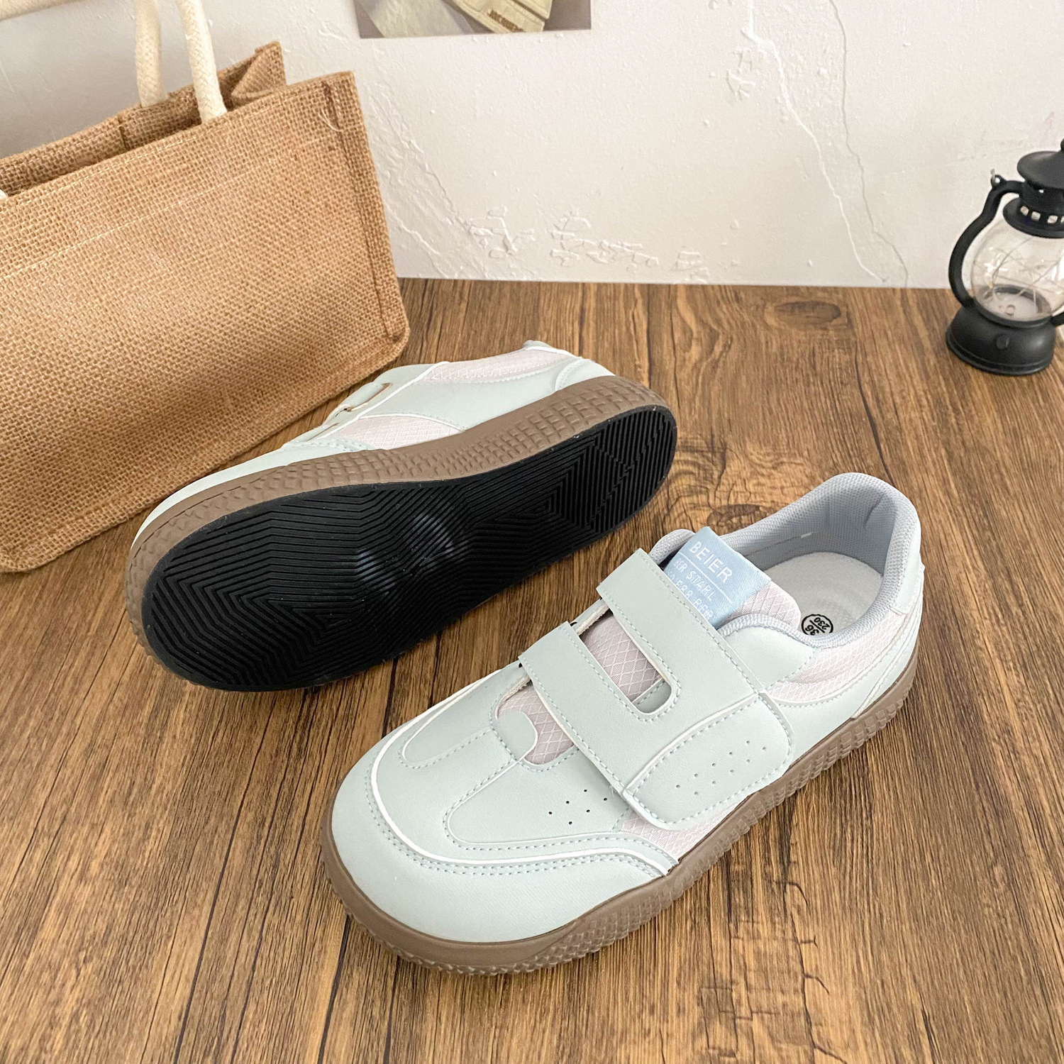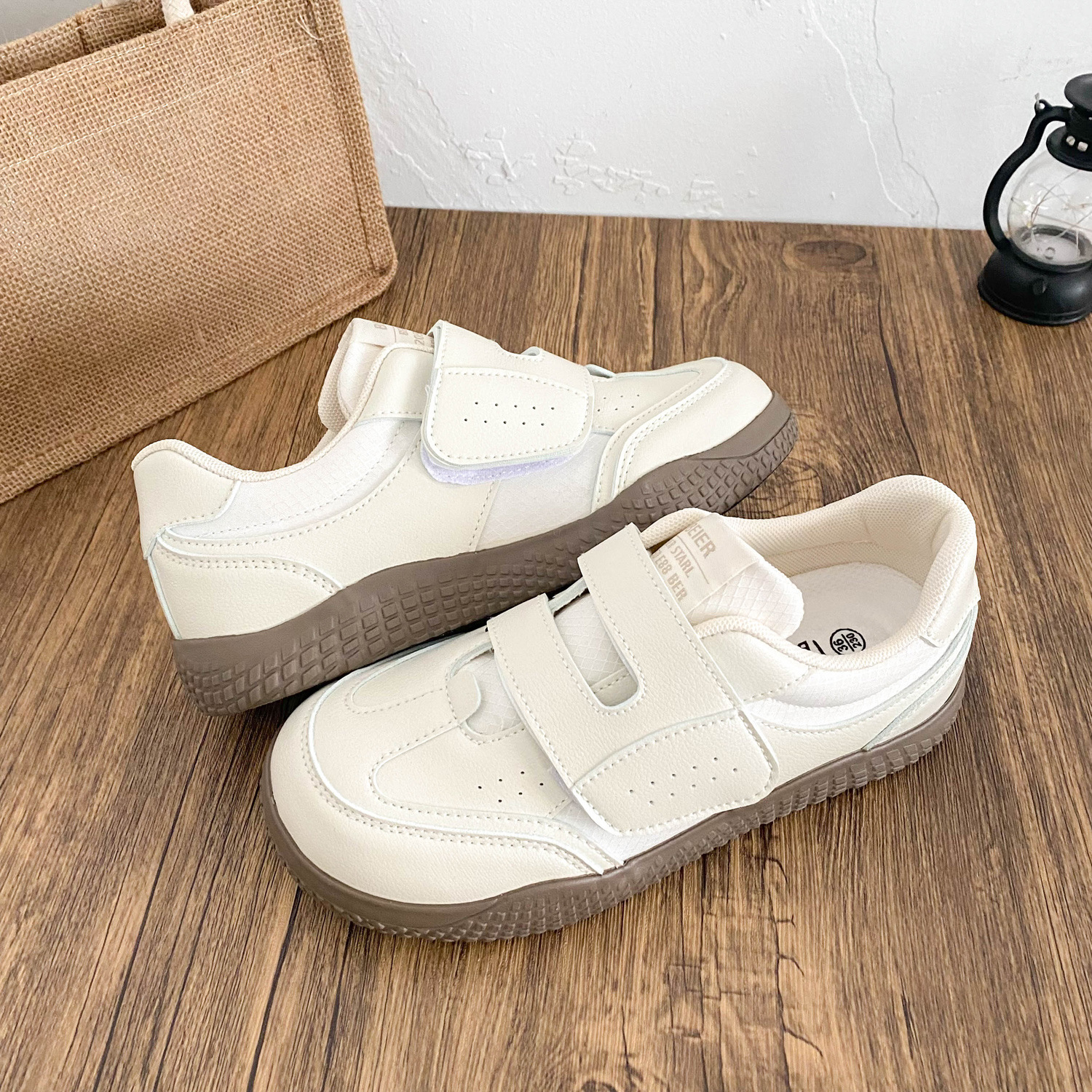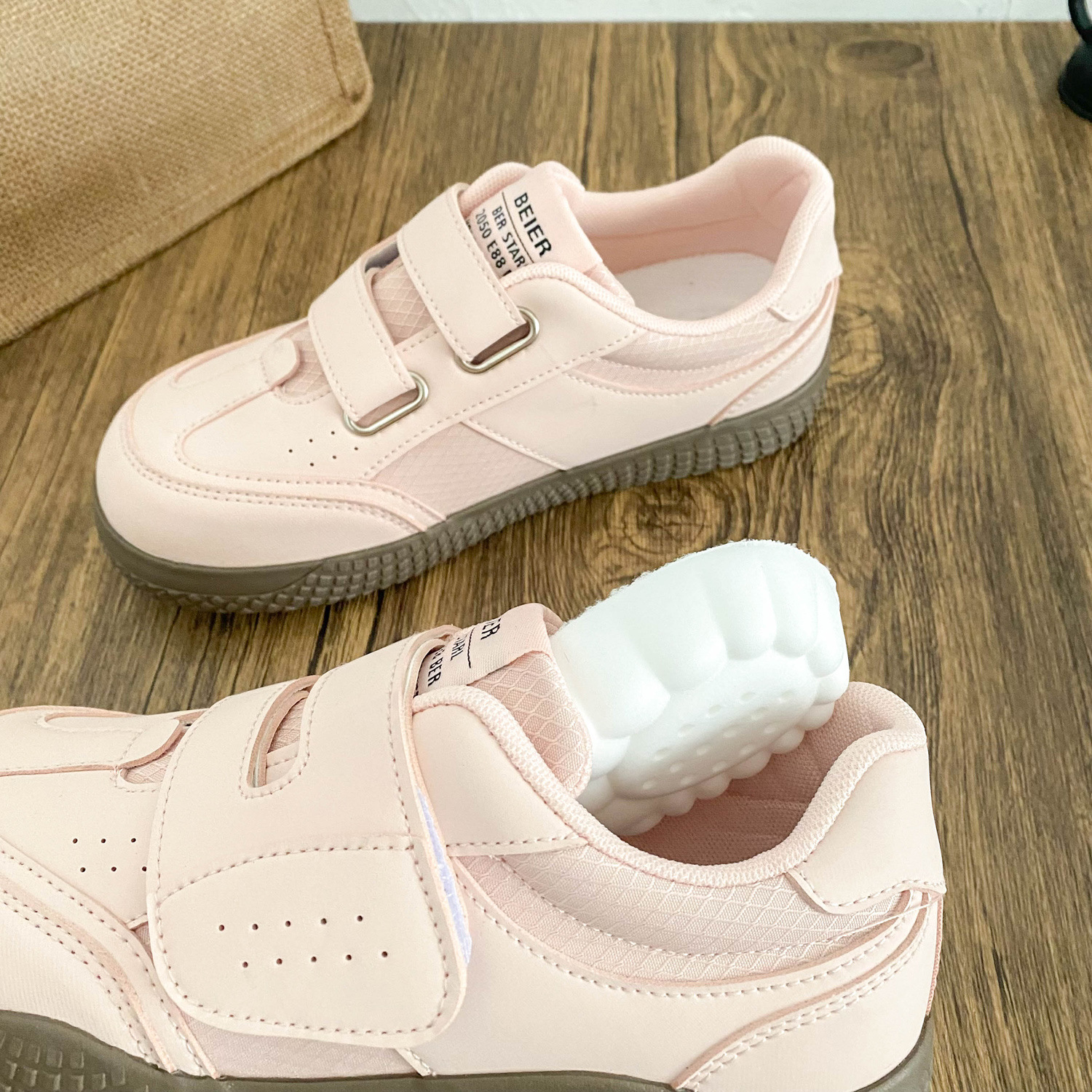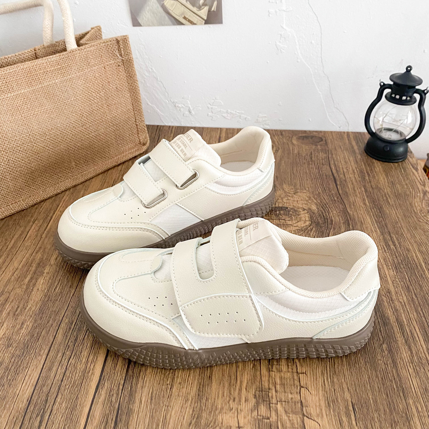 BE-6829 латексная стелька/cro, белые туфли на толстой подошве на липучке, женская обувь, новинка весны 2021, кожаные повседневные кроссовки