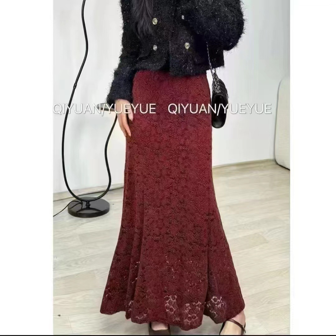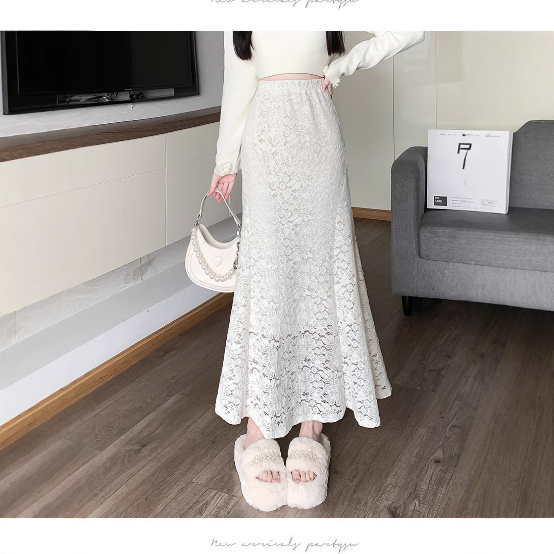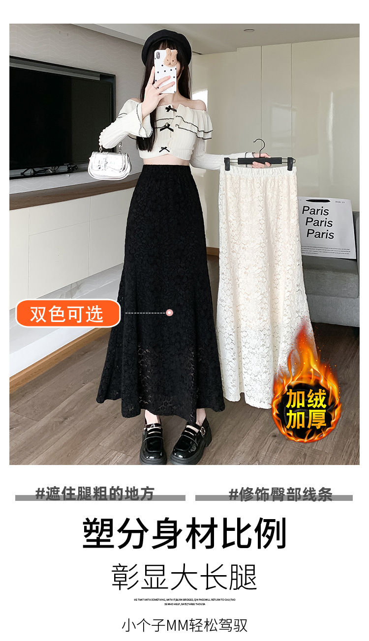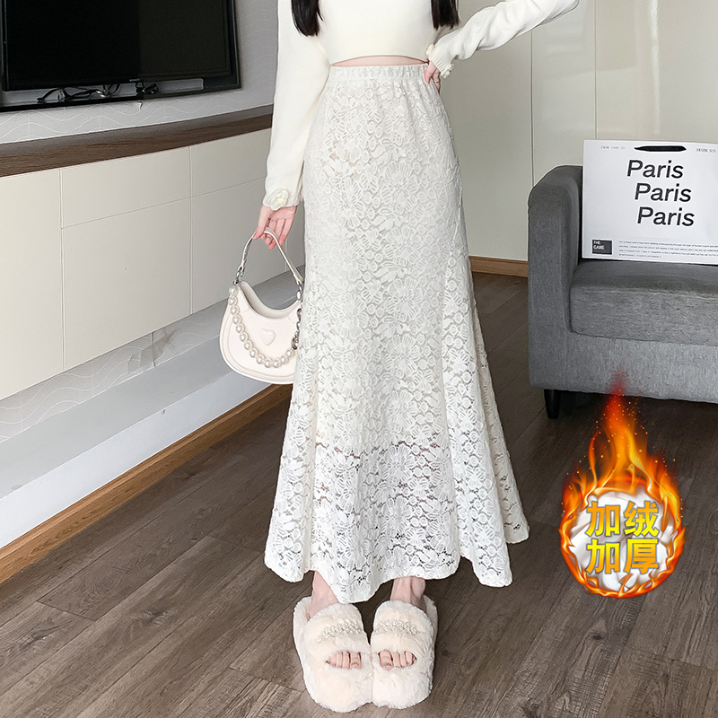 Осенняя и зимняя новая кружевная юбка с рыбьим хвостом Юбка с плюшевой талией, тонкая средняя и длинная юбка с одним шагом