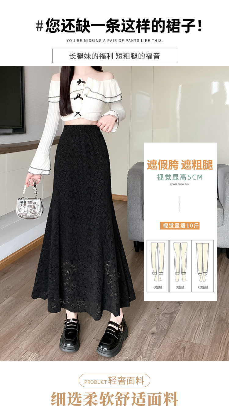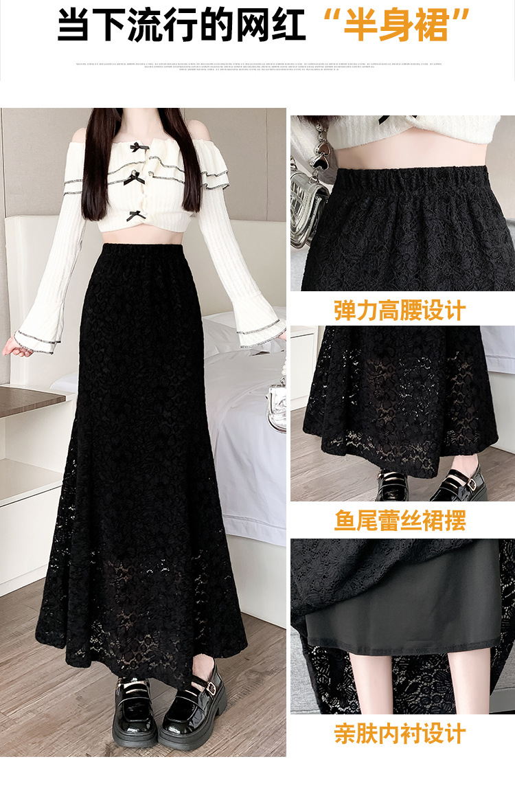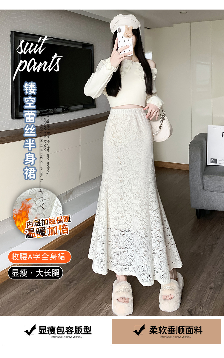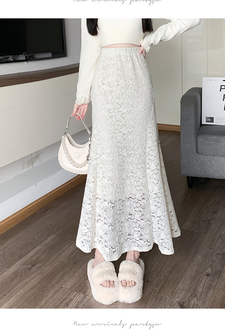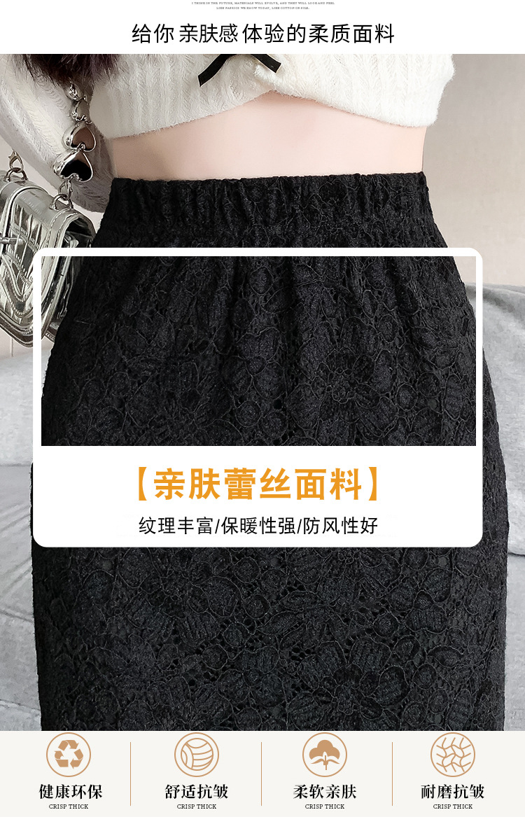 Осенняя и зимняя новая кружевная юбка с рыбьим хвостом Юбка с плюшевой талией, тонкая средняя и длинная юбка с одним шагом