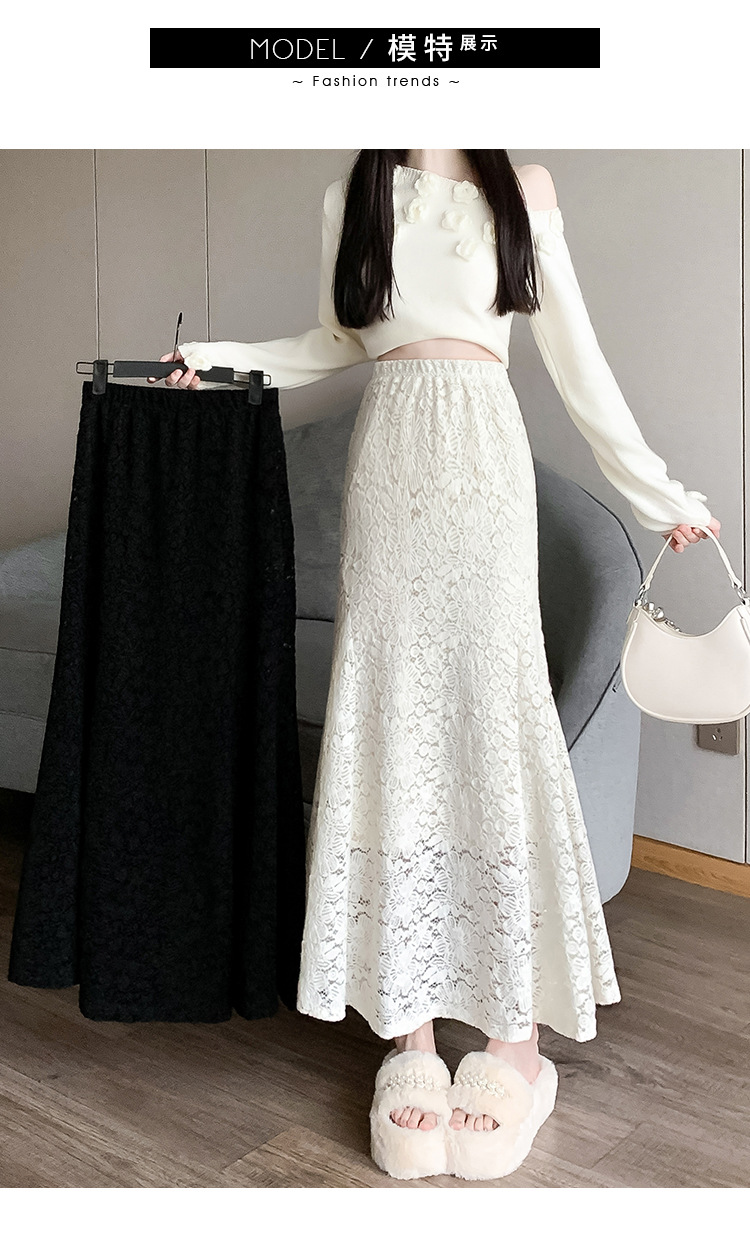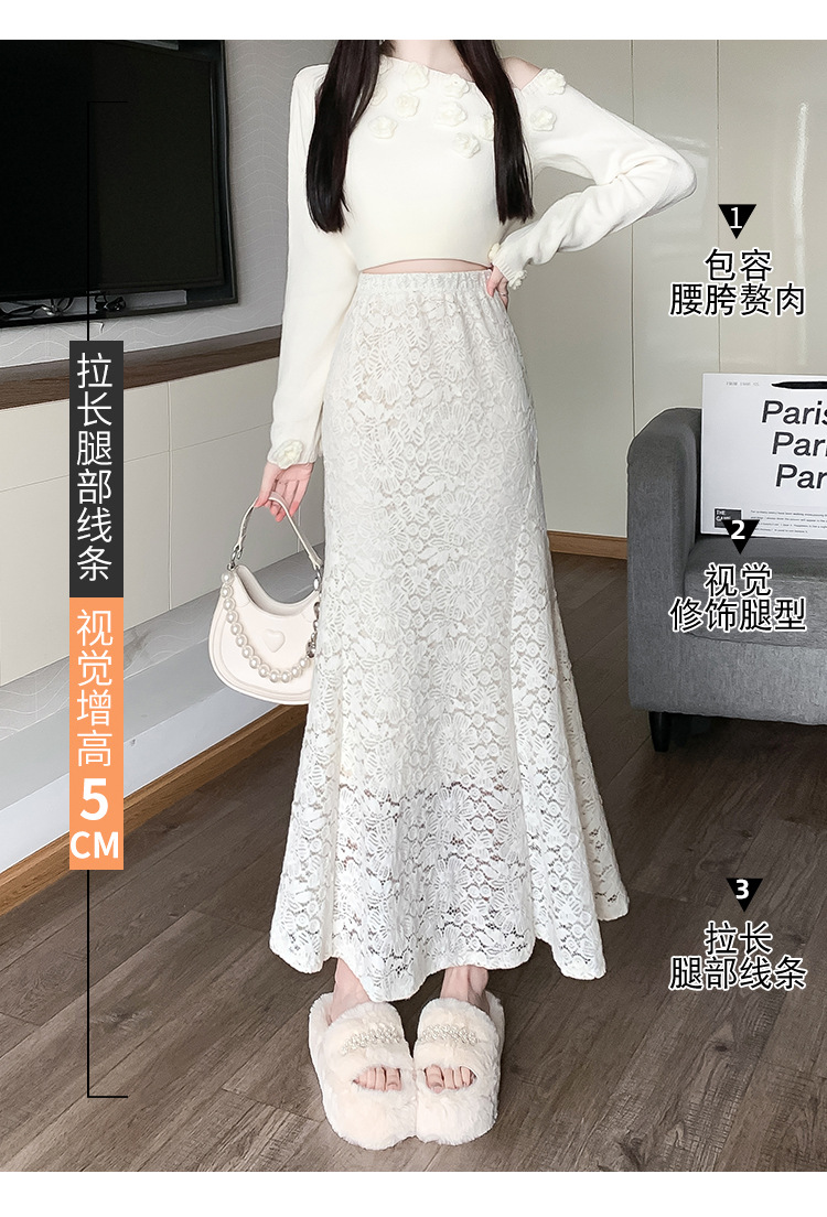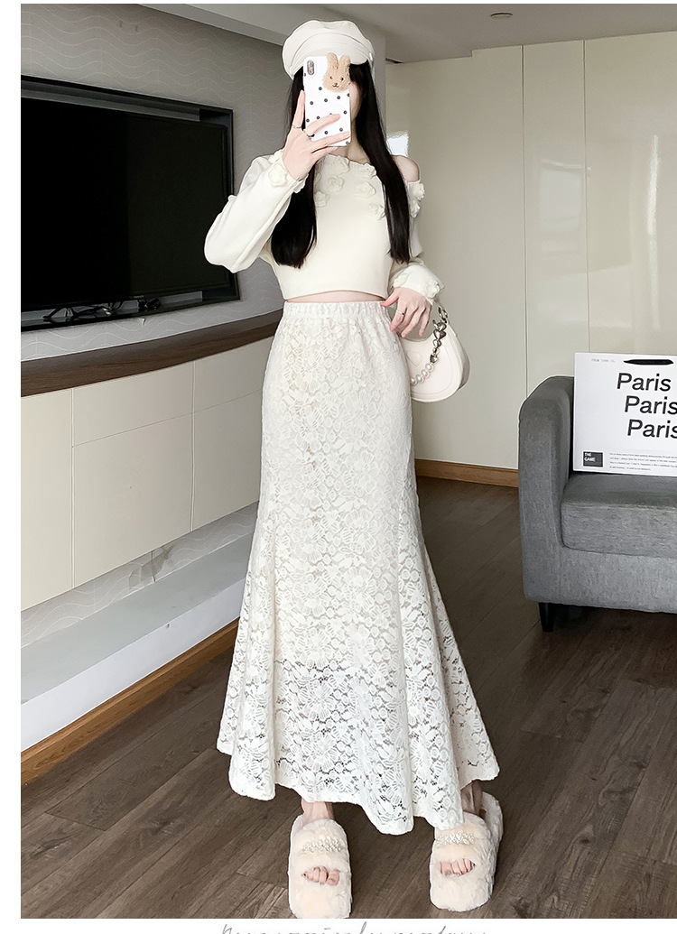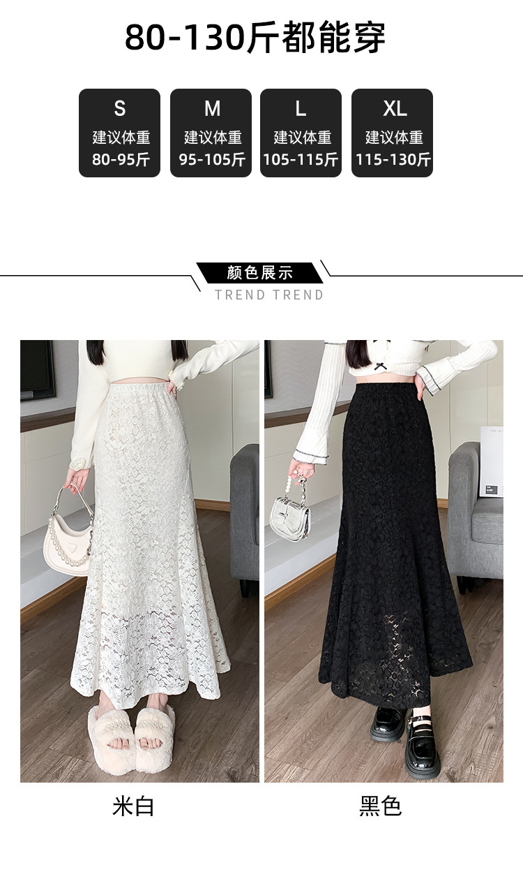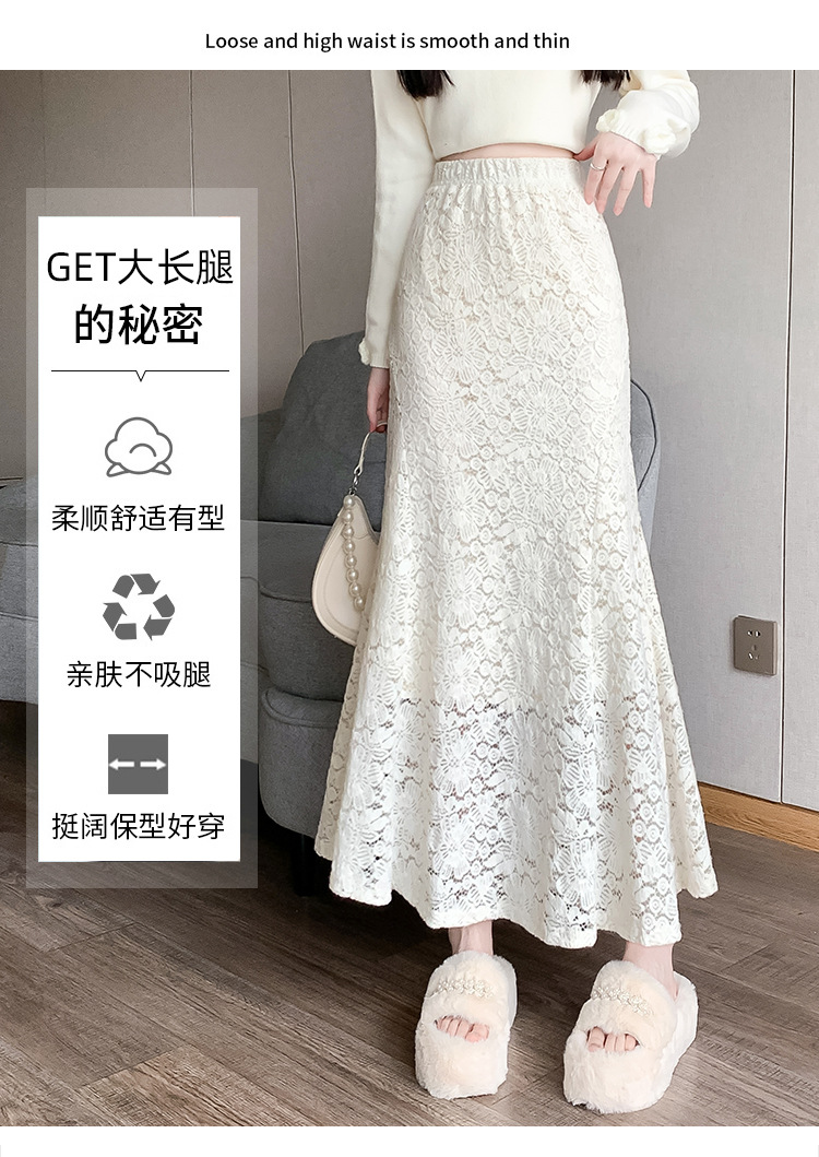 Осенняя и зимняя новая кружевная юбка с рыбьим хвостом Юбка с плюшевой талией, тонкая средняя и длинная юбка с одним шагом