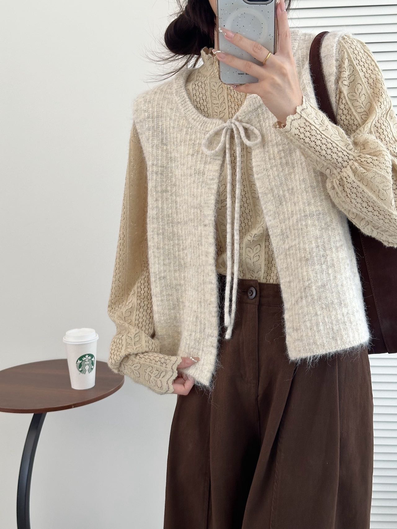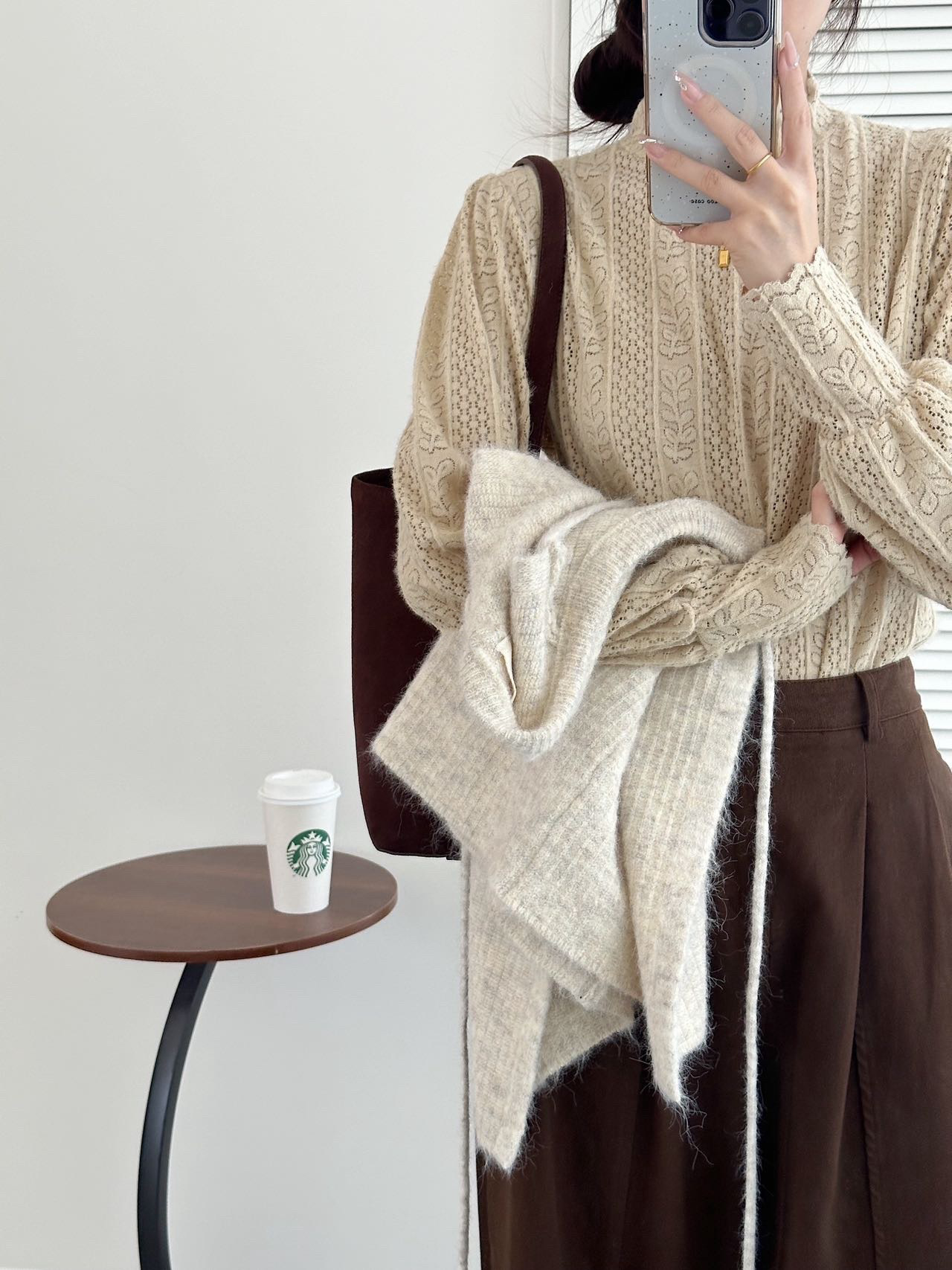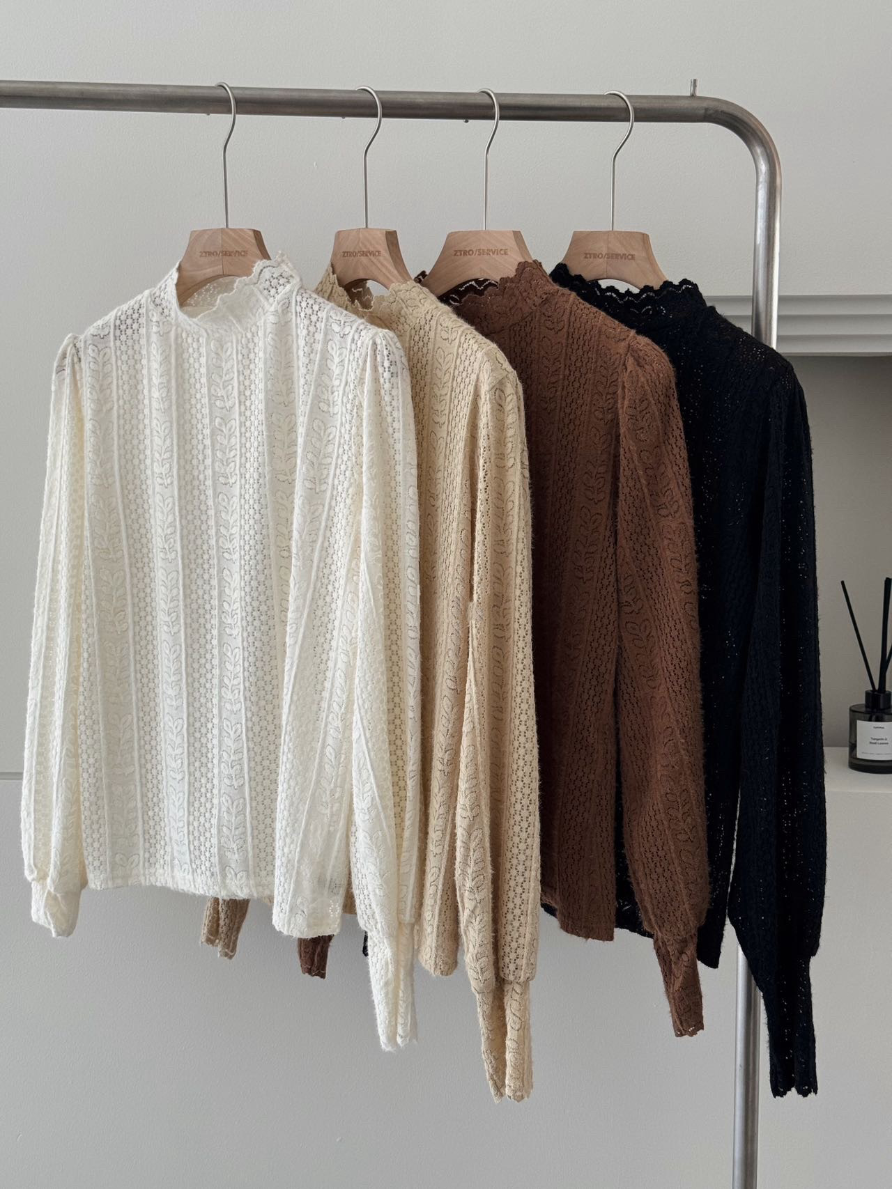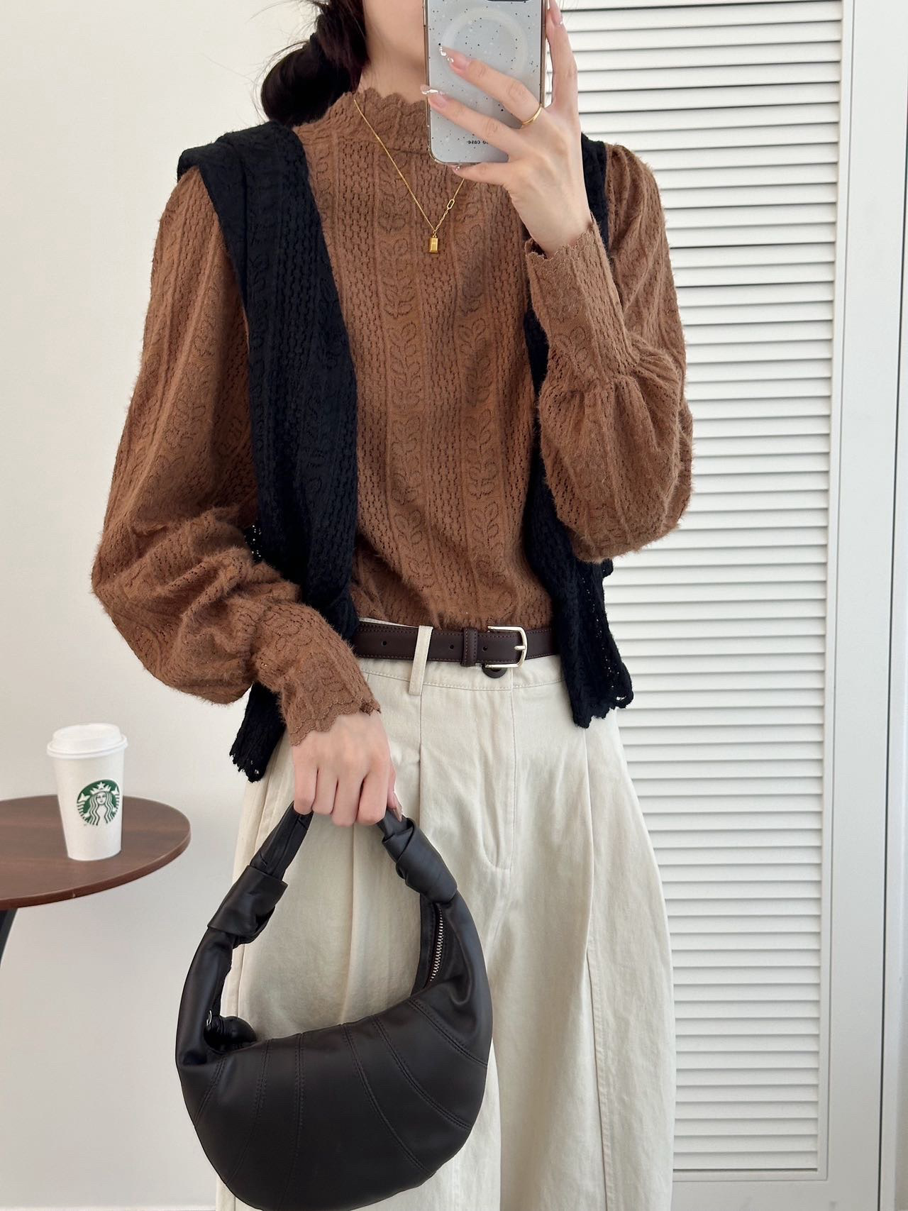 Красота перевернула женскую французскую кружевную нижнюю рубашку с полувысоким воротником с кружевным воротником элегантный дикий топ с длинными рукавами осенью и зимой