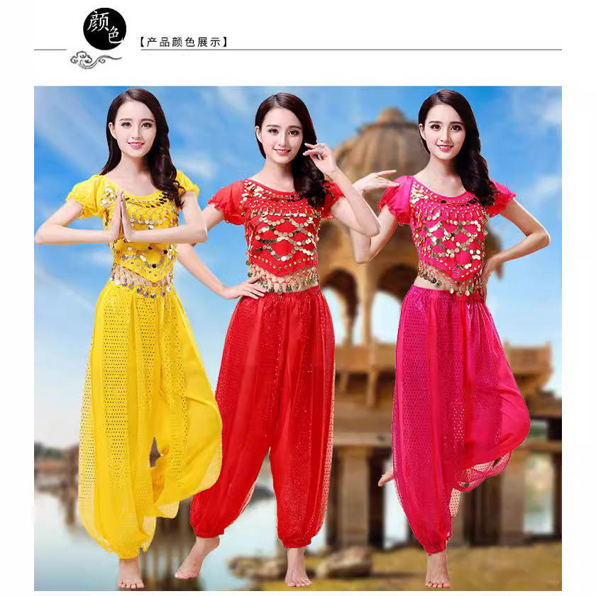 Новый индийский танцевальный костюм костюм для танца живота брюки с короткими рукавами танцевальный костюм для сценических танцевальных костюмов,