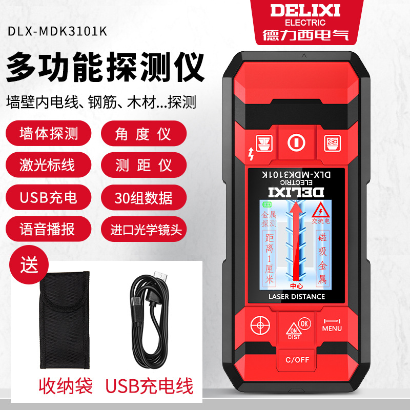 Многофункциональный детектор стен Delixi измеряет железобетонные провода, смешанные почвы, несущие стены, перспективные измерения темной линии металла