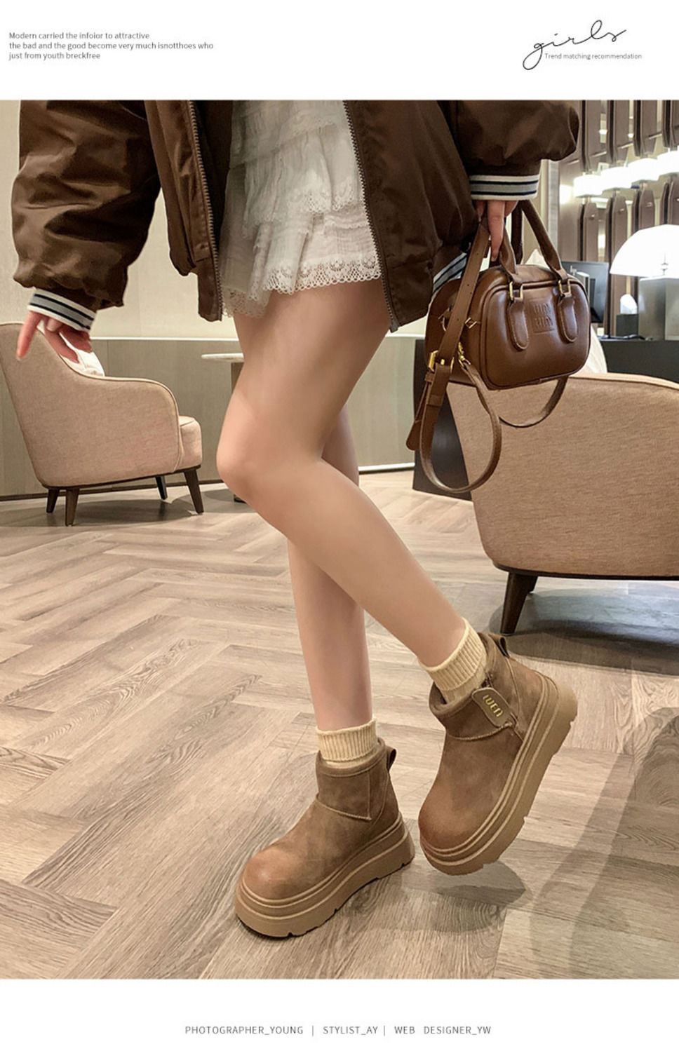 Женские зимние ботинки на толстой подошве, новинка 2025 года, зимние новые водонепроницаемые утолщенные короткие ботинки из северо-восточного хлопка, нескользящие теплые короткие ботинки на флисовой подкладке