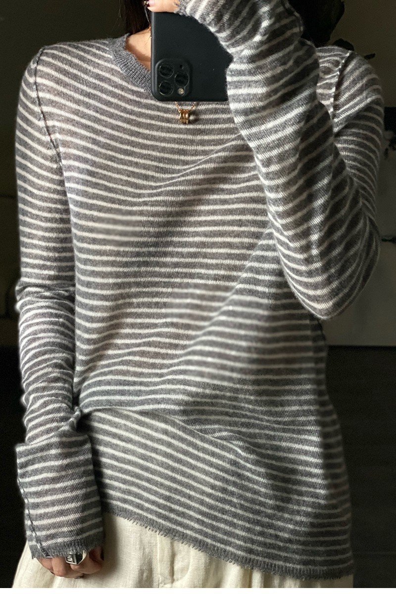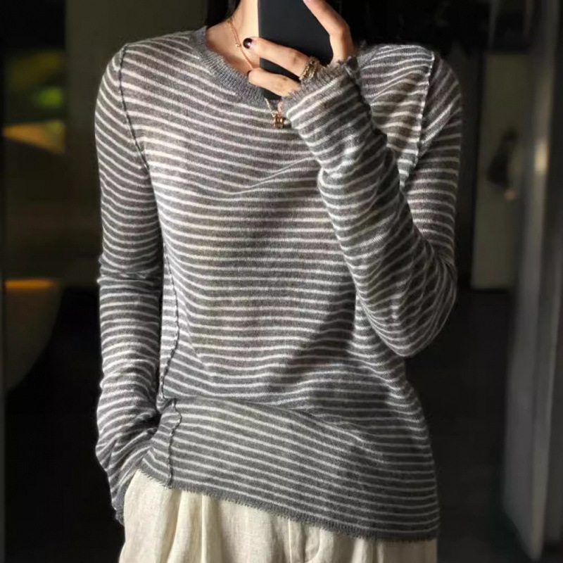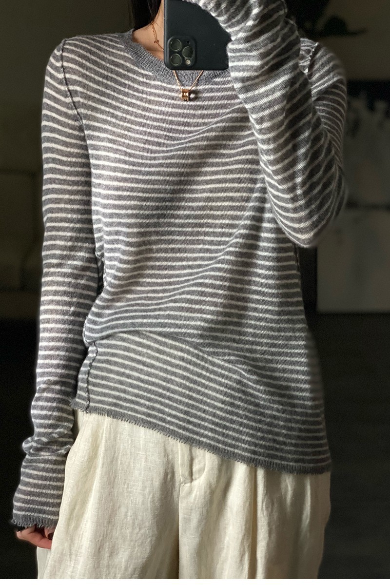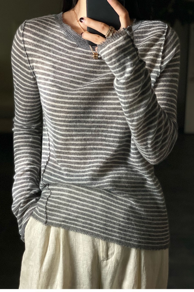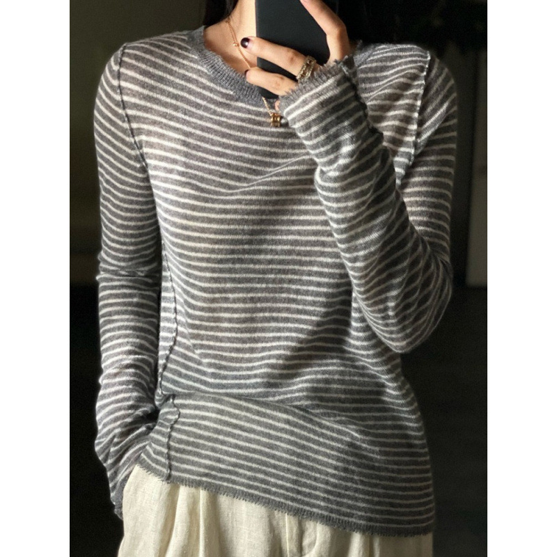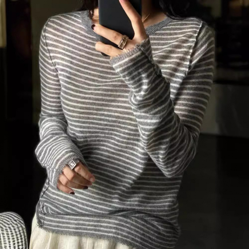 Ультратонкий шерстяной нижний свитер женский тонкий вязаный свитер женский свободный кашемировый свитер в полоску с джокером