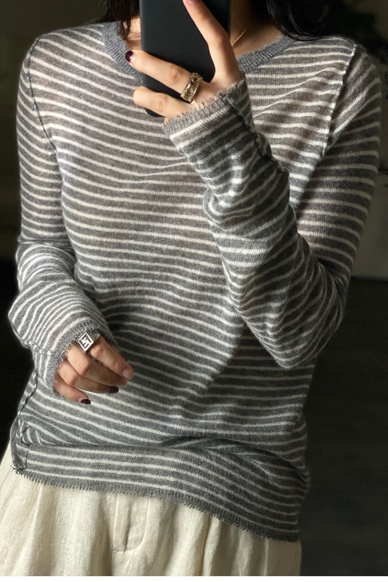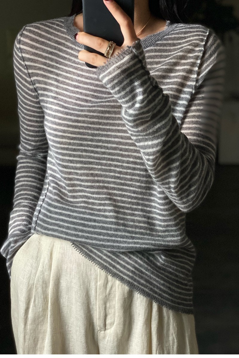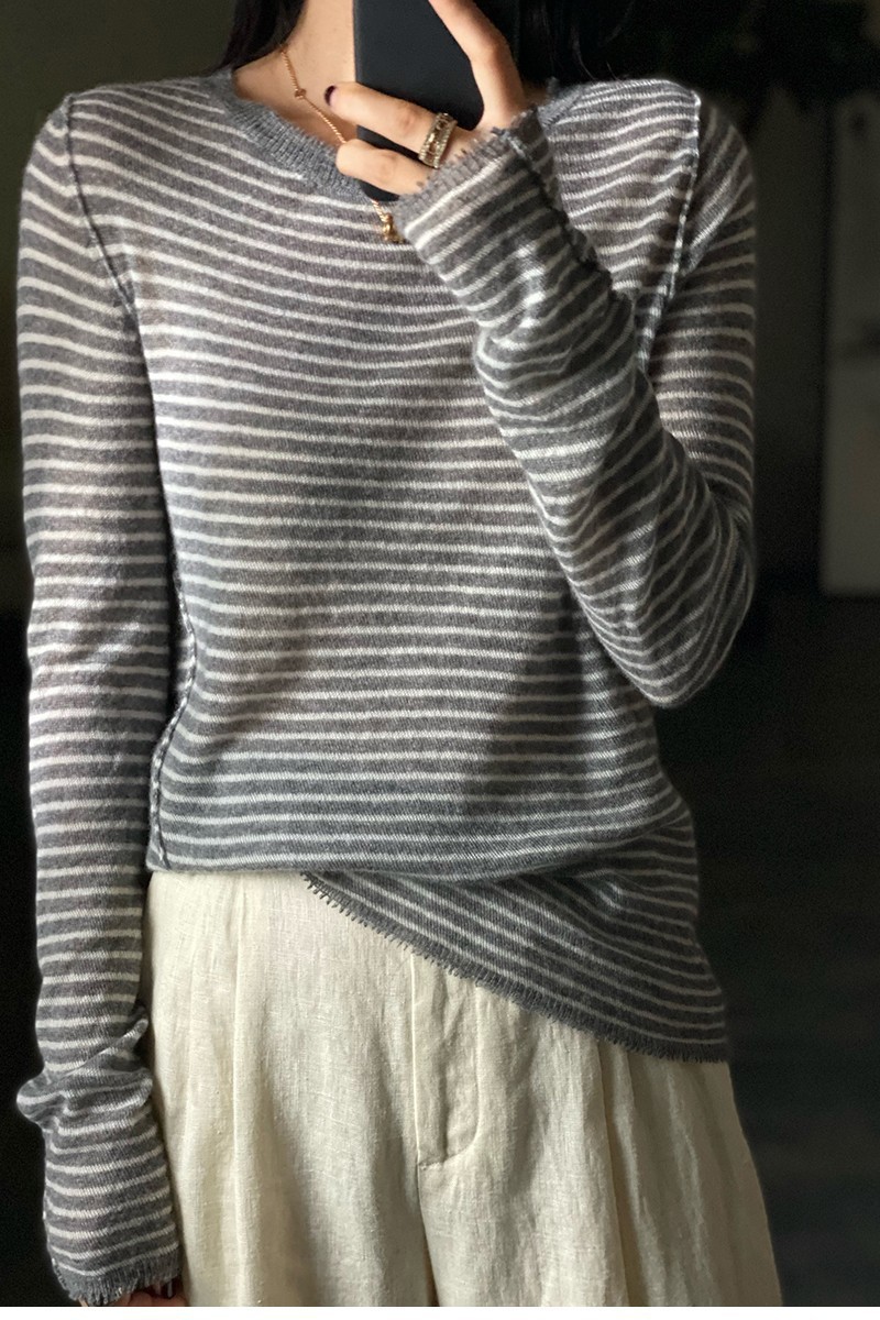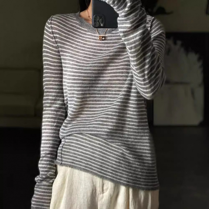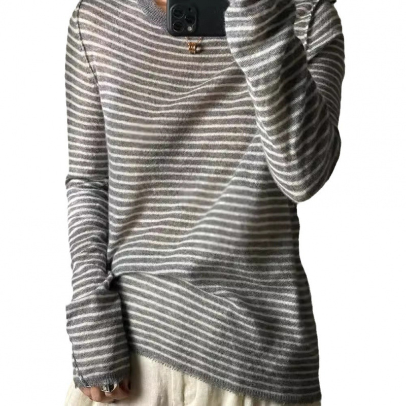 Ультратонкий шерстяной нижний свитер женский тонкий вязаный свитер женский свободный кашемировый свитер в полоску с джокером