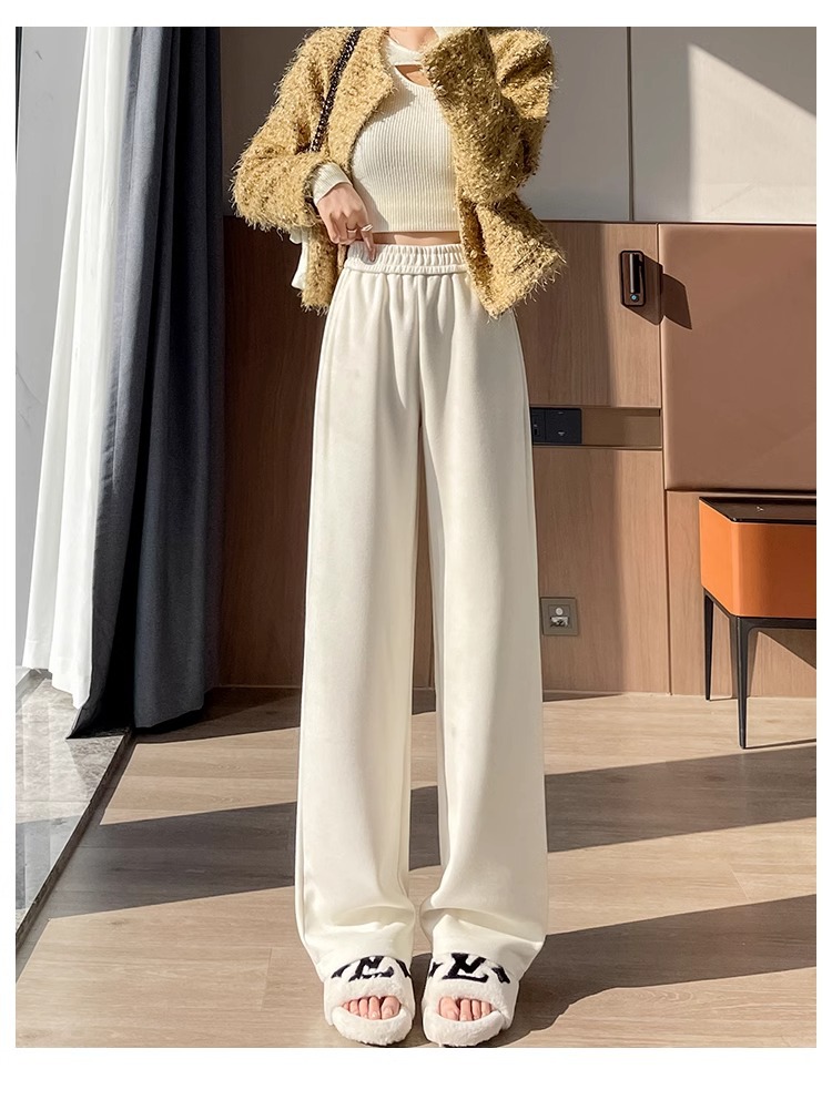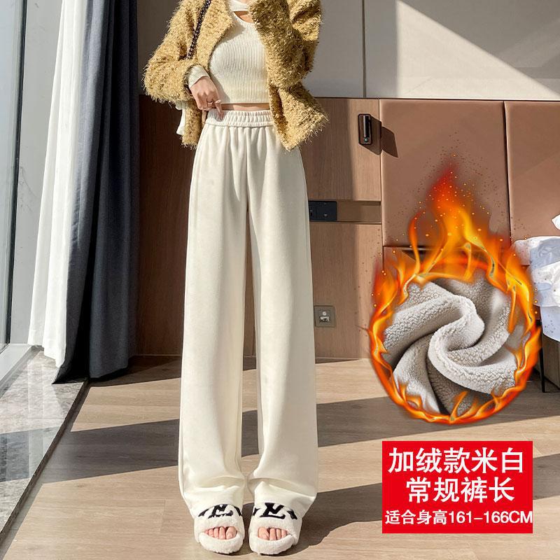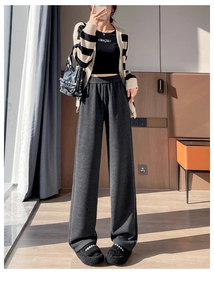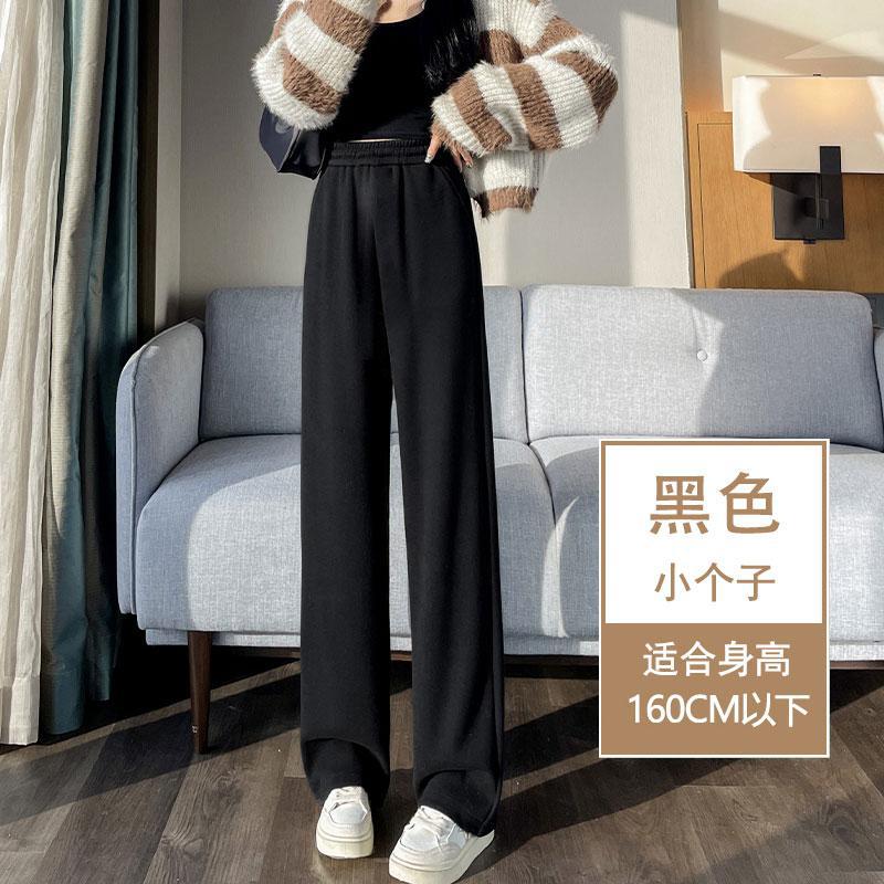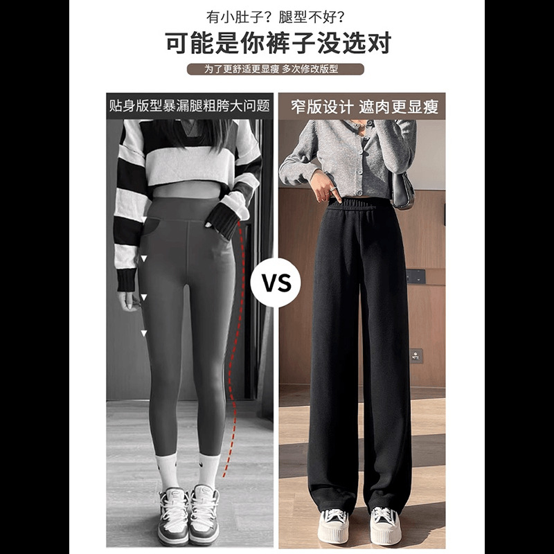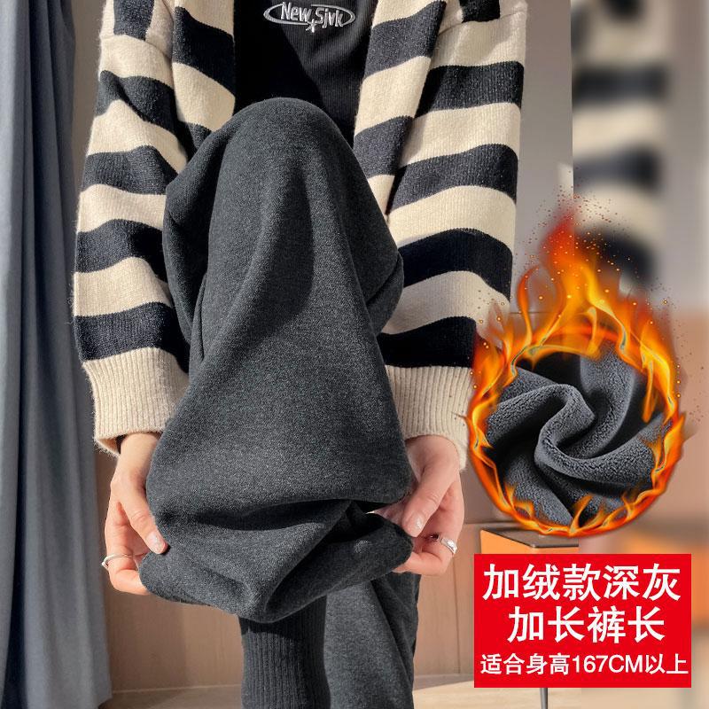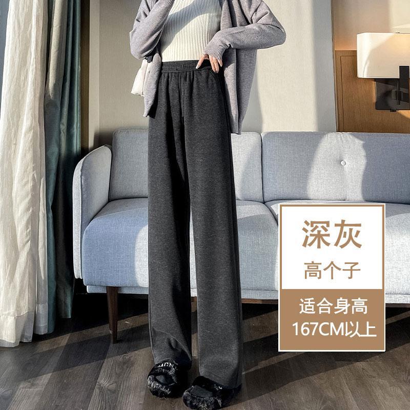 Темно-серые ацетатные шерстяные широкие брюки женские 2024 зимние новые бархатные узкие издания высокие осенние и зимние прямые брюки