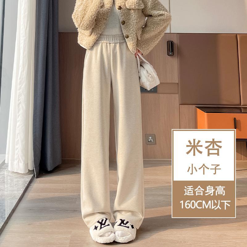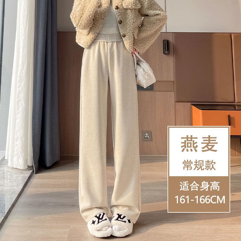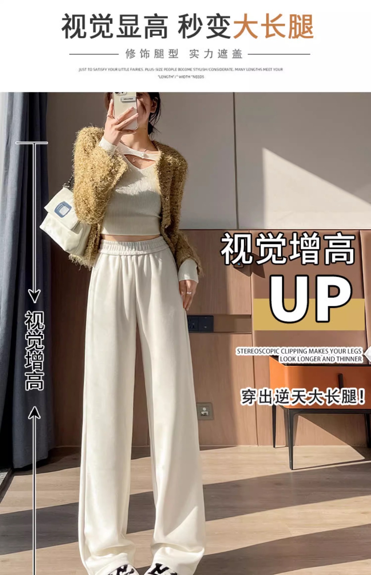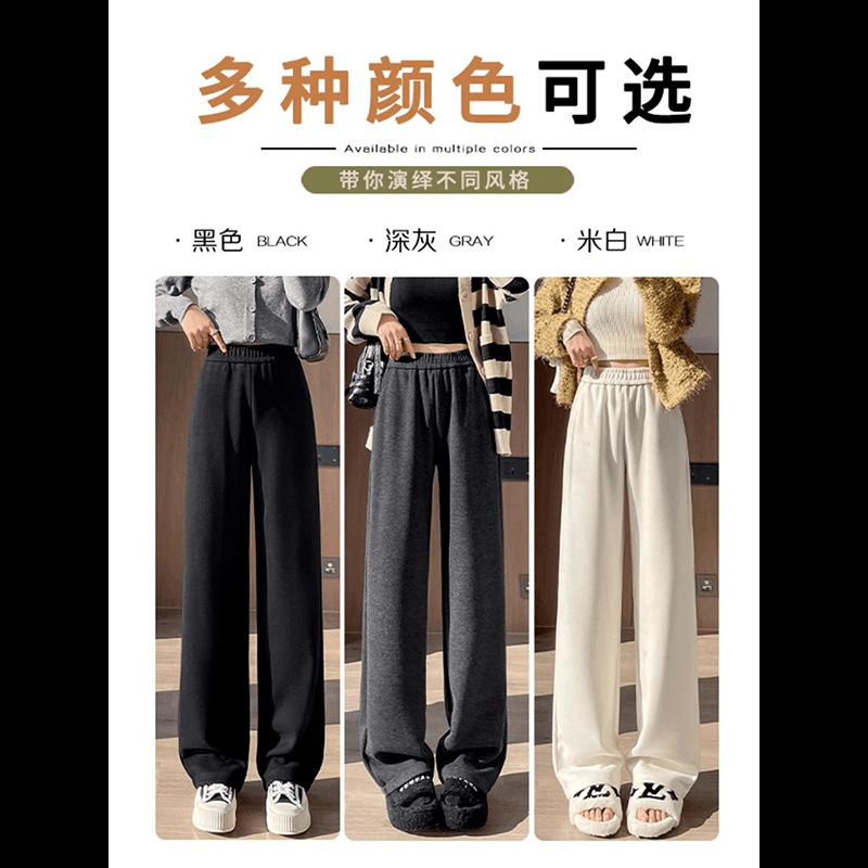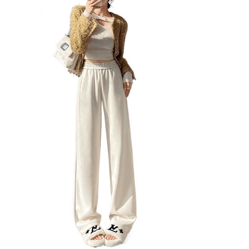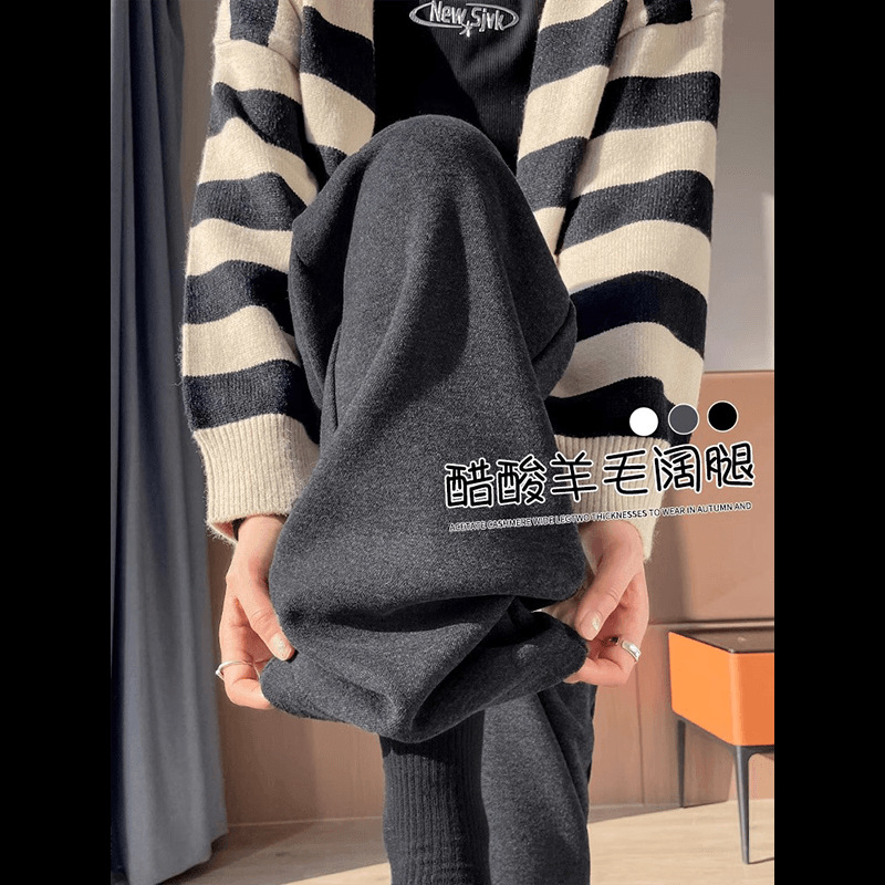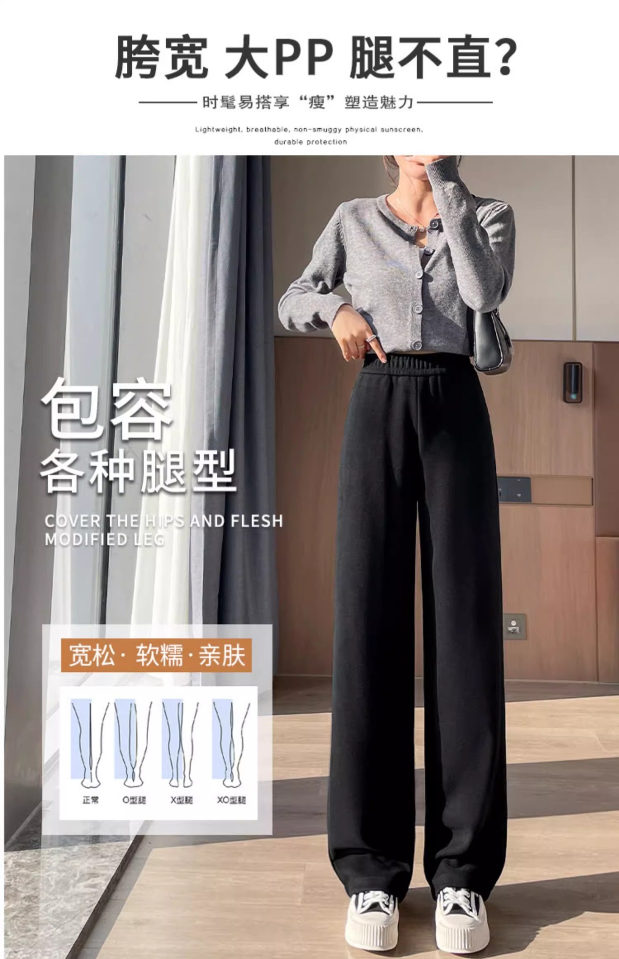 Темно-серые ацетатные шерстяные широкие брюки женские 2024 зимние новые бархатные узкие издания высокие осенние и зимние прямые брюки