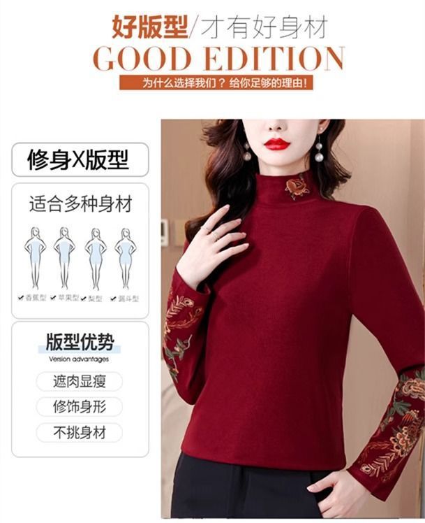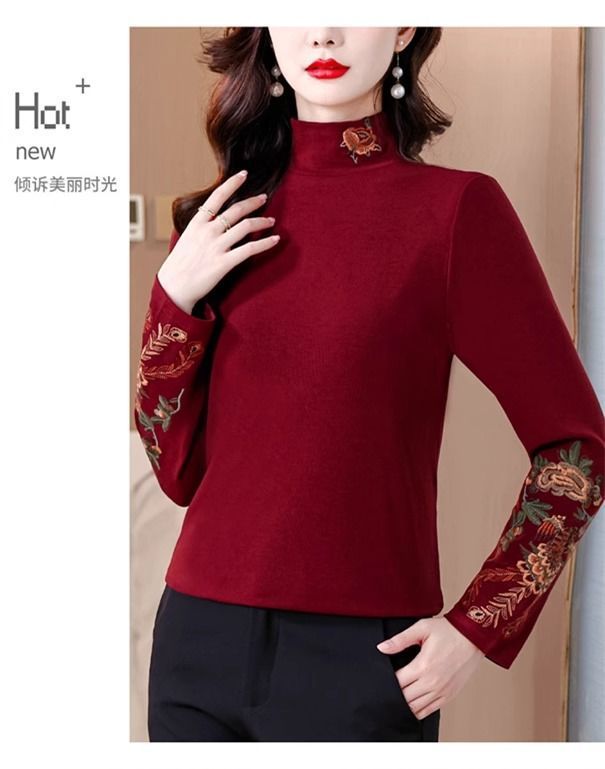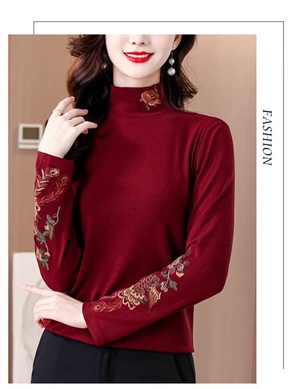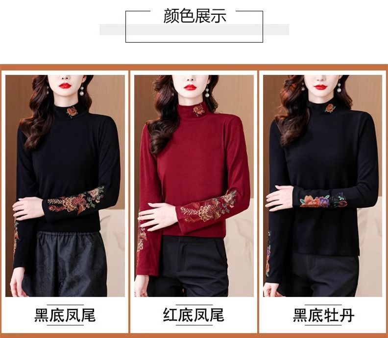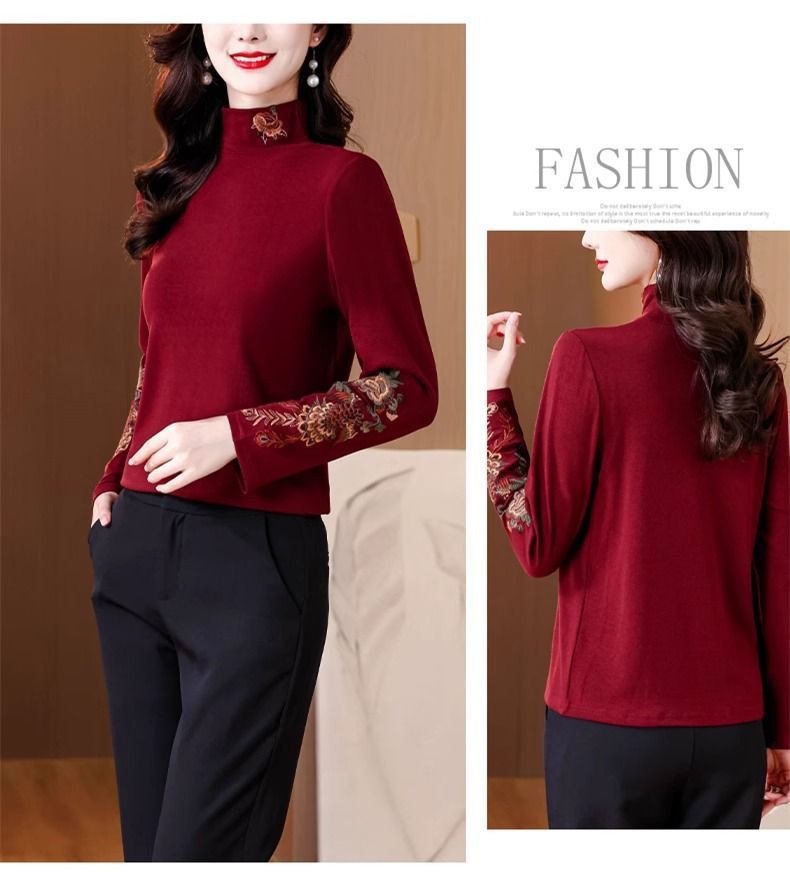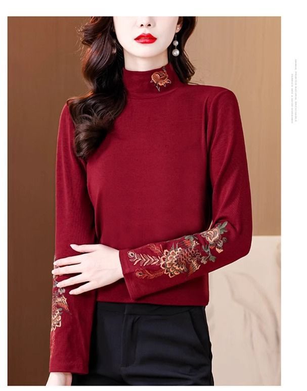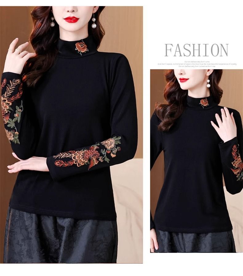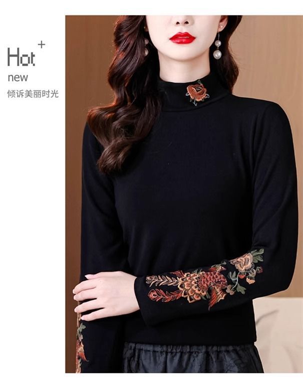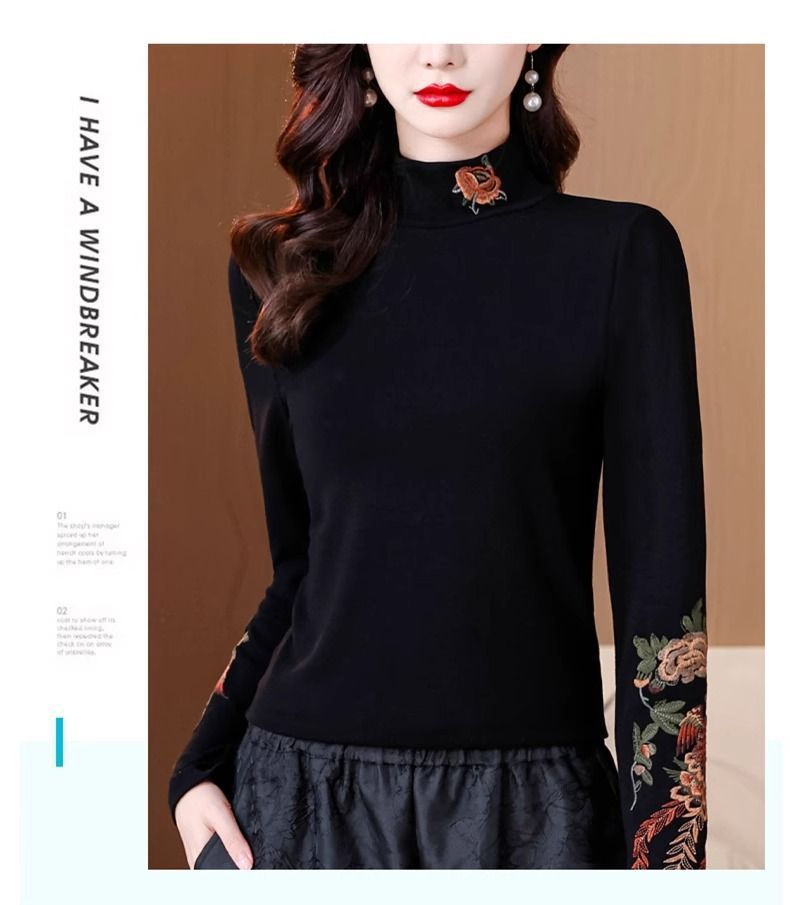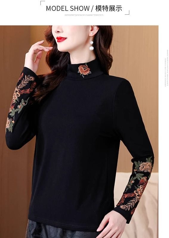 Вышивка осенне-зимний новый высокий воротник ретро теплый национальный Delong с длинными рукавами двухсторонняя футболка литературный нижний китайский топ