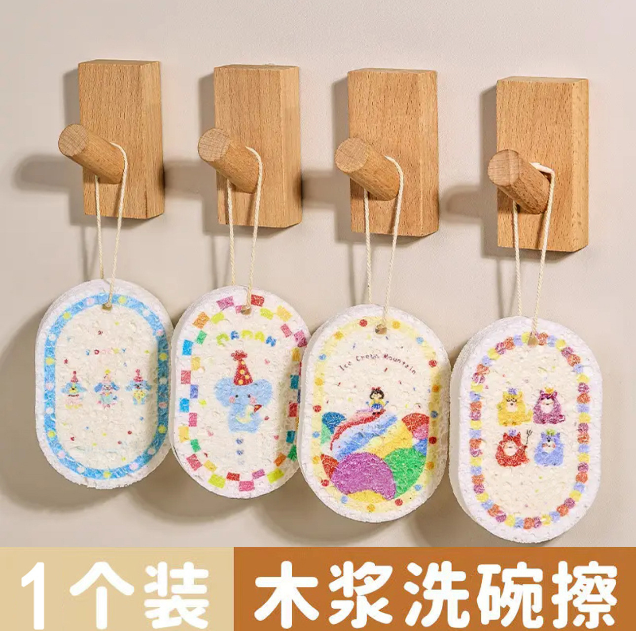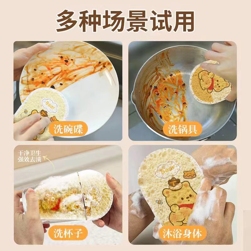 Мультяшная древесная паста хлопчатобумажная мойка без масла Кухонная мойка губчатая губка всасывающая вода становится большой мытье посуды