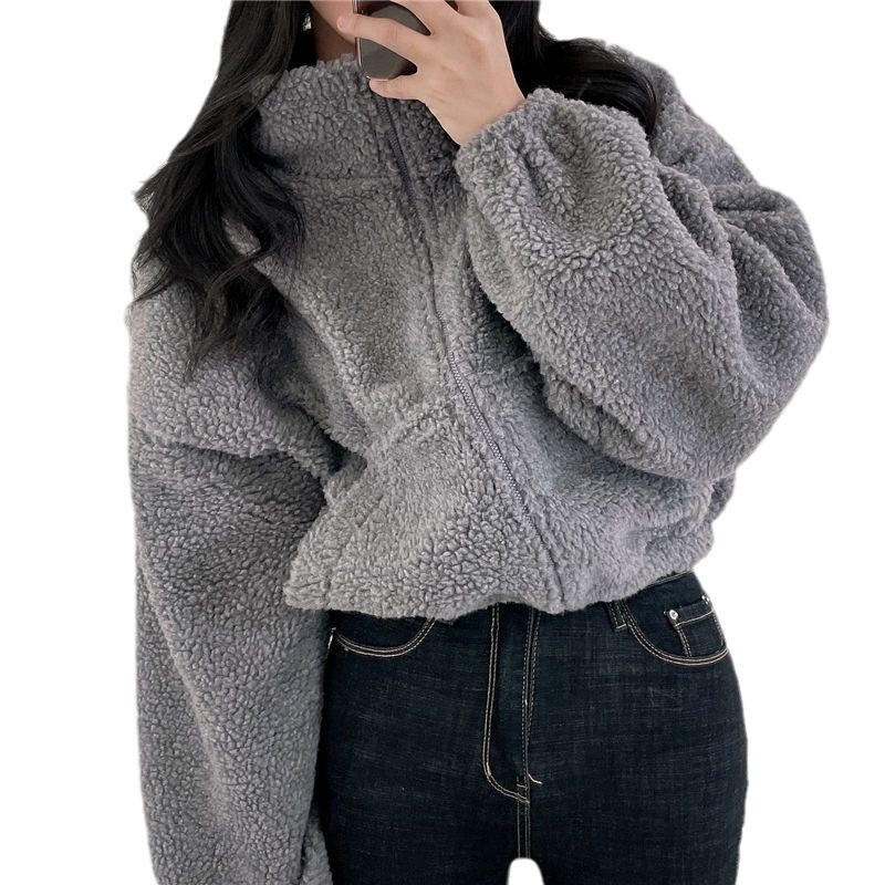 Корейский короткий воротник-стойка теплая имитация кашемировая куртка ягненка женская осень-зима новый свободный кардиган на молнии топ