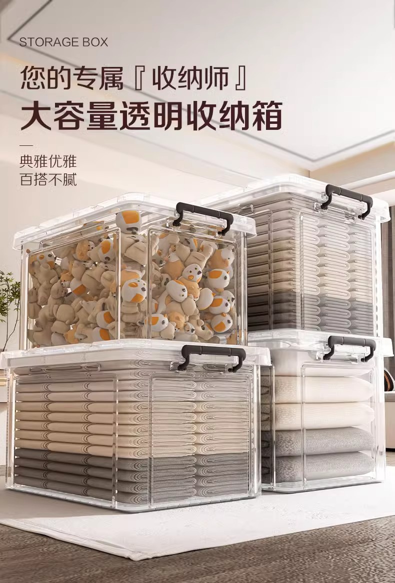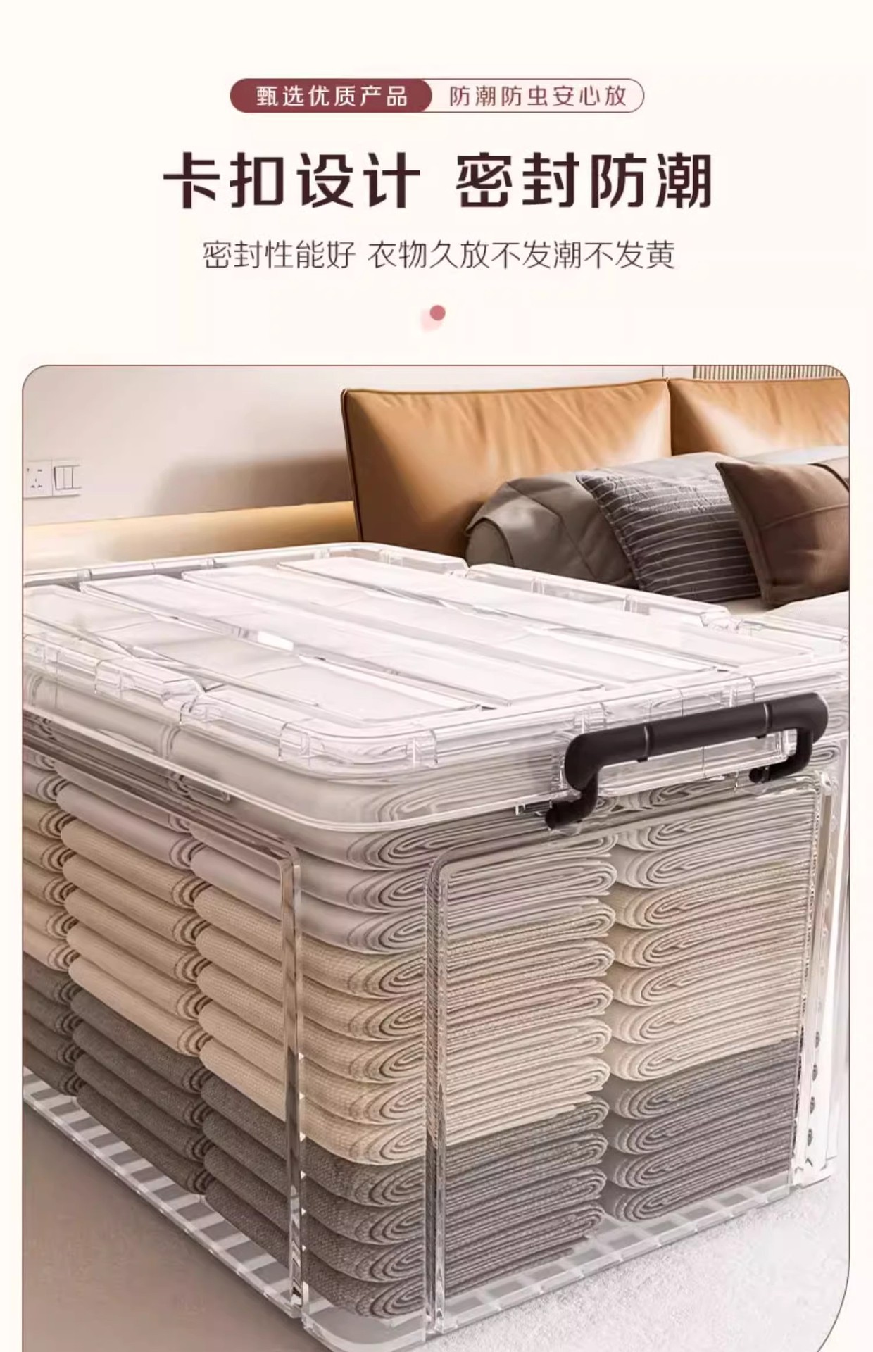 Прозрачный короб для хранения одежды, одеял, игрушек и других вещей в домашнем шкафу, большой вместимости, усиленный, с крышкой