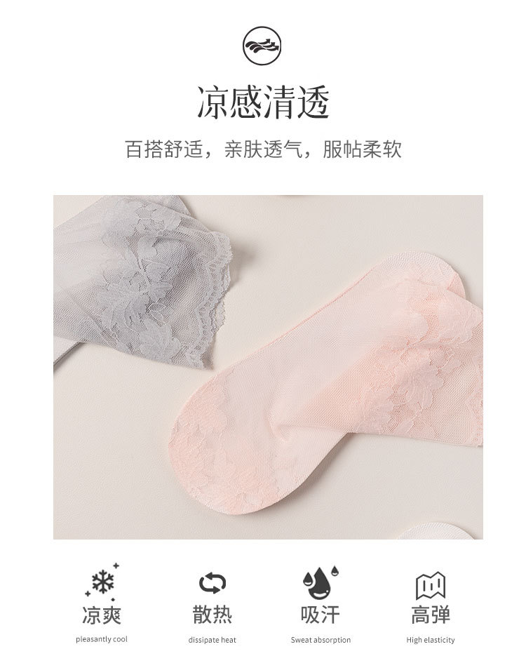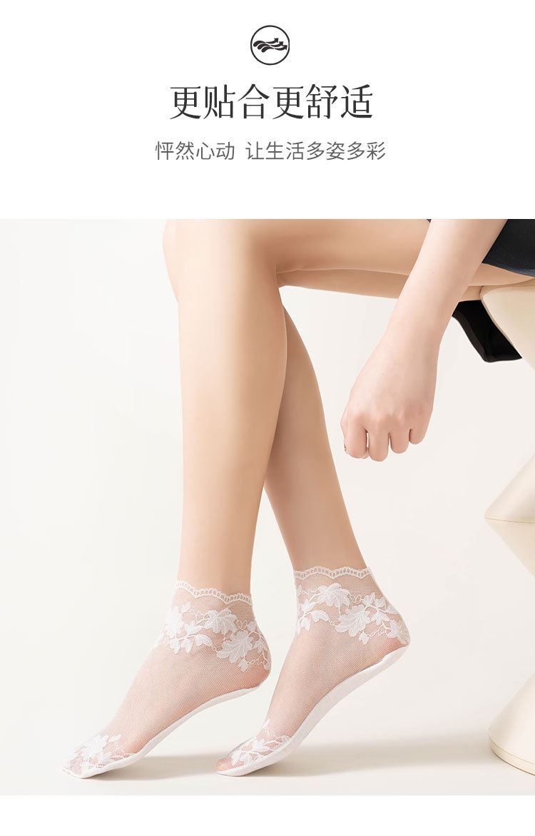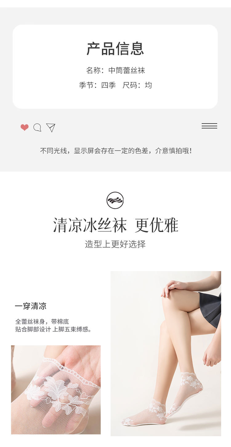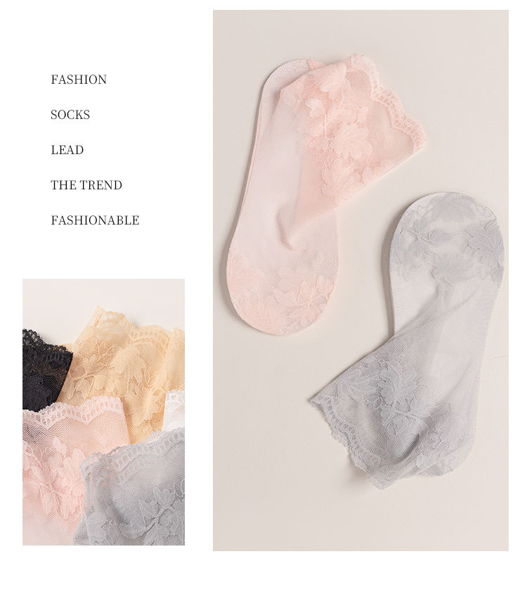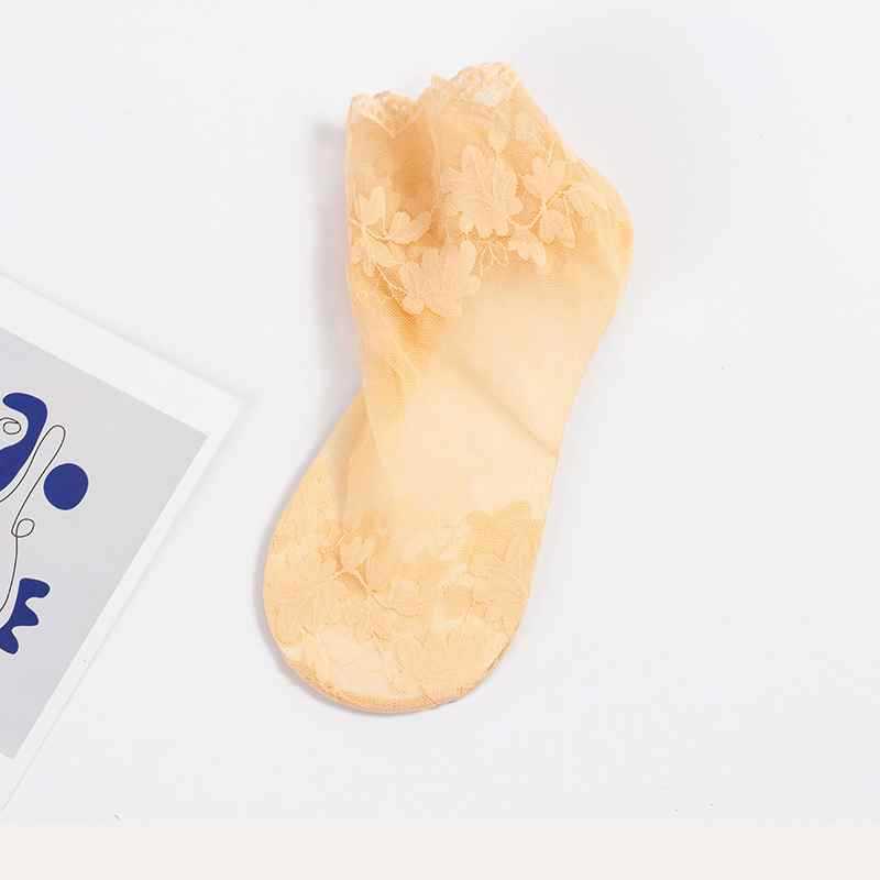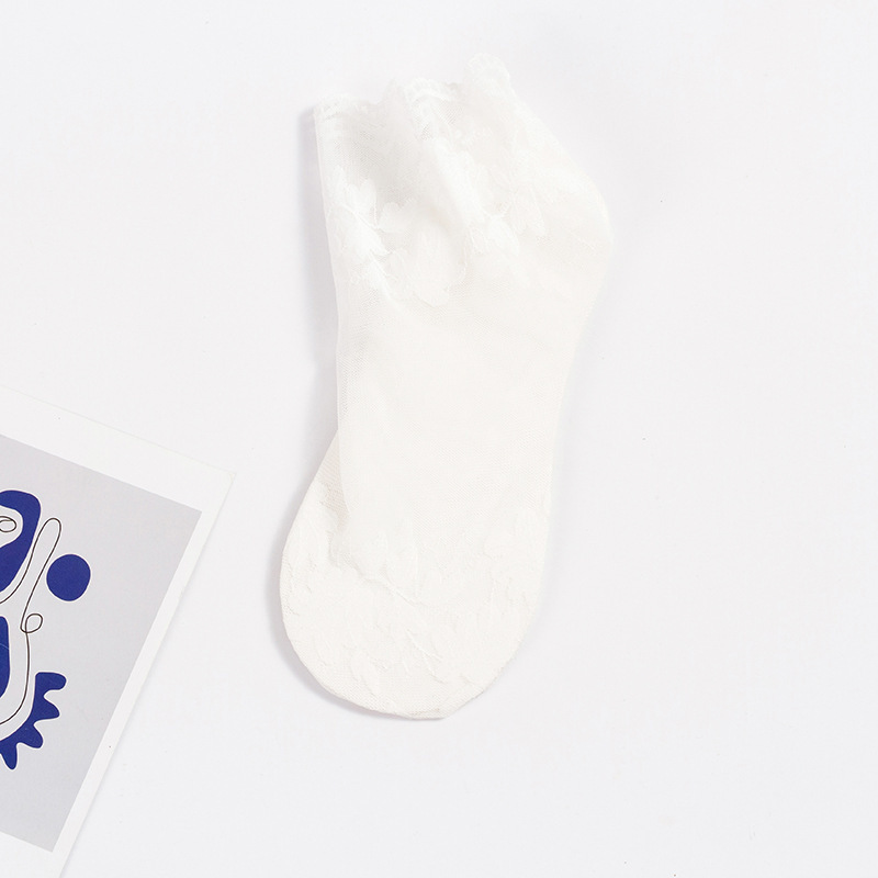 Женские летние тонкие кружевные носки с хлопковой подошвой, короткие носки, носки средней длины, дышащие сетчатые носки с перфорацией и противоскользящим покрытием.