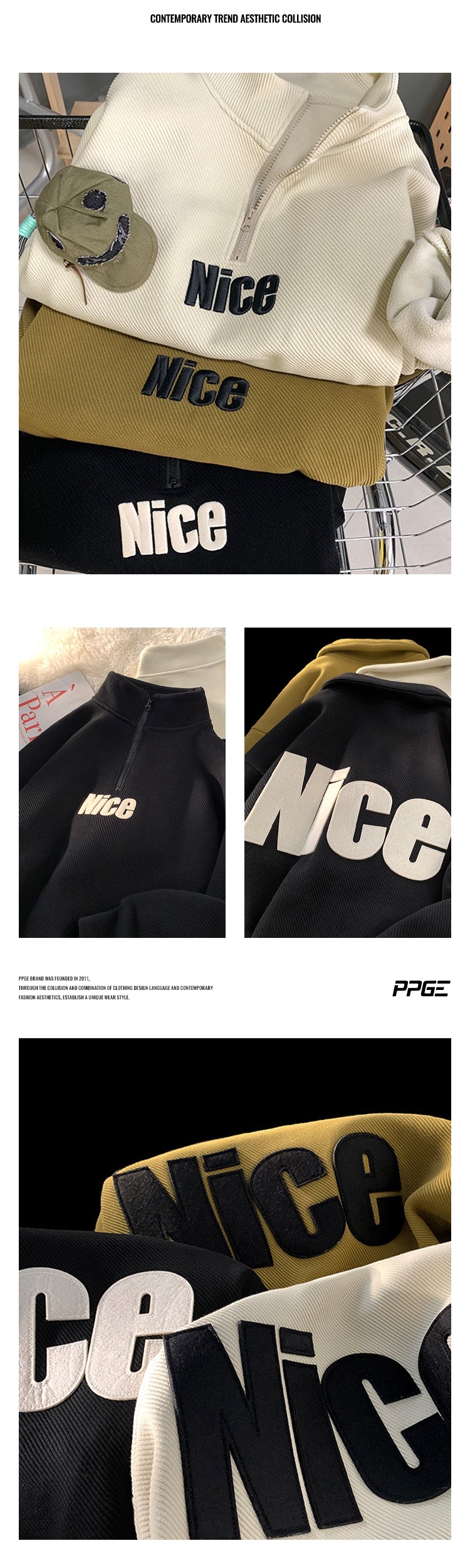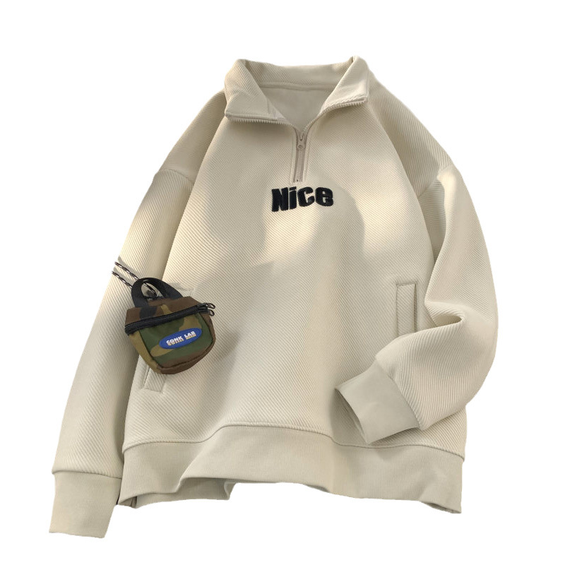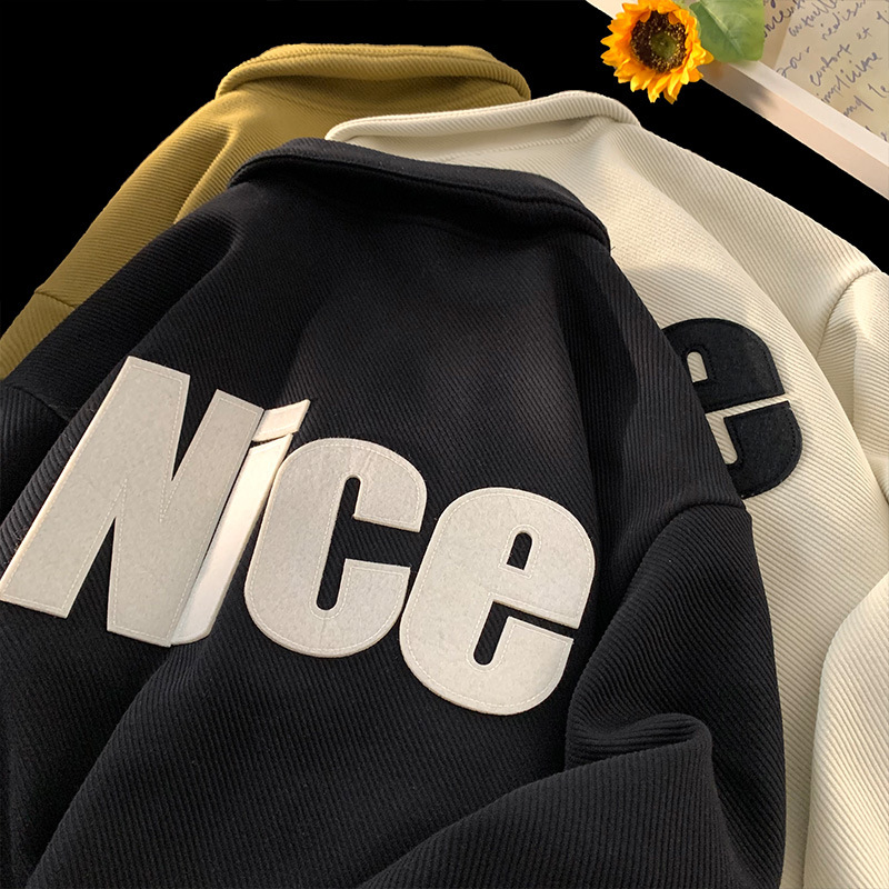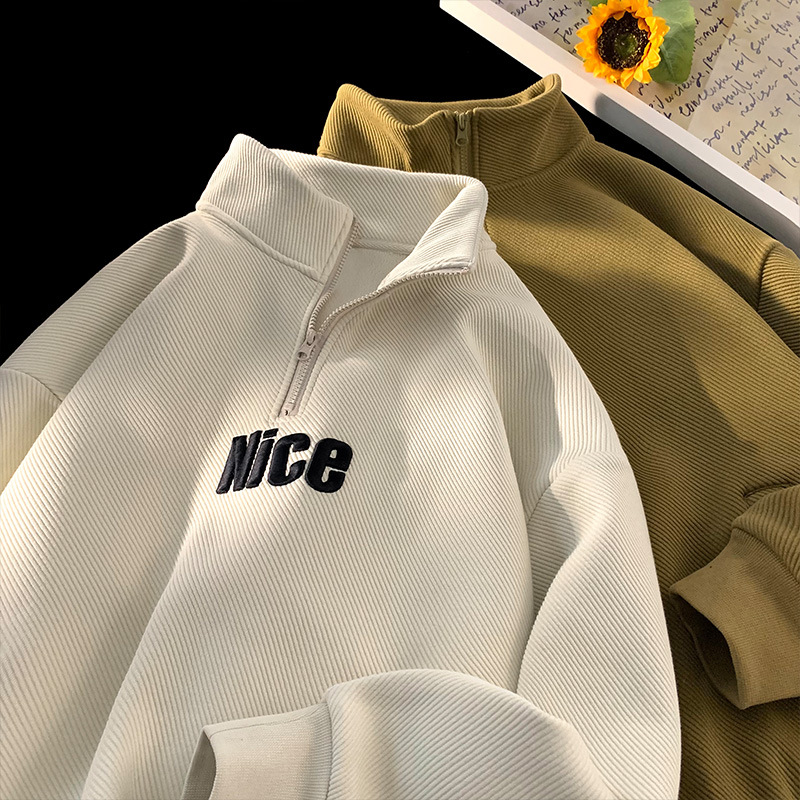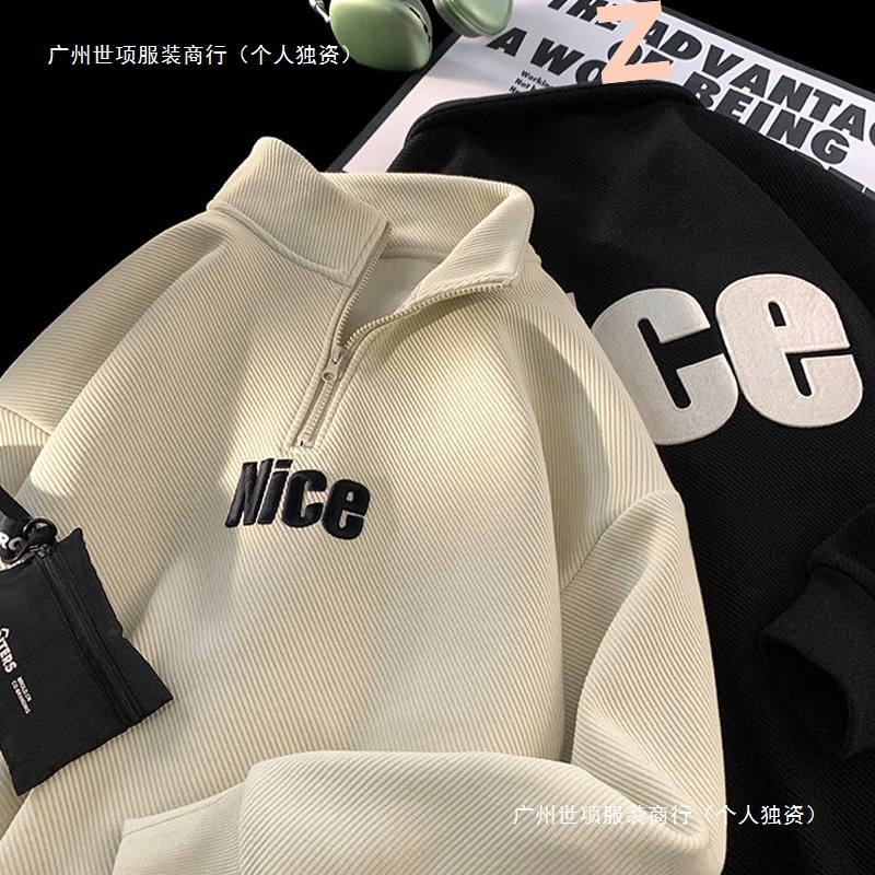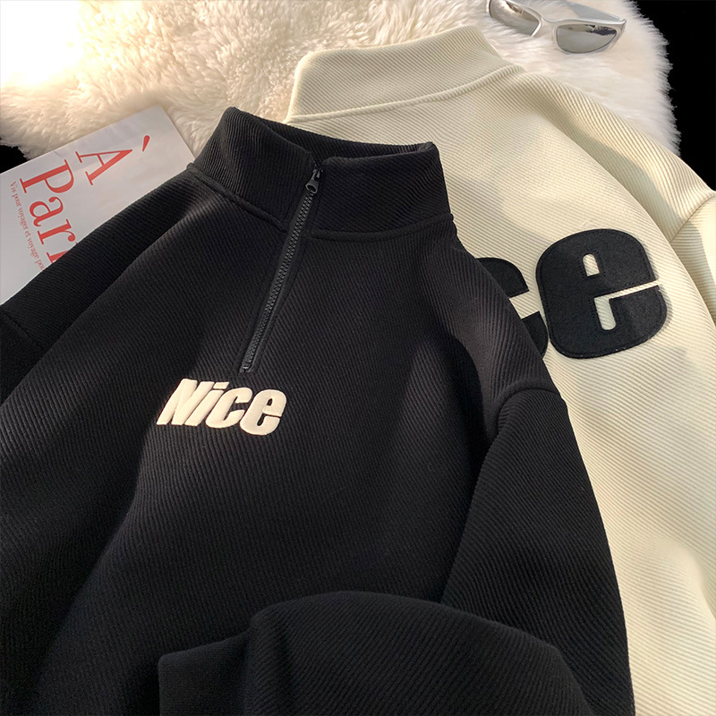 Полувысокий воротник на молнии свитер мужской весна и осень 2024 новый американский ретро пиджак дизайн чувство нишевый прилив черный