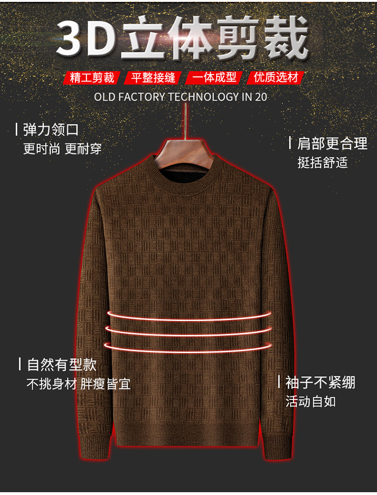 Зимний мужской бархат утолщение шерстяной свитер Chenir Теплый свитер Внешняя торговля одежда Мужская жаккардовая трикотажная нижняя рубашка Мужская одежда