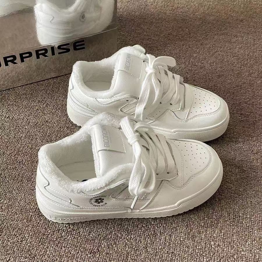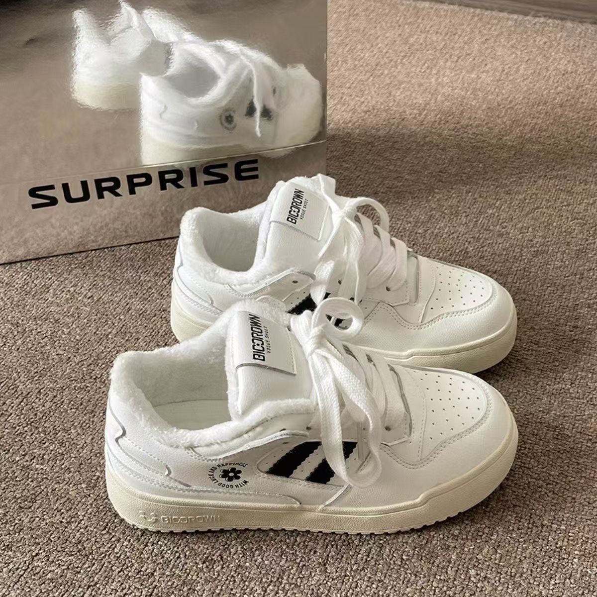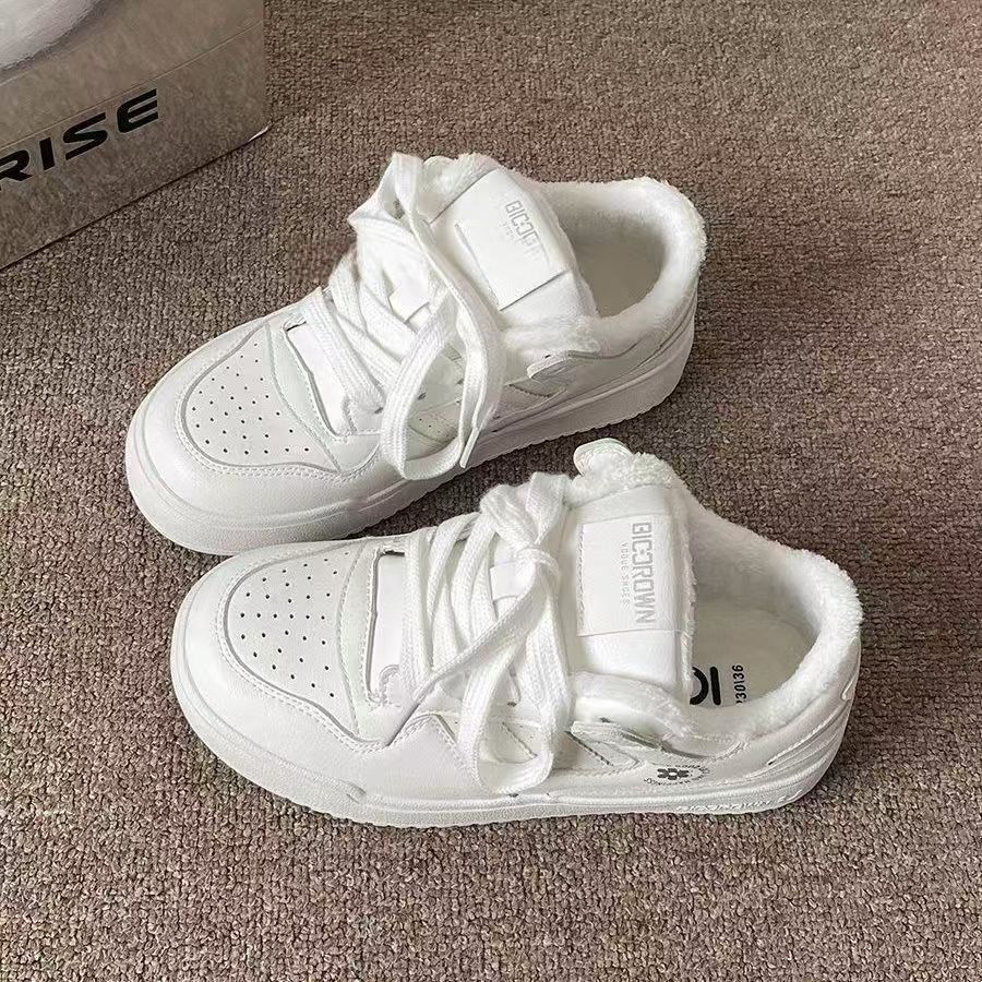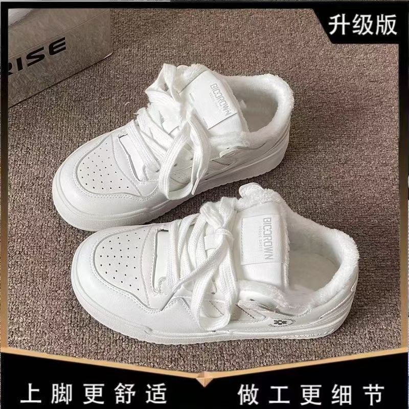 Зимние бархатные туфли женские новые дикие хлопчатобумажные туфли 2024 корейские ниши теплые маленькие белые туфли для детей