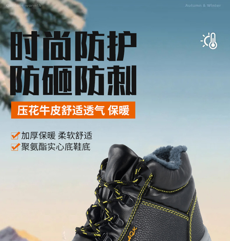 Зимняя бархатная обувь для защиты труда мужская противоударная и проколотая, износостойкая, холодостойкая, теплая и безопасная рабочая обувь оптом