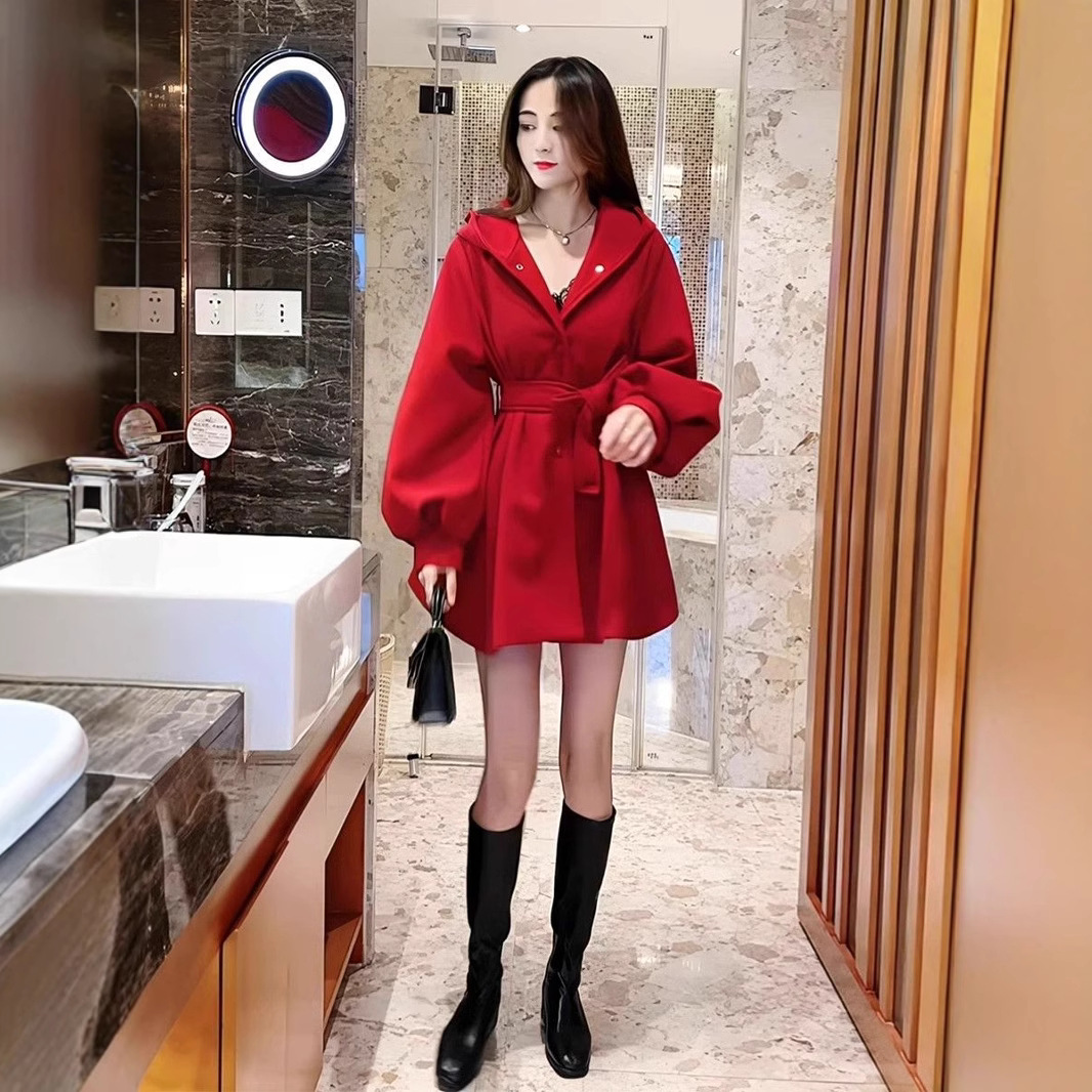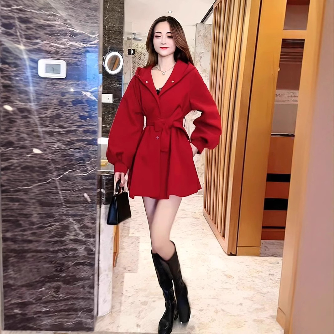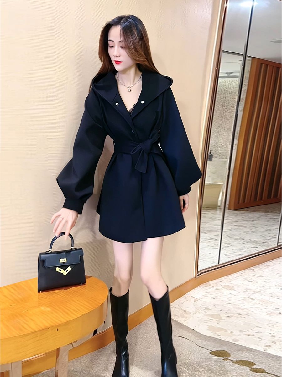 Внешняя торговля · 2024 осень и зима новая мода дикий стиль Hepburn стиль фонарь рукава куртка женская средняя длинная толстая ветровка