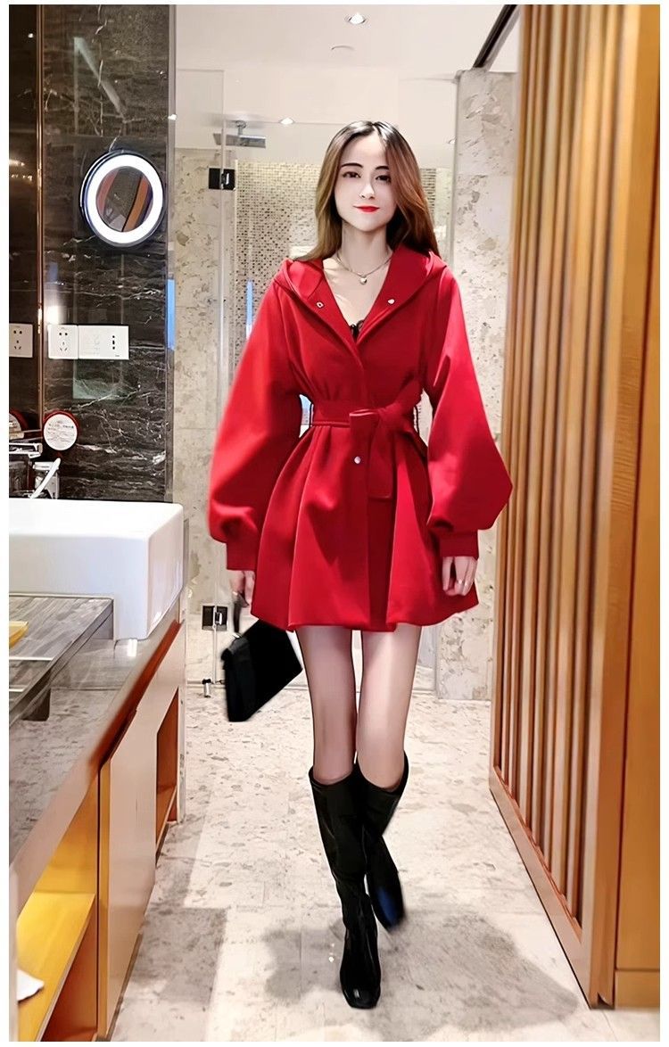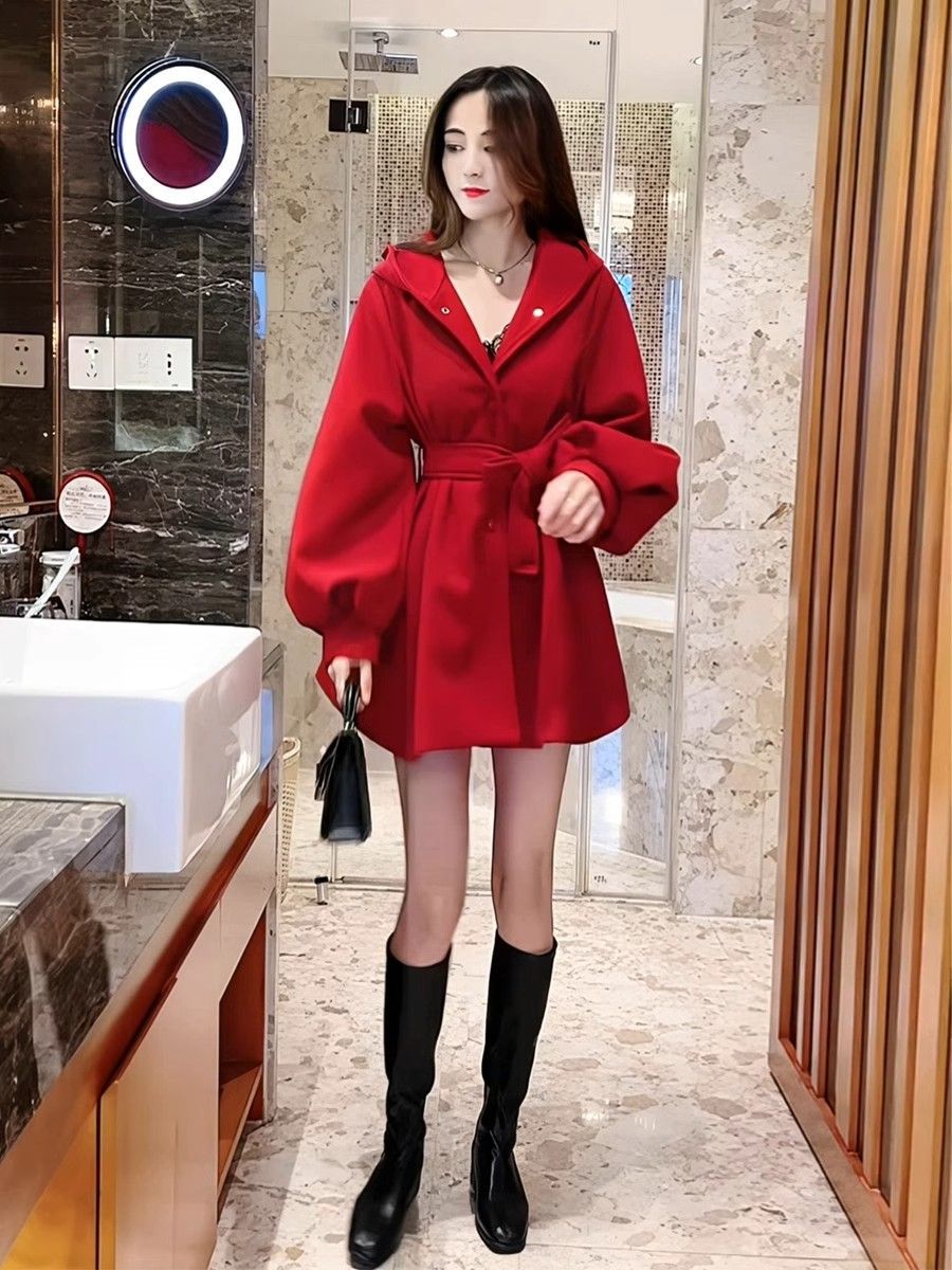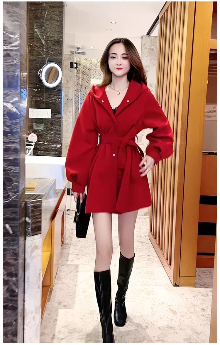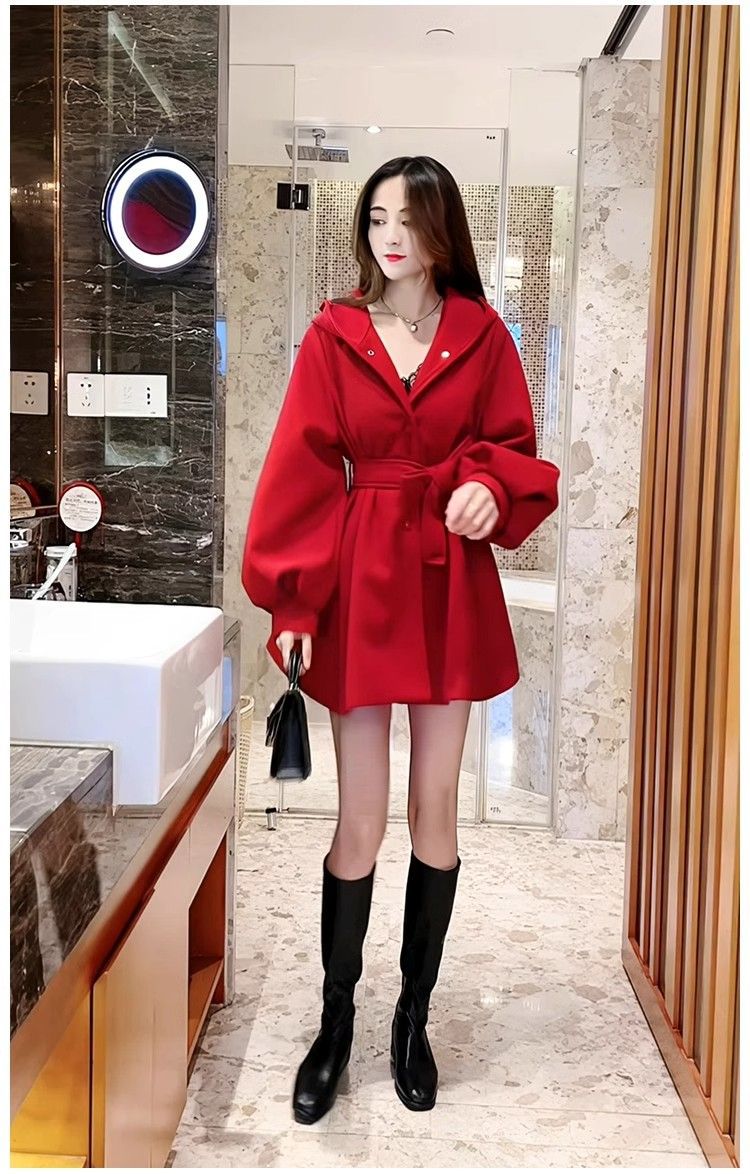 Внешняя торговля · 2024 осень и зима новая мода дикий стиль Hepburn стиль фонарь рукава куртка женская средняя длинная толстая ветровка