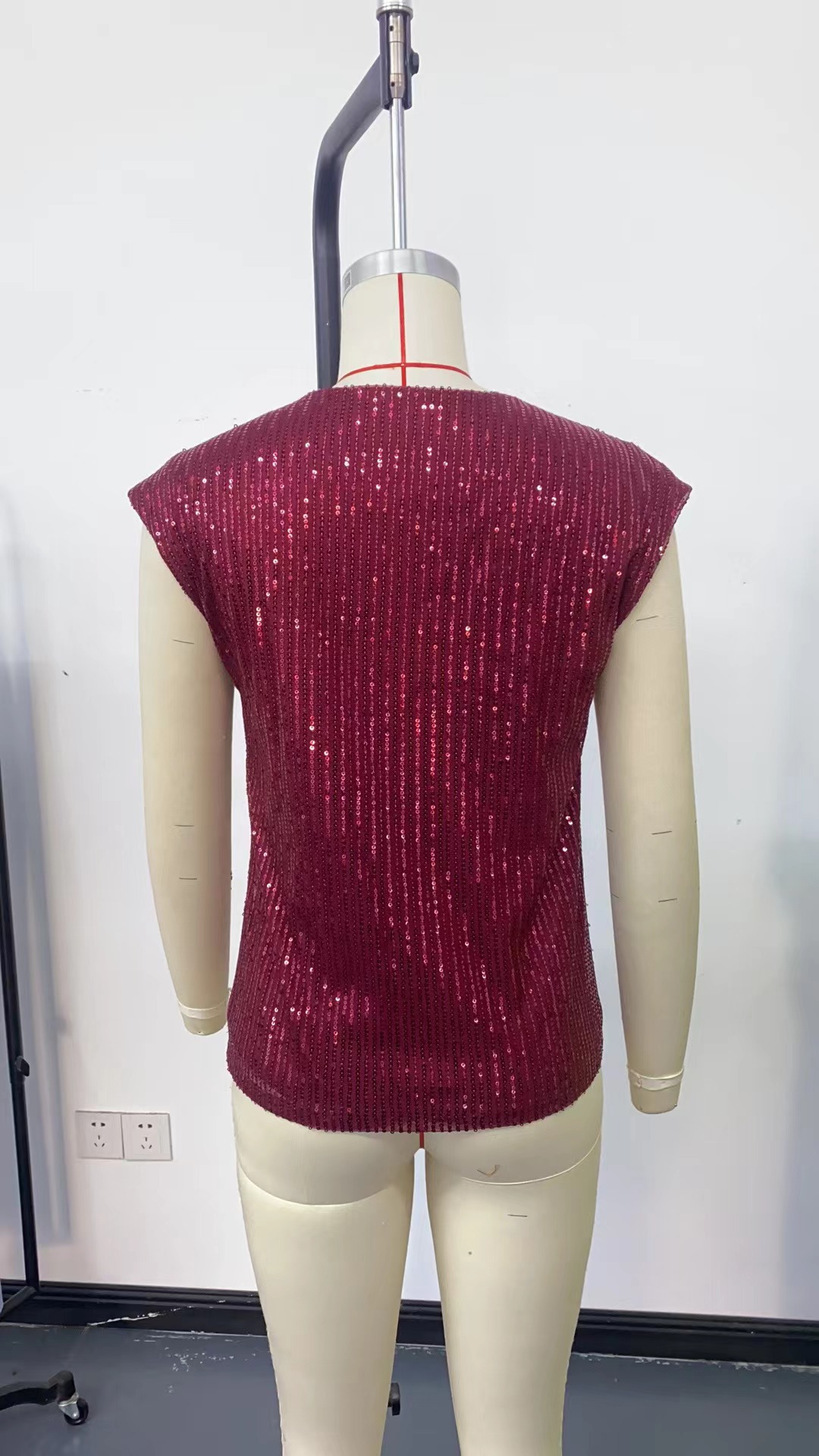 2025 весна и осень новый европейский и американский трансграничный рукав с блестками с тонким V-образным вырезом