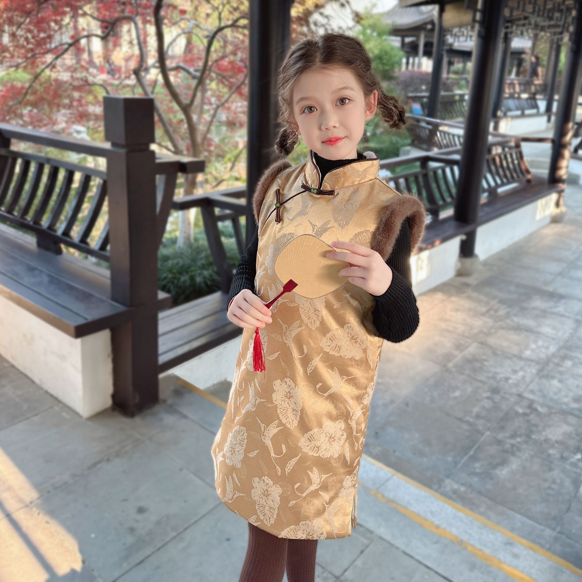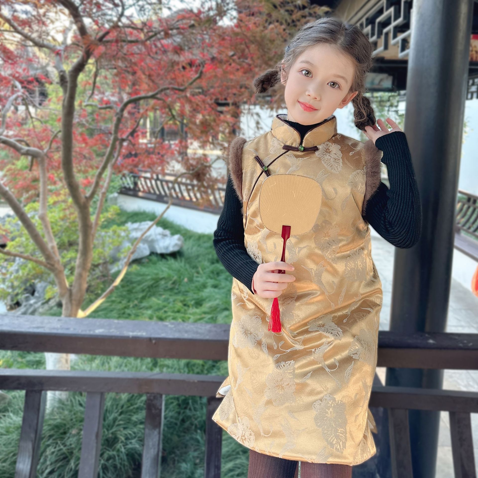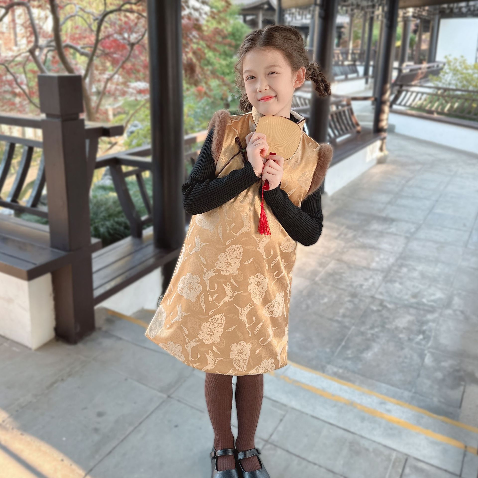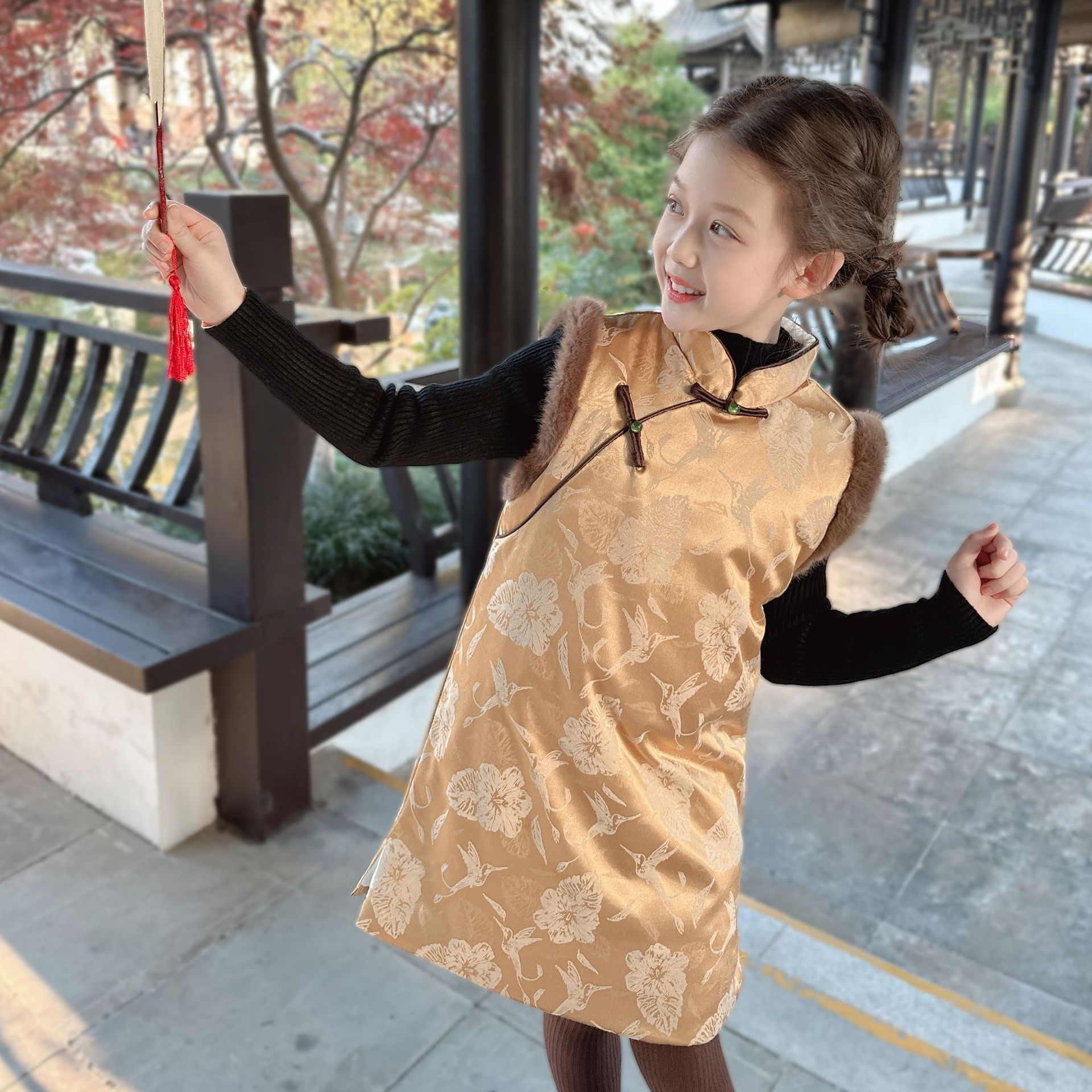 Ханфу девушка зимний чонсам юбка детка танг плюс бархатная юбка платье детское китайское платье