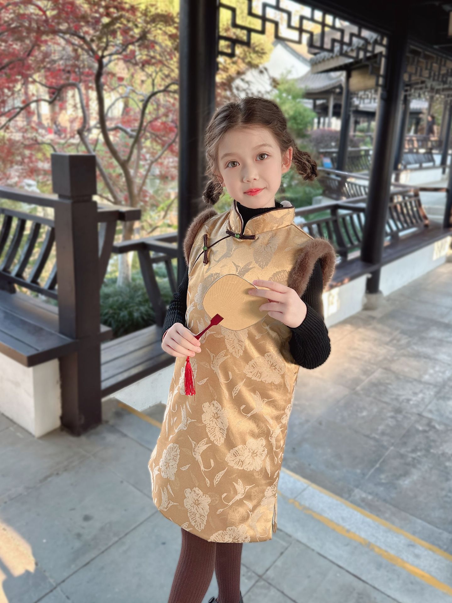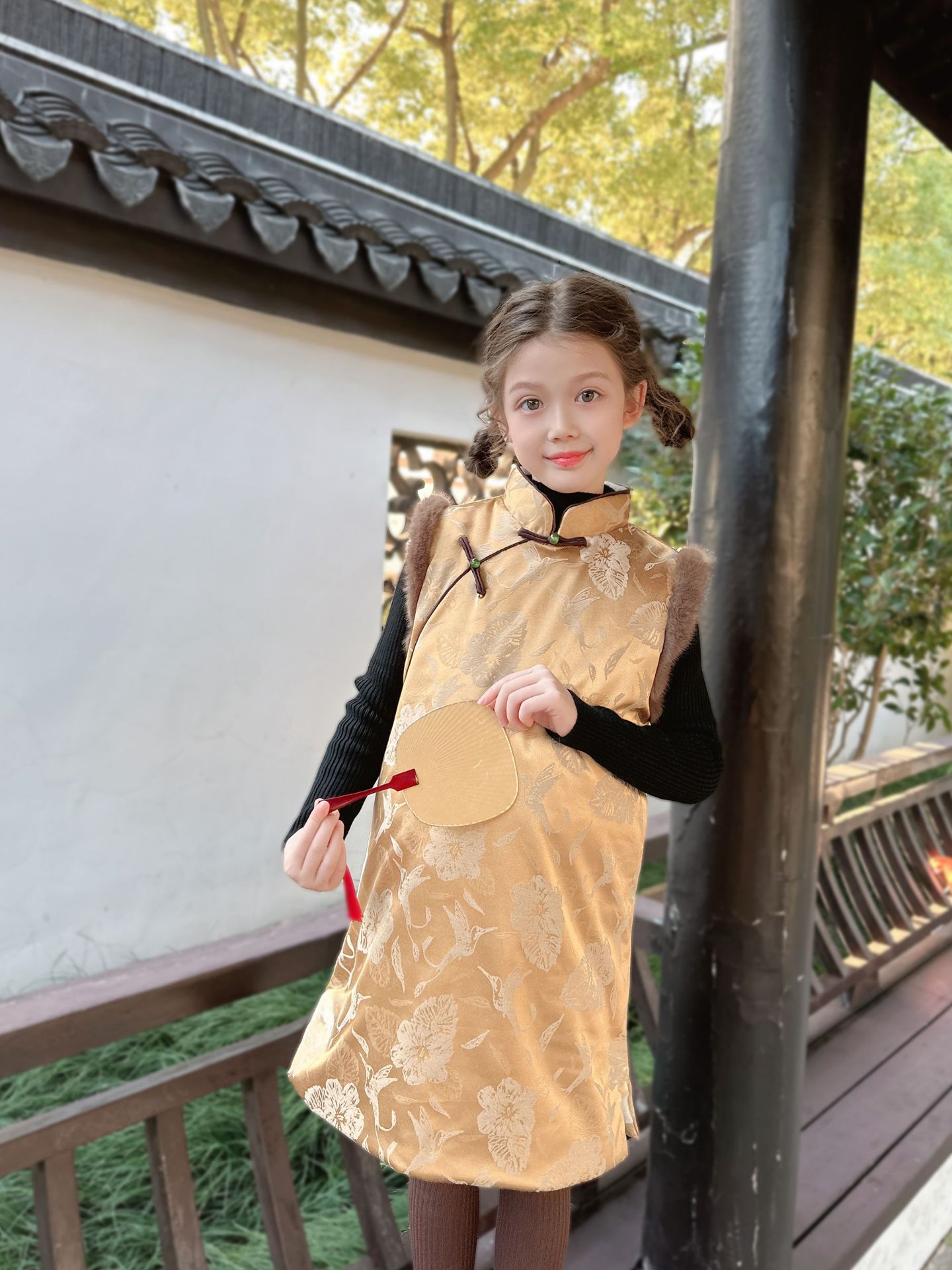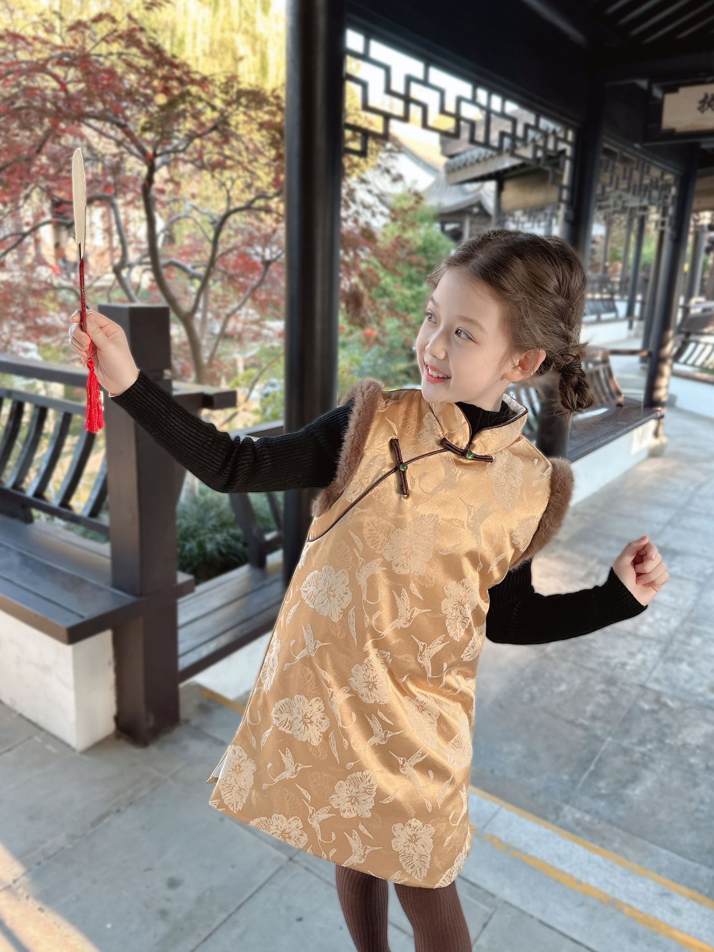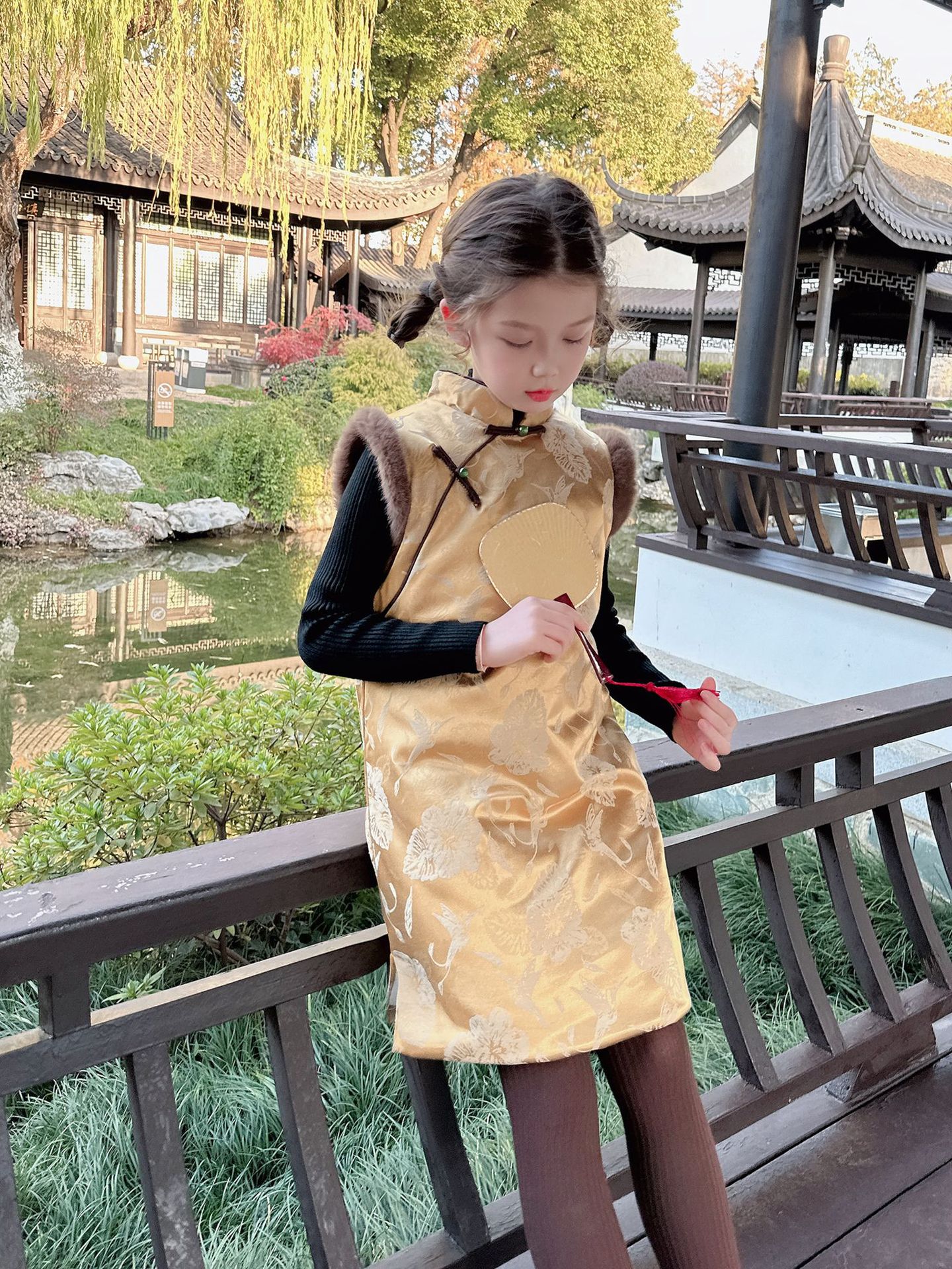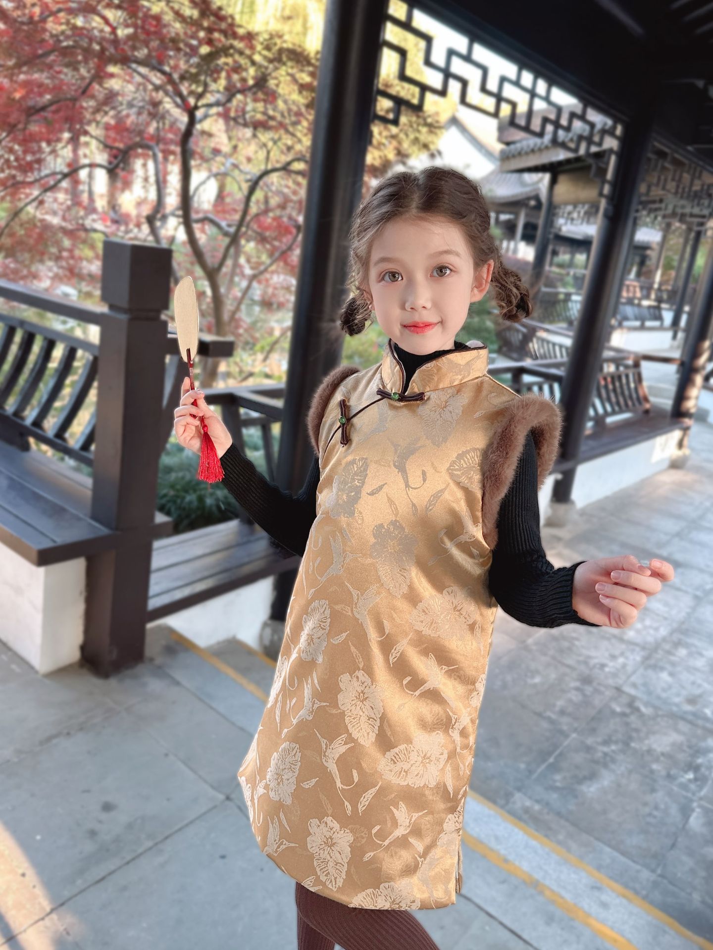 Ханфу девушка зимний чонсам юбка детка танг плюс бархатная юбка платье детское китайское платье