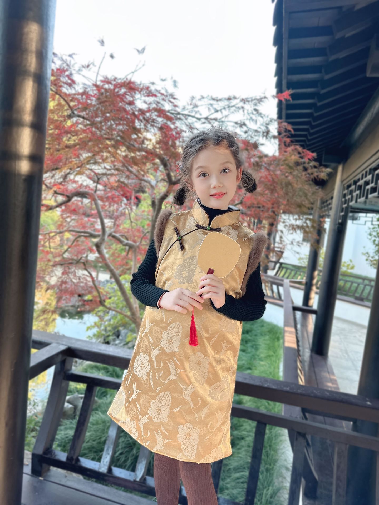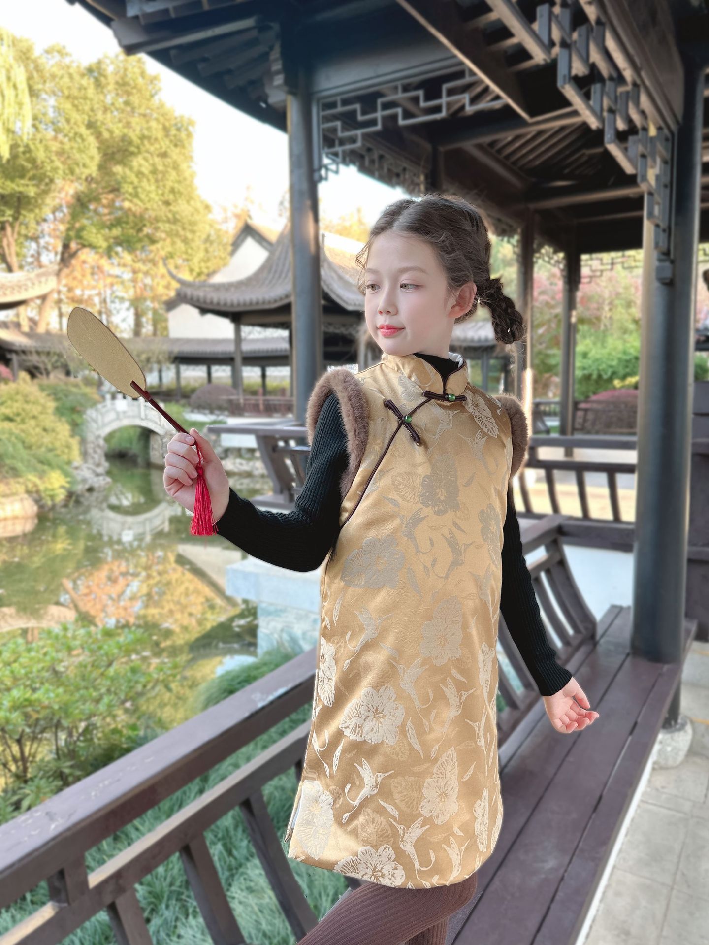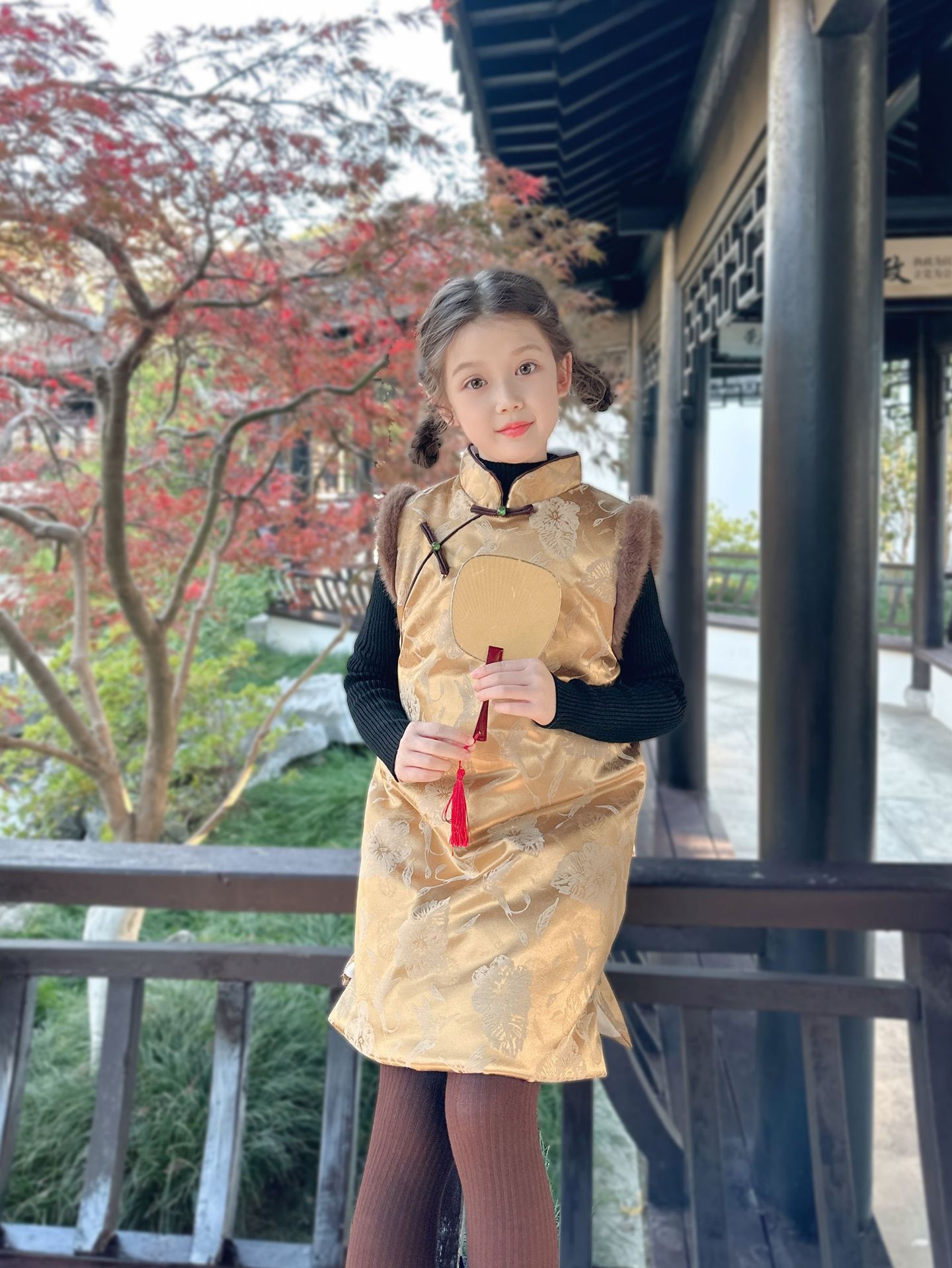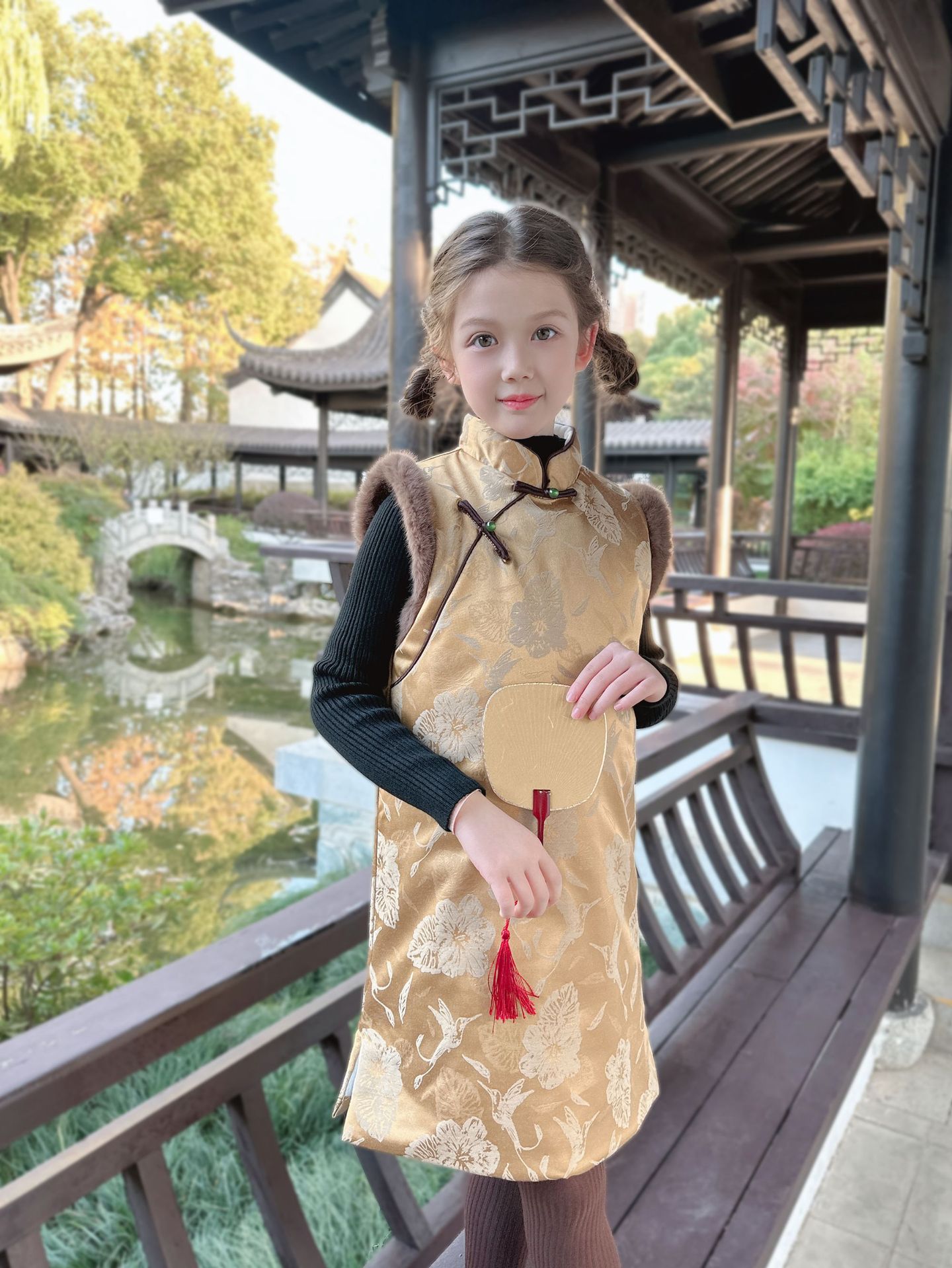 Ханфу девушка зимний чонсам юбка детка танг плюс бархатная юбка платье детское китайское платье