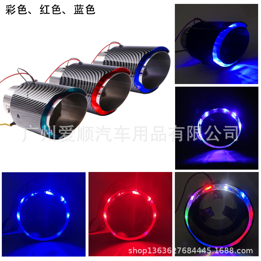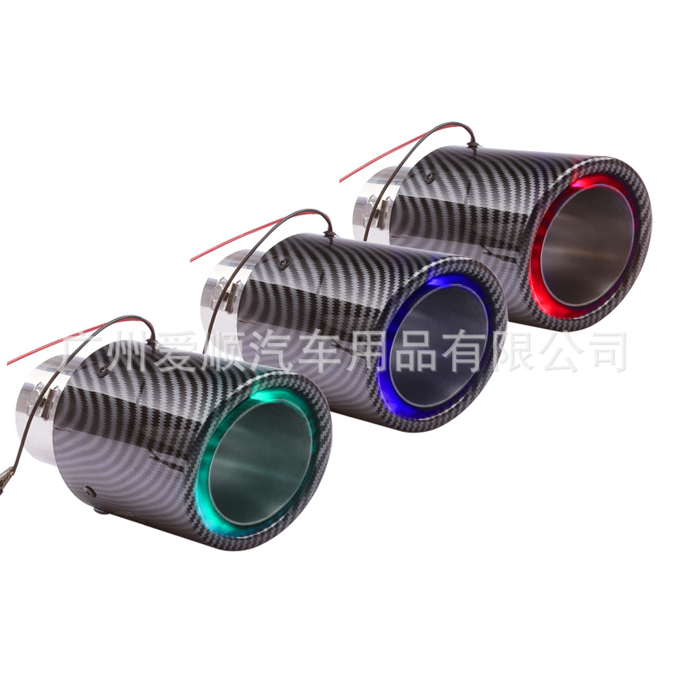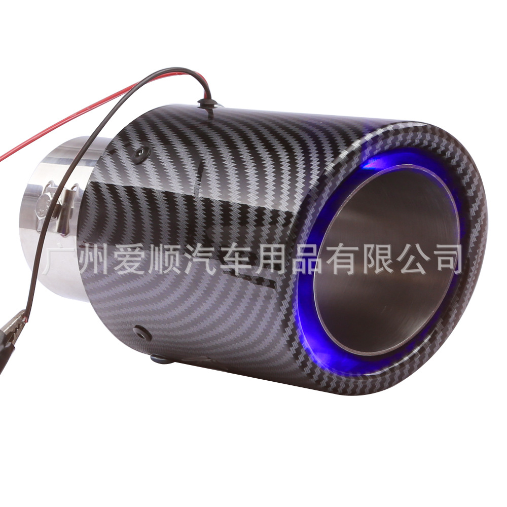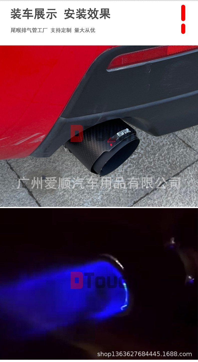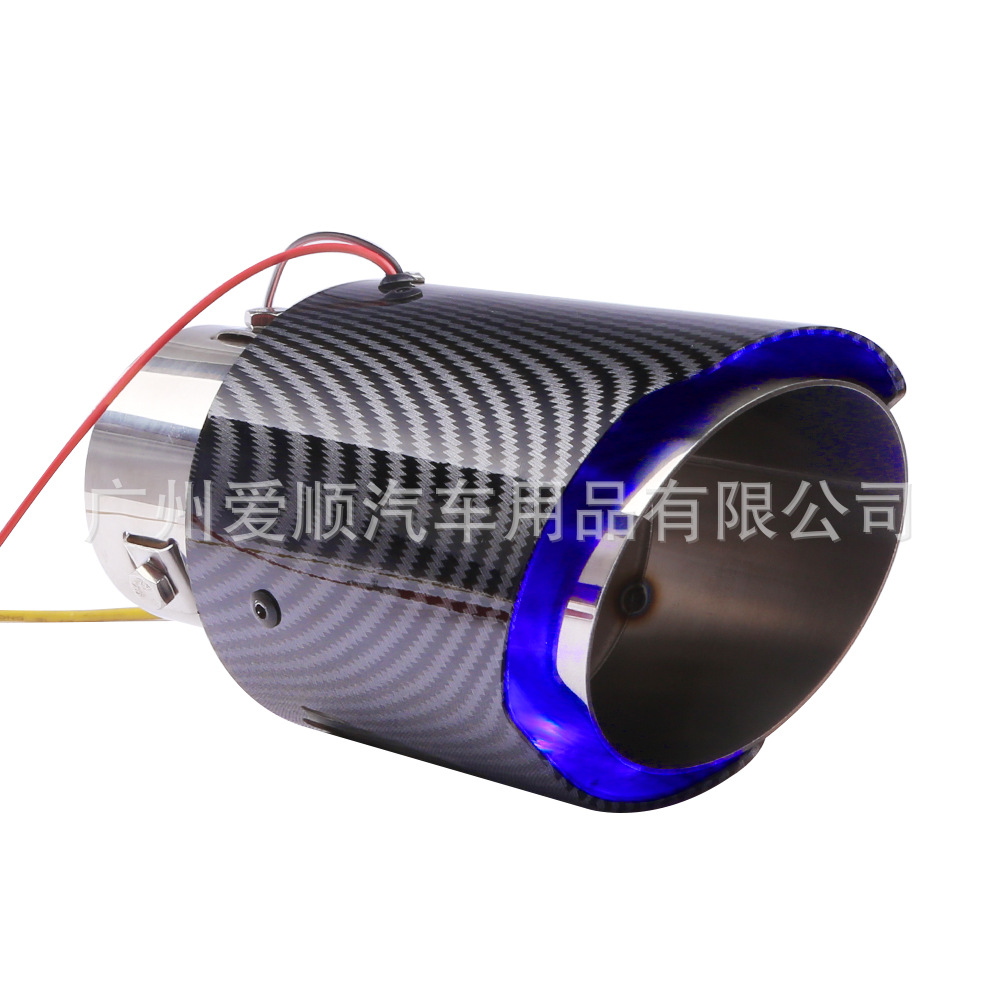 汽车改装喷火发光碳纤尾喉带LED灯碳纤纹尾喉63mm带灯尾喉排气管