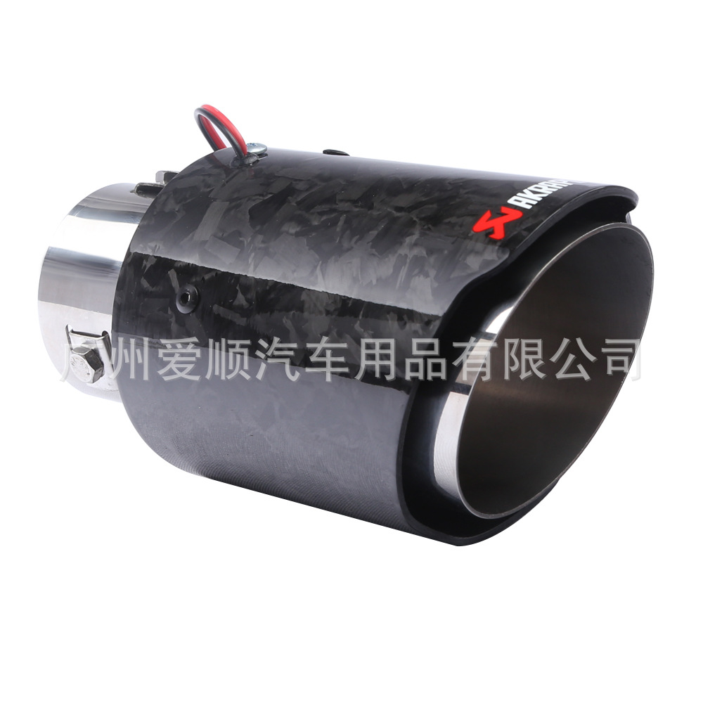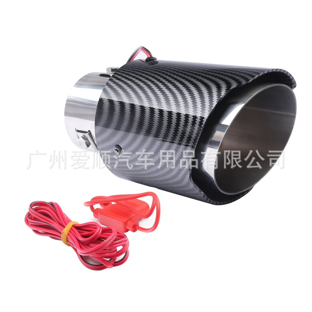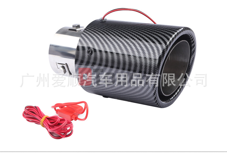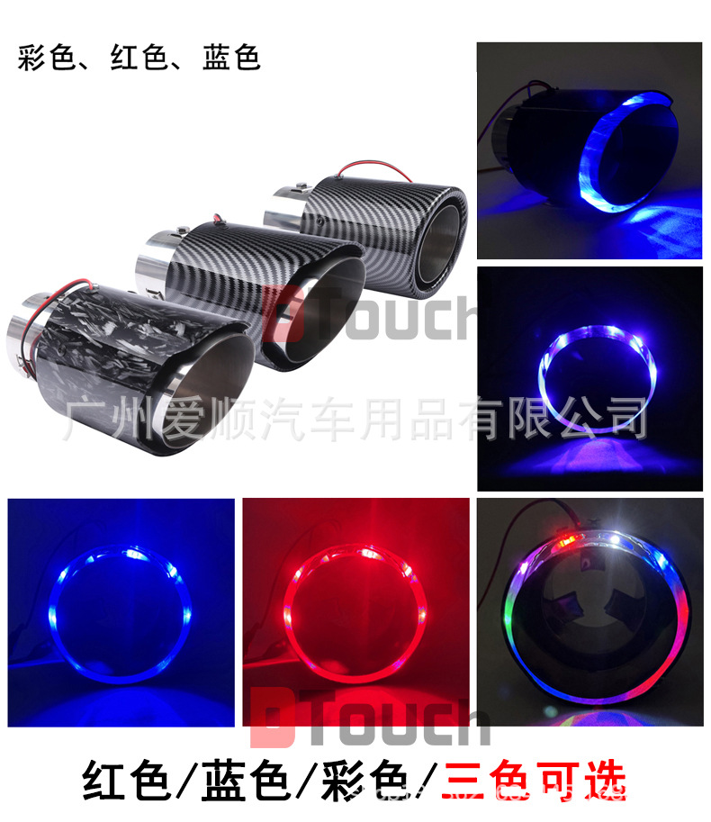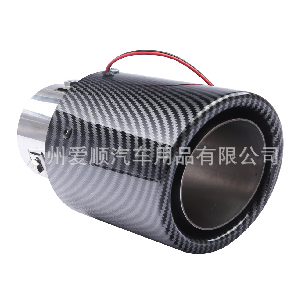 汽车改装喷火发光碳纤尾喉带LED灯碳纤纹尾喉63mm带灯尾喉排气管
