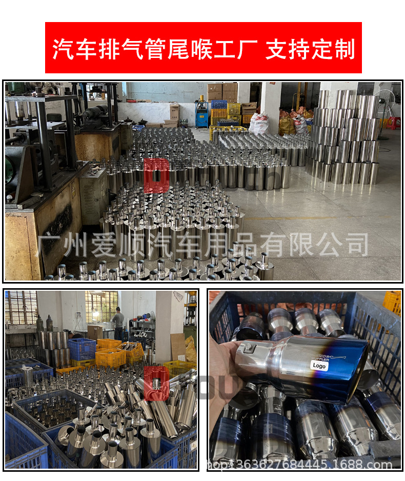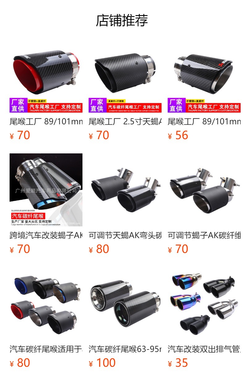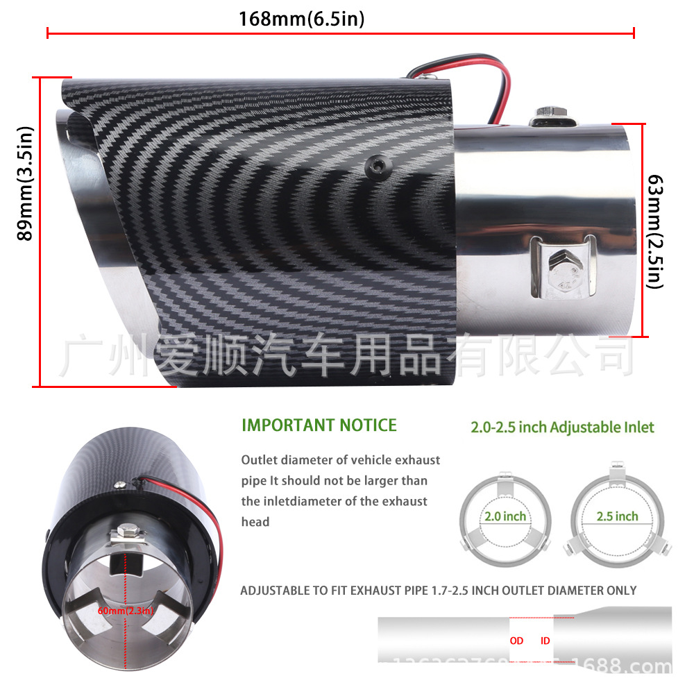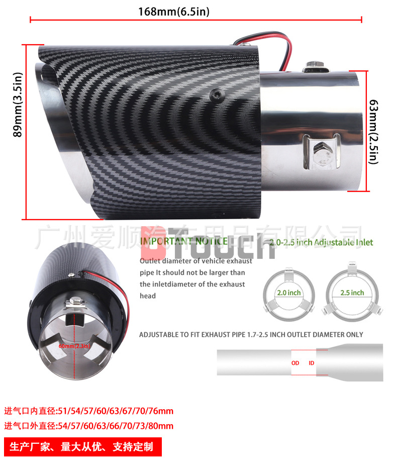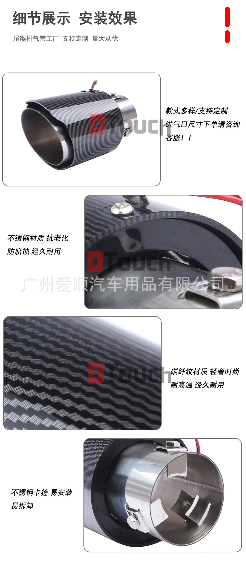 汽车改装喷火发光碳纤尾喉带LED灯碳纤纹尾喉63mm带灯尾喉排气管