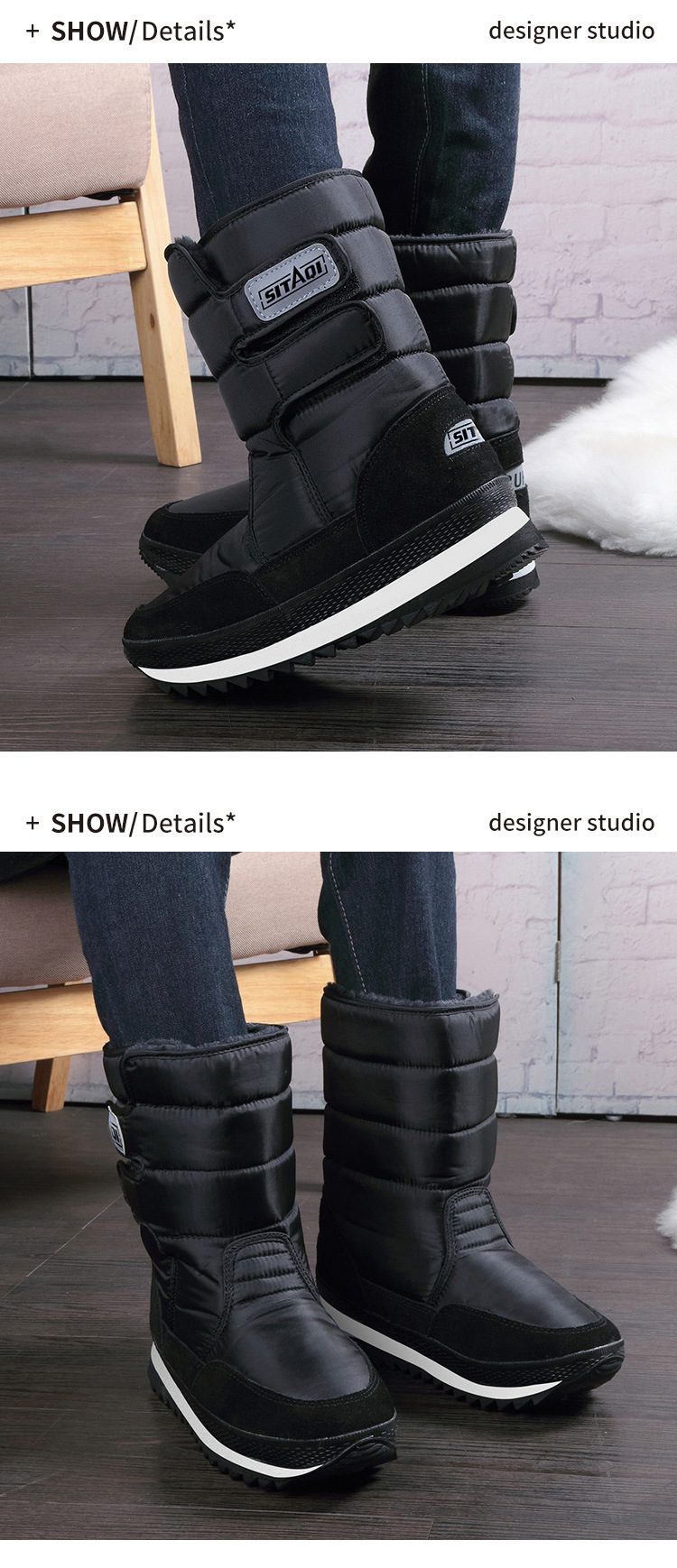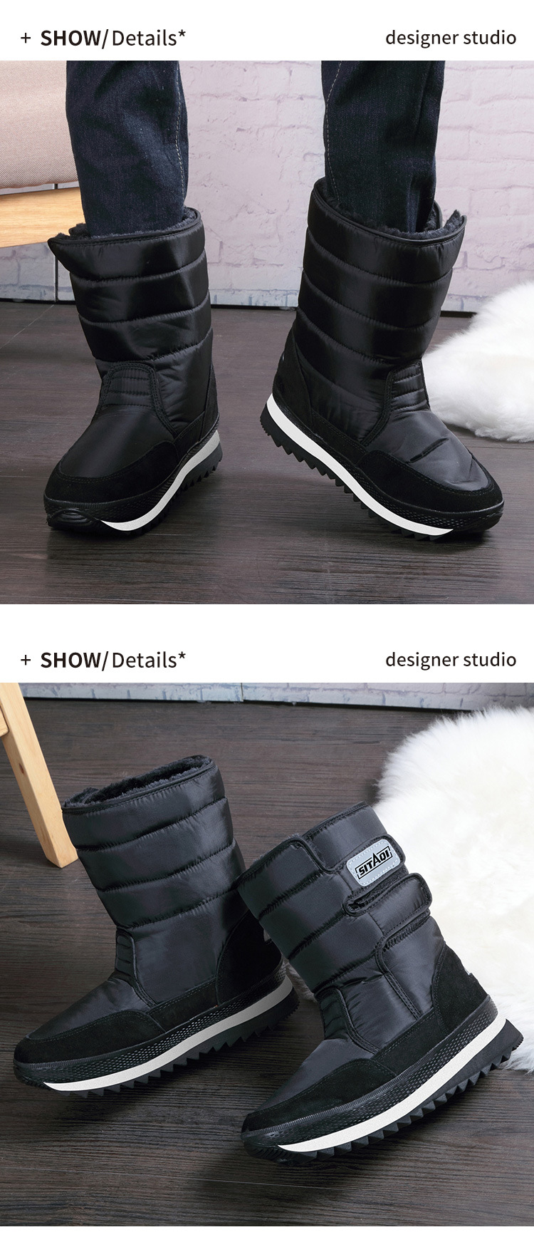 Распределение трансграничных зимних мужских зимних ботинок в северо-восточном регионе, черные бархатные теплые противоскользящие водонепроницаемые зимние ботинки до середины икры